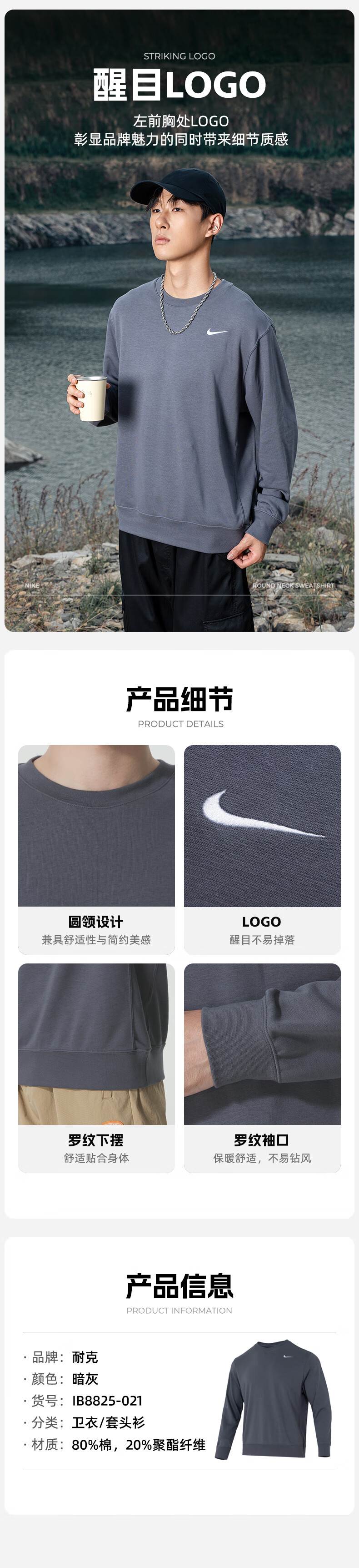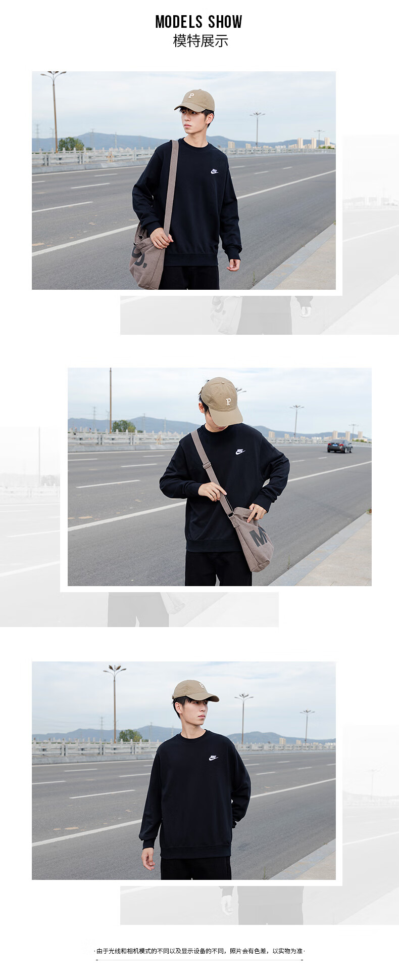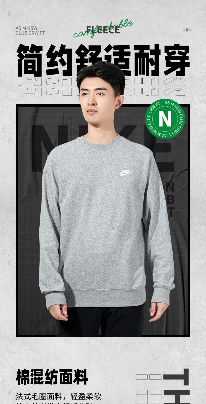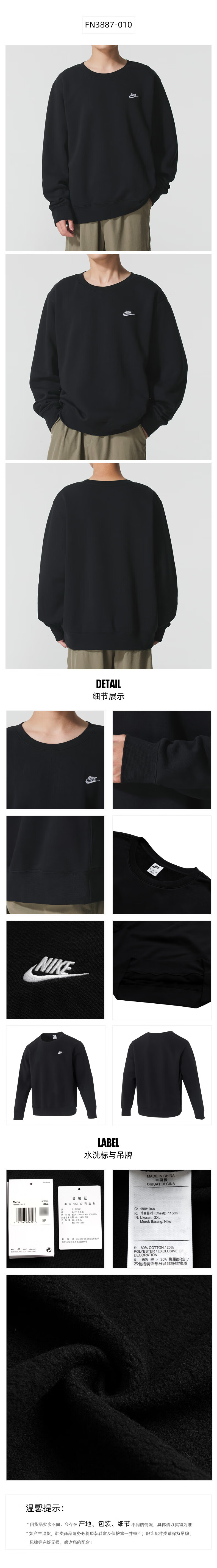 Nike (NIKE) sweatshirt men's 2025 autumn and winter new sports casual wear knitted long-sleeved jacket comfortable round neck pullover FN3889-657/Terry/China Red S (165/84A)