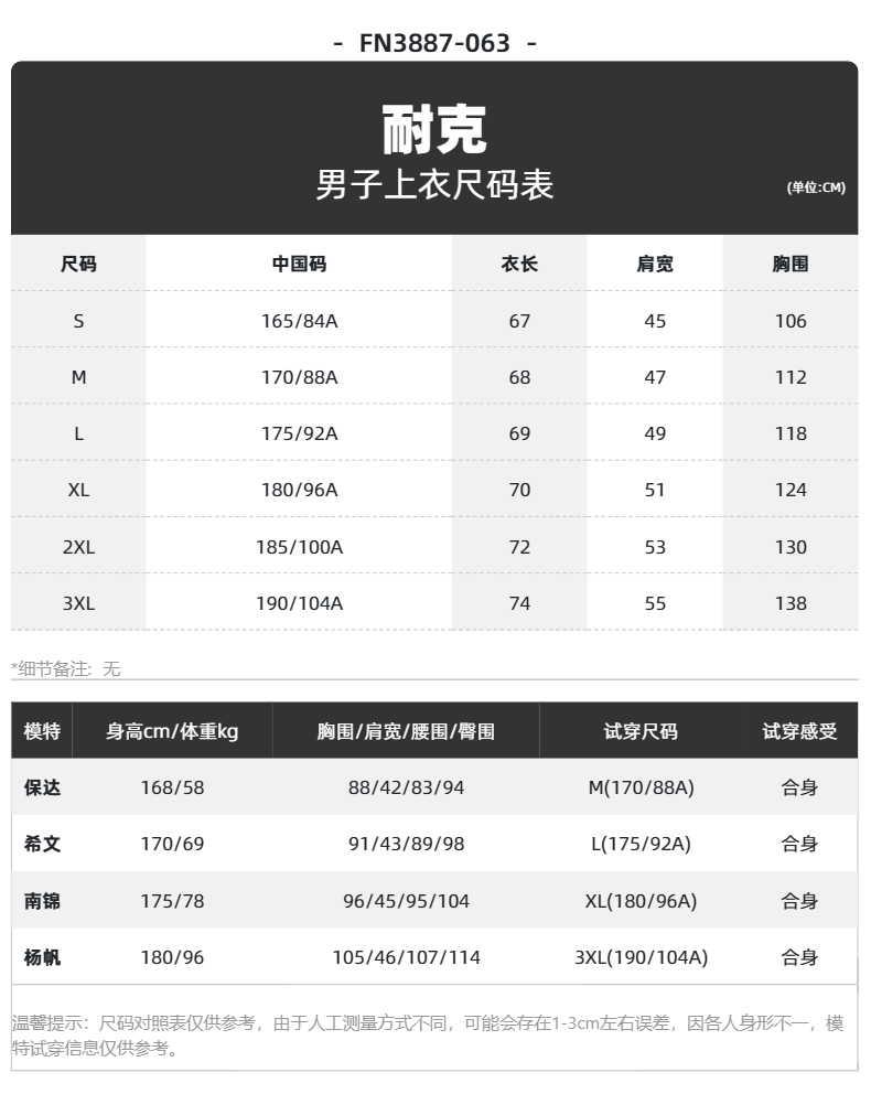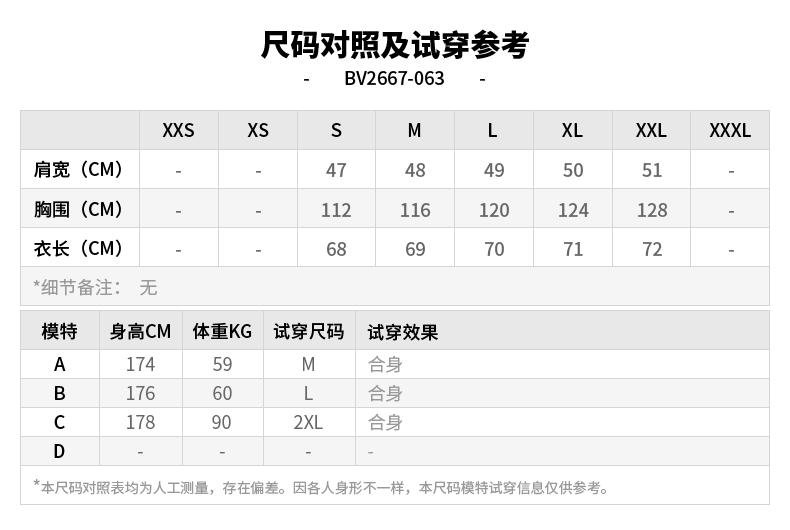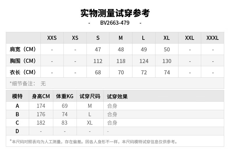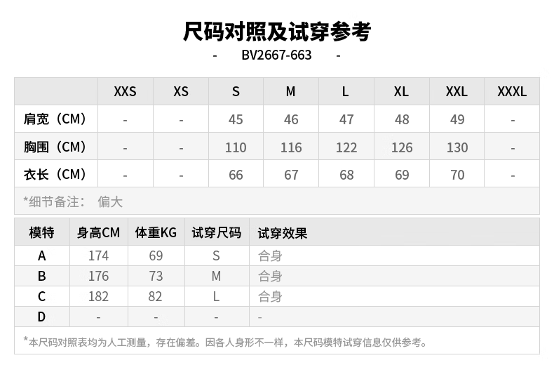 China (cm) 160-165/84-86 165-170 / 88-90 167-172 / 92-96 168-173 / 98-102 170-176 / 106-110