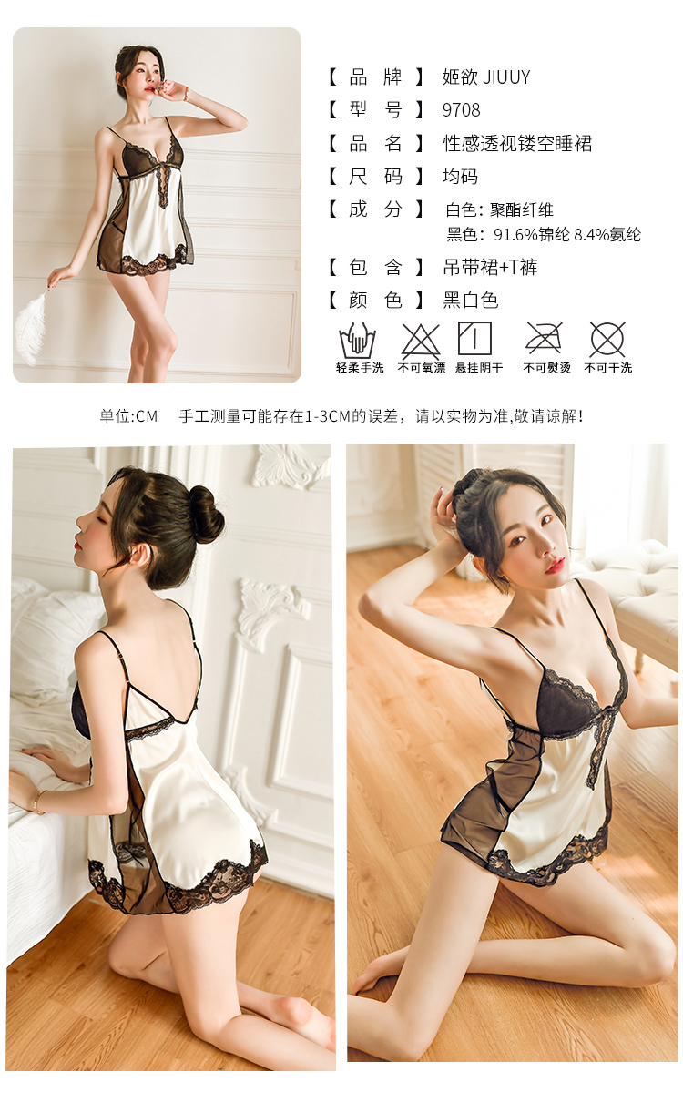 连体情趣内衣女 极度诱惑套装情趣制服黑丝袜性感睡衣吊带透视角色扮演变态SM丁字裤成人用品开裆露乳免脱 【9719黑色】睡裙+内裤(不含乳贴)