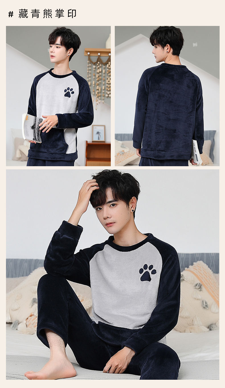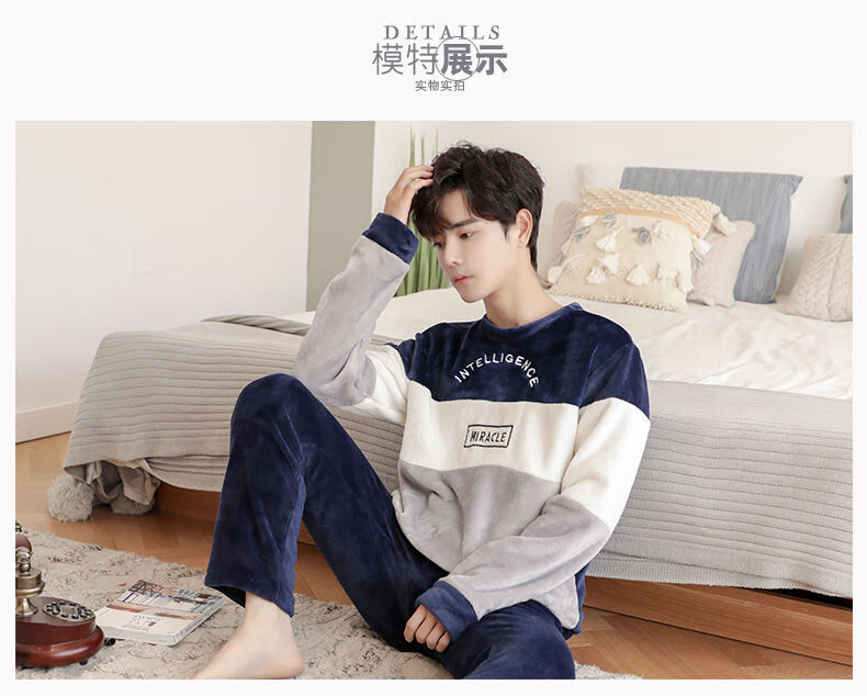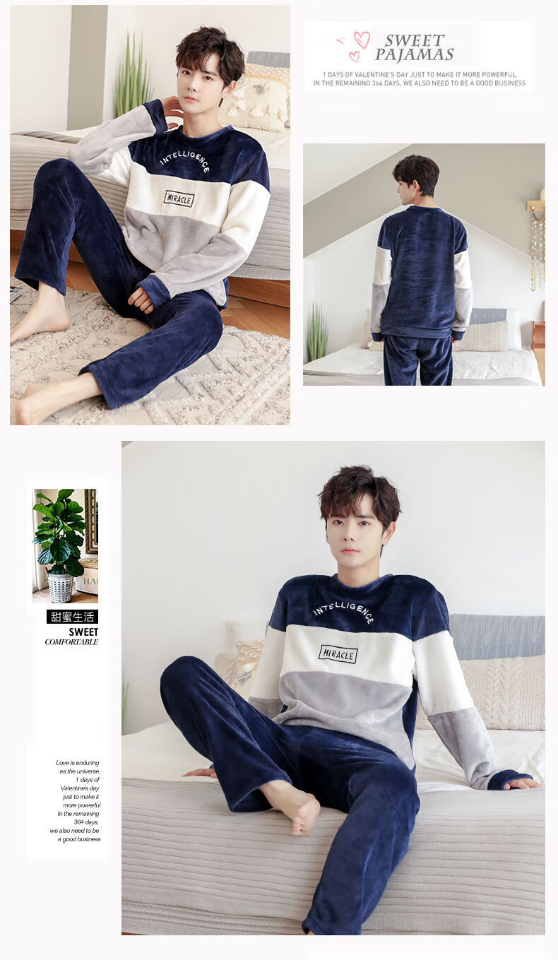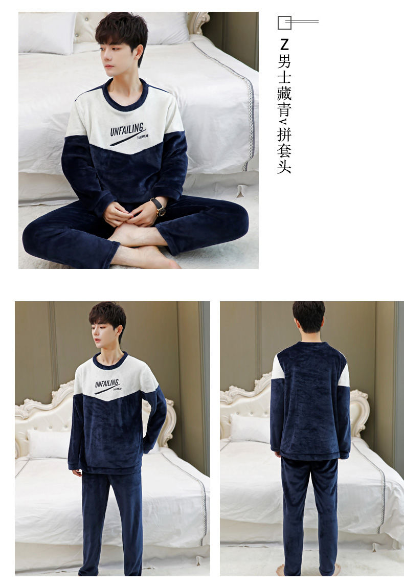 Juair Men's Pajamas Coral Velvet Winter Plus Velvet Thickened Student Cartoon Loose Youth Flannel Home Clothes Two-piece Set 3895# Royal Blue XL Recommended 120-140 Jin Jin equals 0.5 kg