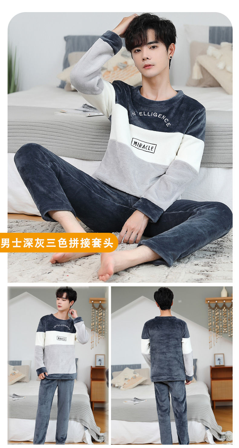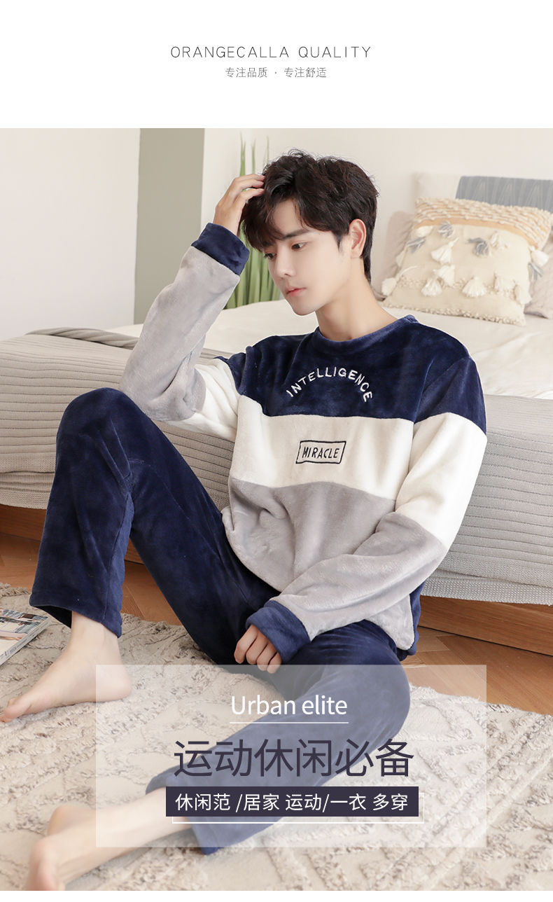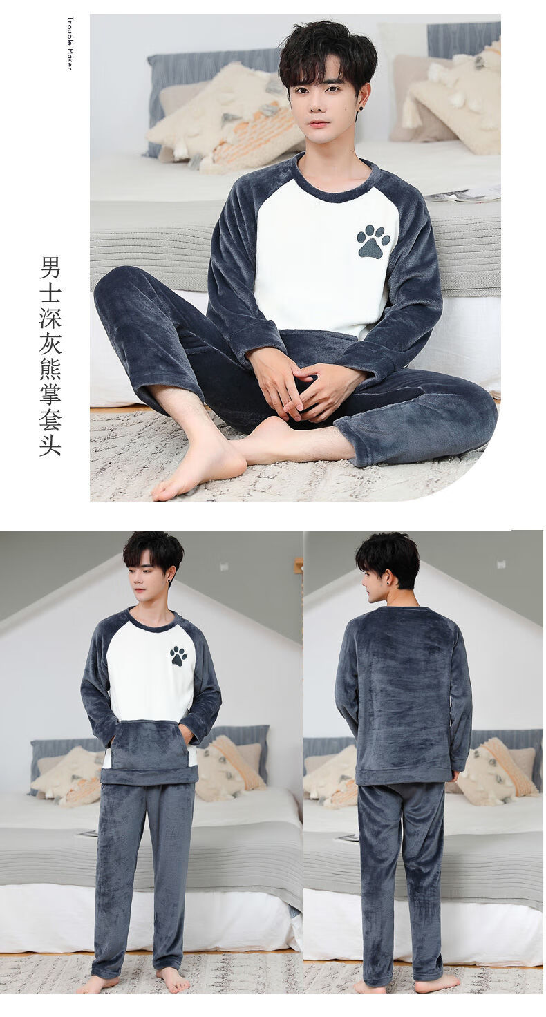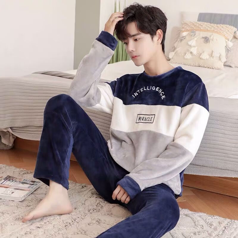 Juair Men's Pajamas Coral Velvet Winter Plus Velvet Thickened Student Cartoon Loose Youth Flannel Home Clothes Two-piece Set 3895# Royal Blue XL Recommended 120-140 Jin Jin equals 0.5 kg