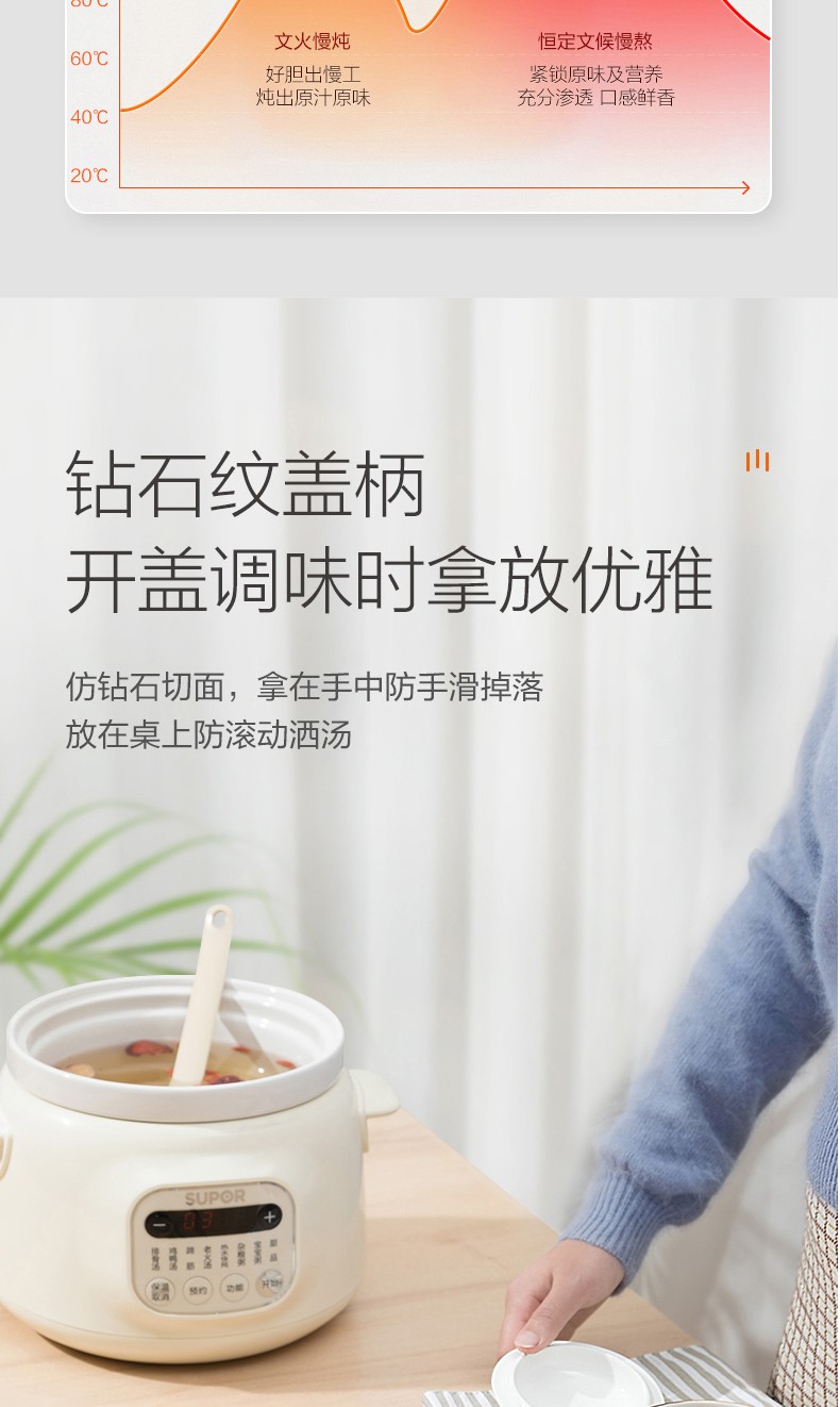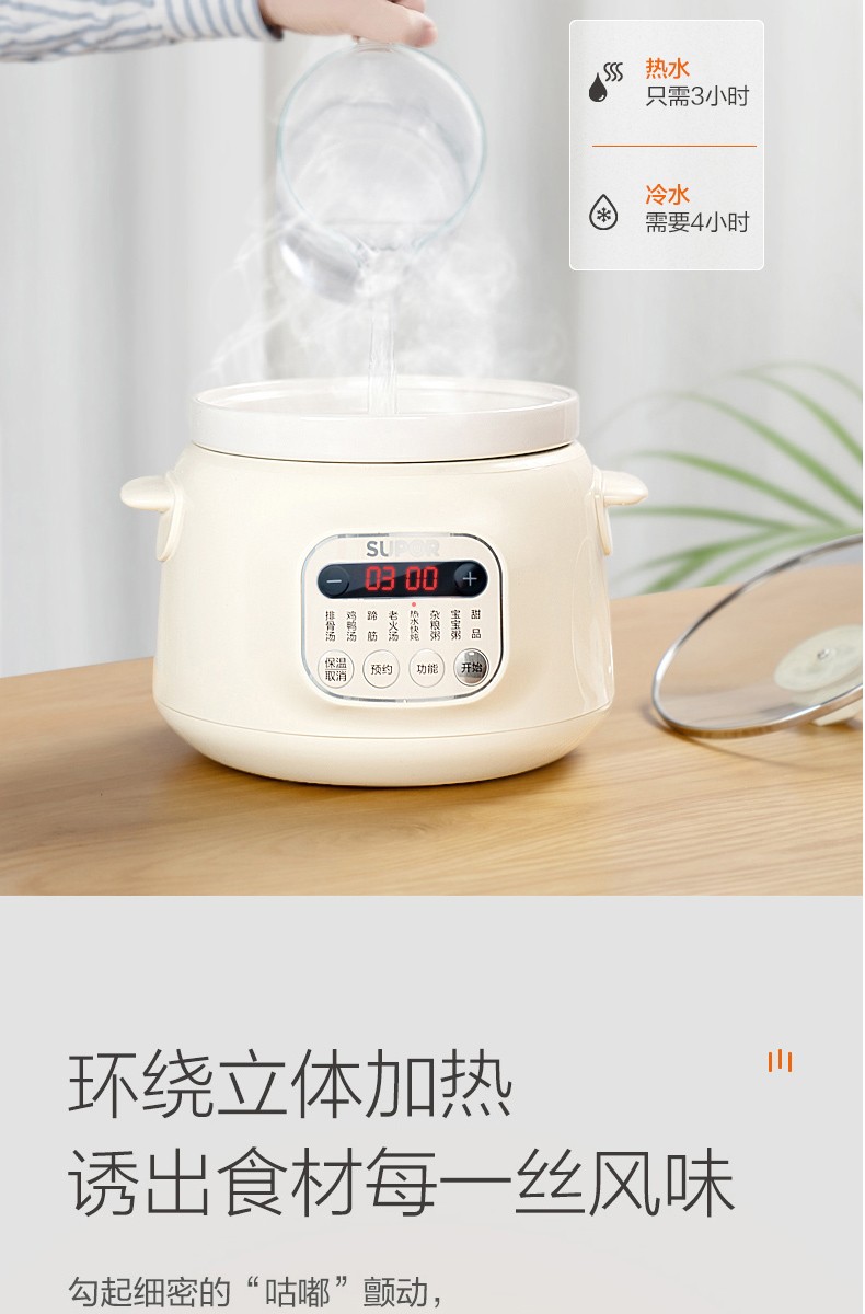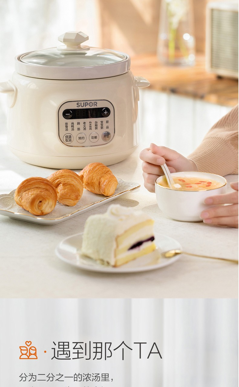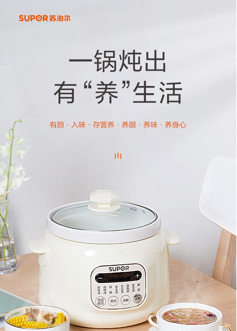 SUPOR electric stew pot, electric stew pot, soup pot, stew pot, porridge pot, ceramic bird's nest stew pot, fully automatic intelligent porridge pot, 3L capacity 3L DG30YC826