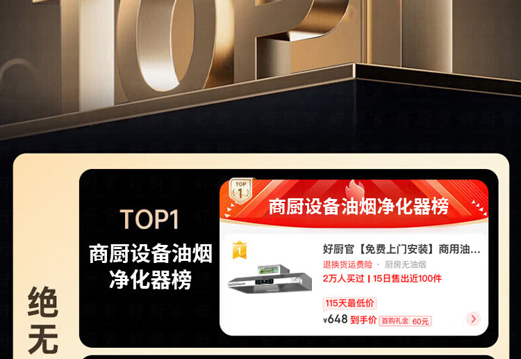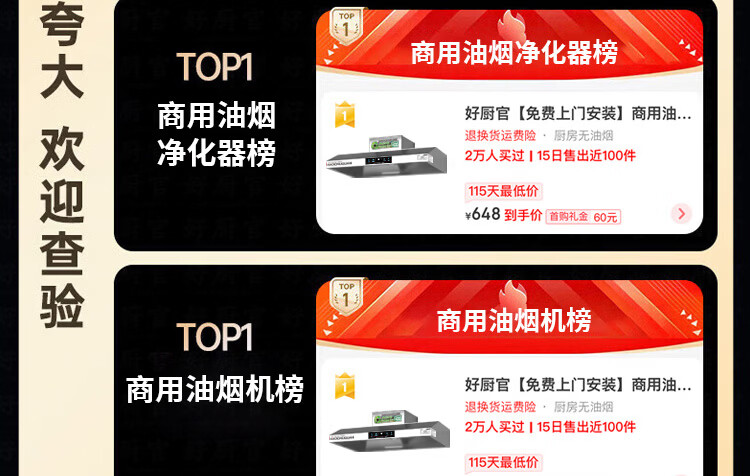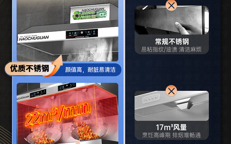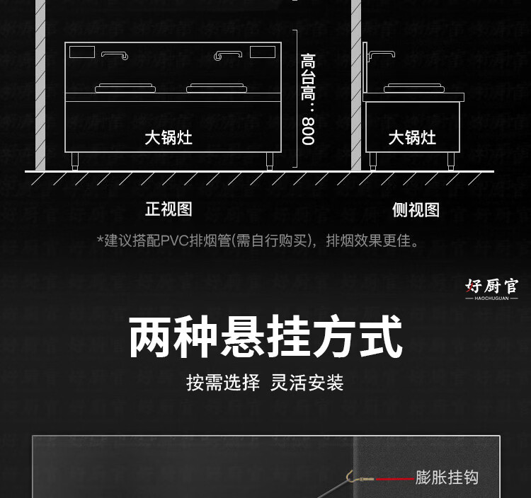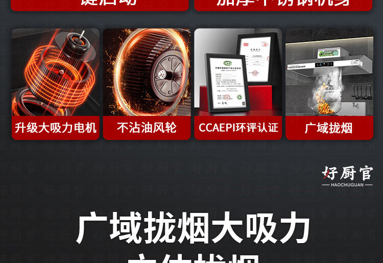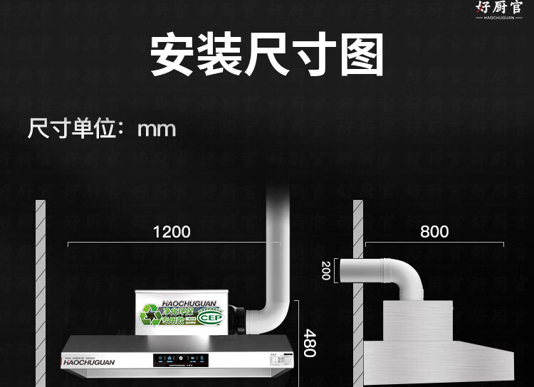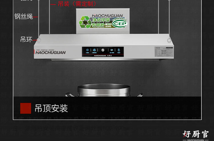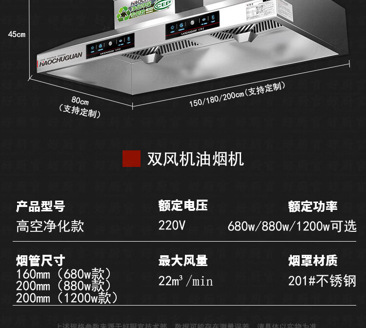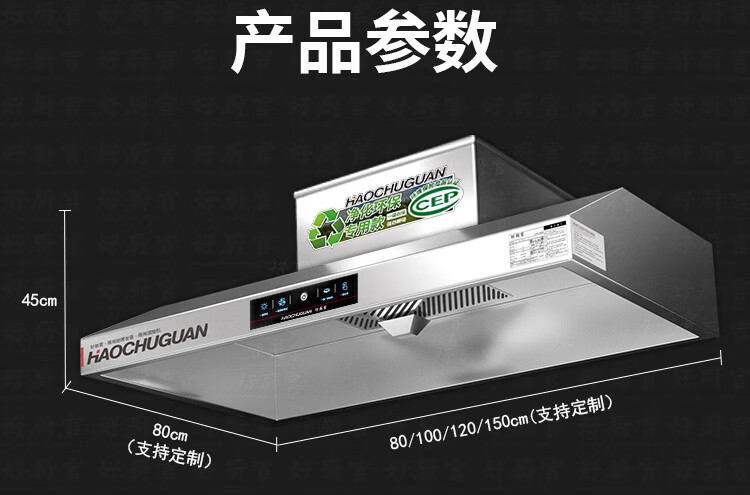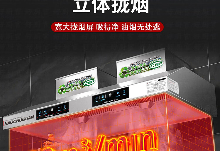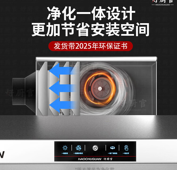 Good Kitchen Official supports door-to-door installation, commercial range hood, purifier integrated machine, stainless steel hood, rural firewood stove, earth stove, hotel kitchen canteen, fried chicken, environmental protection, large suction, with purifier 120*80*45cm (880 watt single fan), self-installation, flagship style