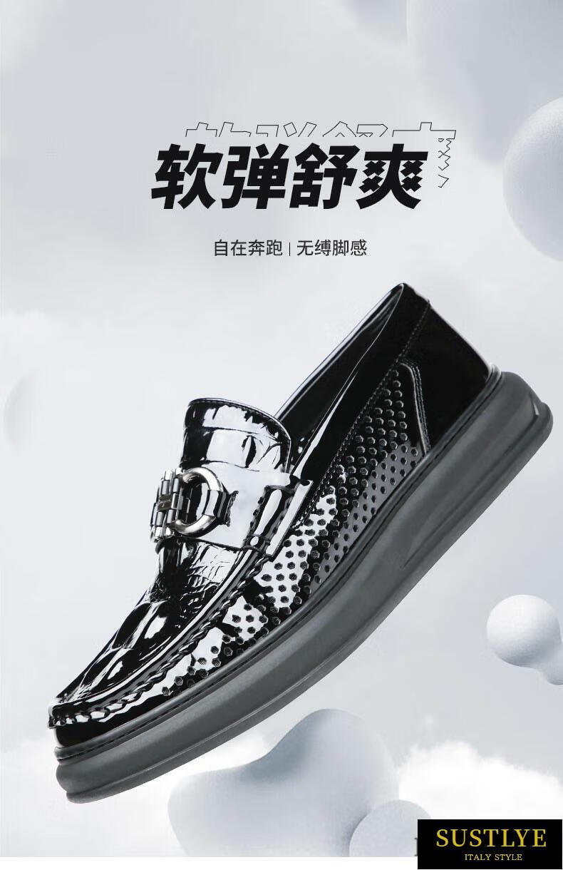 SUSTYLE luxury high-end brand new men's shoes, bean shoes, men's summer breathable hollow sandals, men's super soft KD6194-1B gift box (pre-sale deposit required to pay the balance) 41 gift box (pre-sale deposit required to pay the balance)