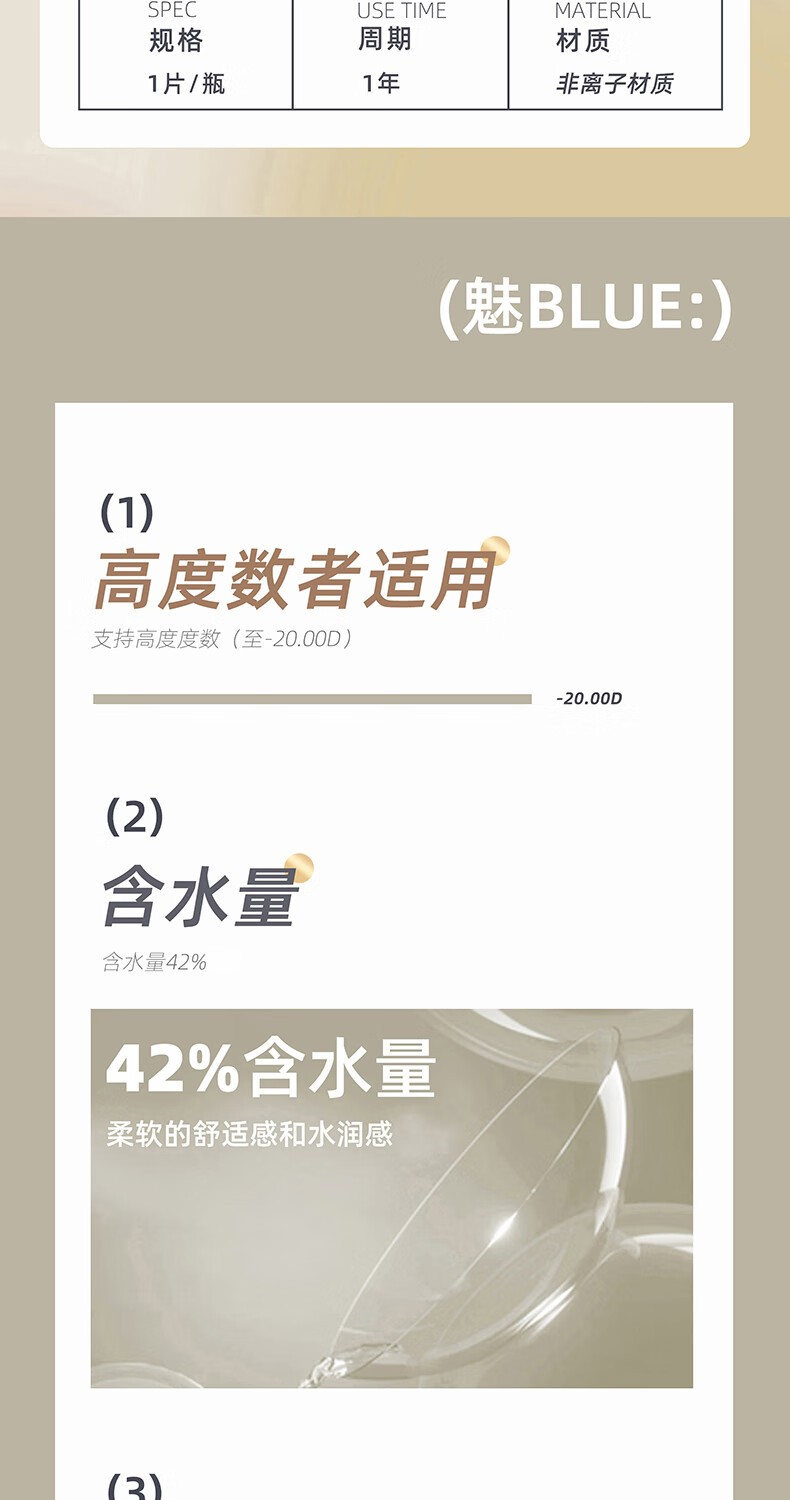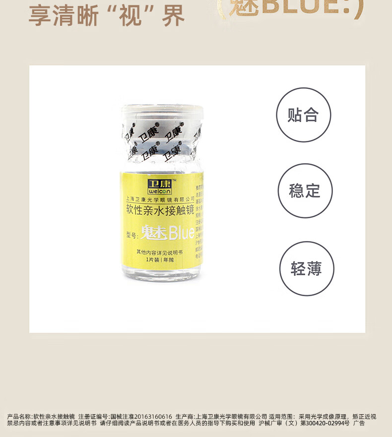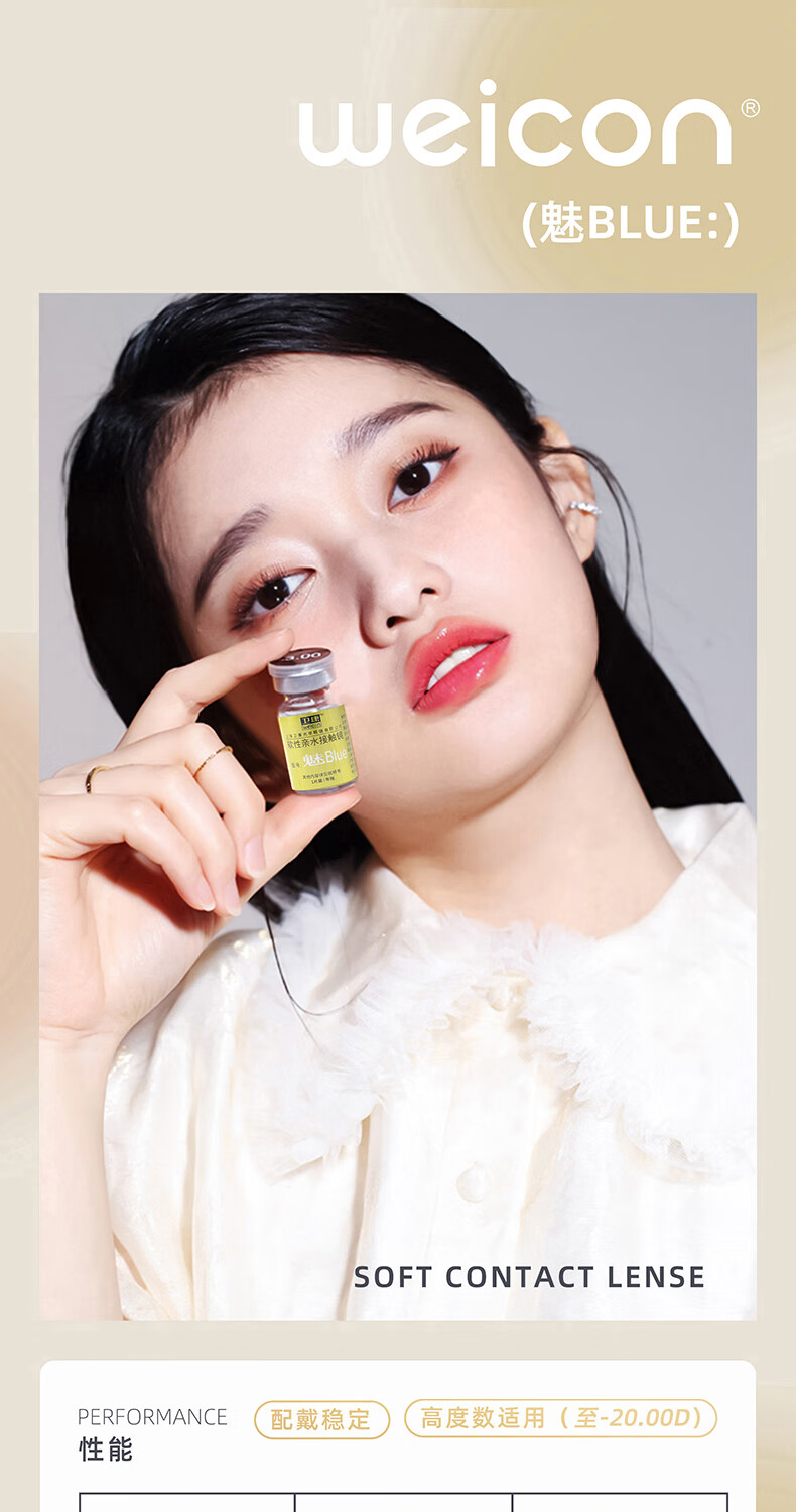 Weikang Jinzhuangmei blaue transparente Kontaktlinsen, Einweg-1 Stück pro Jahr für Myopie, 1 Stück pro Jahr, feuchtigkeitsspendende Höhe, 1 Stück pro Jahr, 1050 Grad
