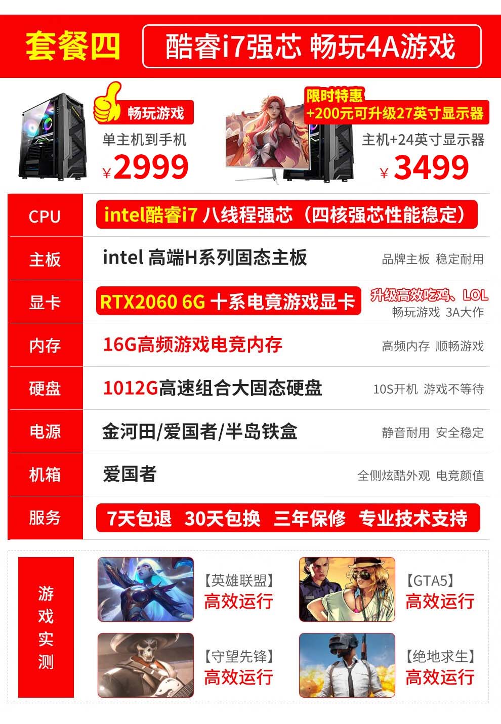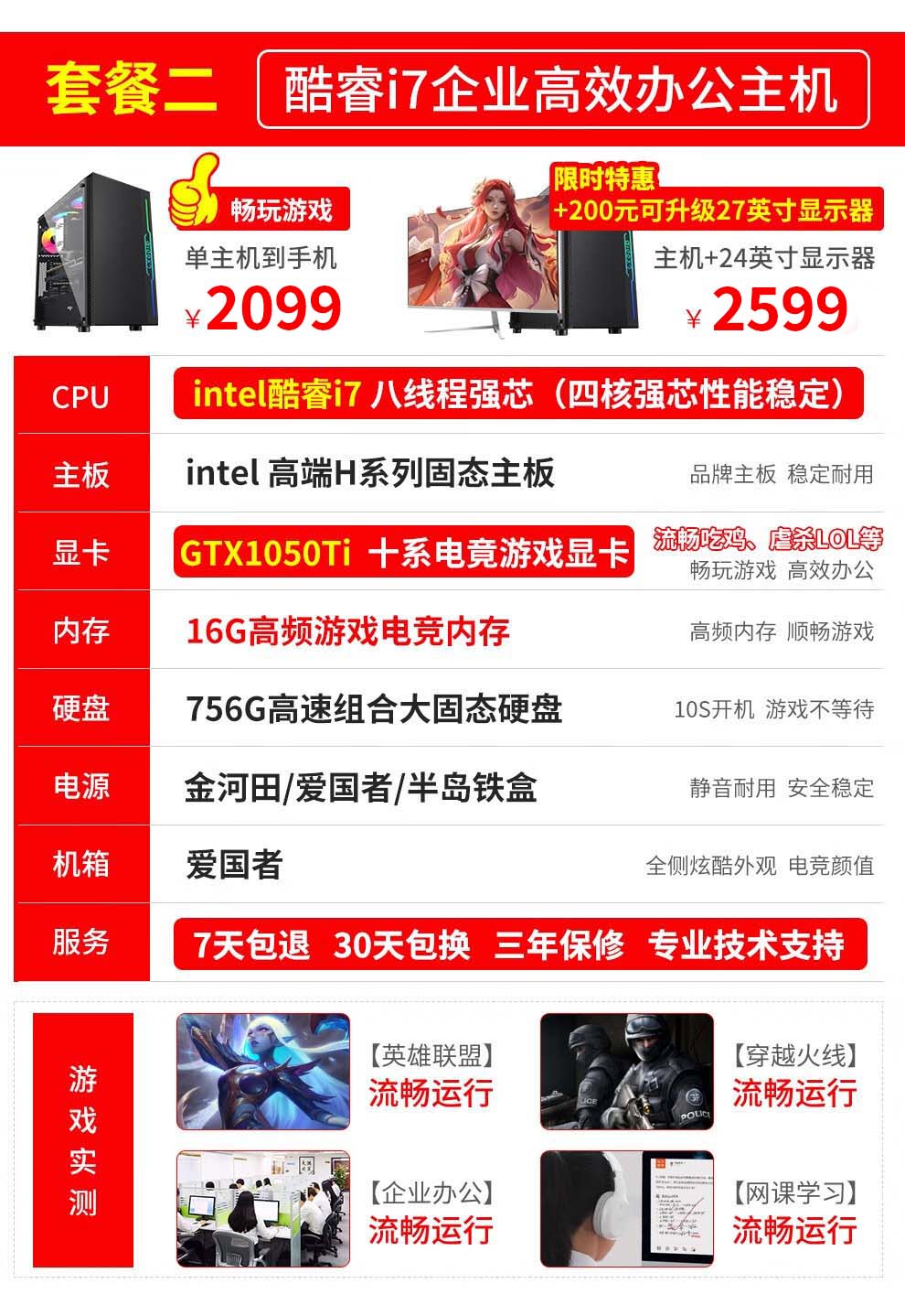 奥珀特(aopote) 英特尔酷睿i5独显16G内存台式机电脑主机整机全套组装家用电竞游戏主机 电脑主机 配置二酷睿i7+16G+756G+1050Ti独显