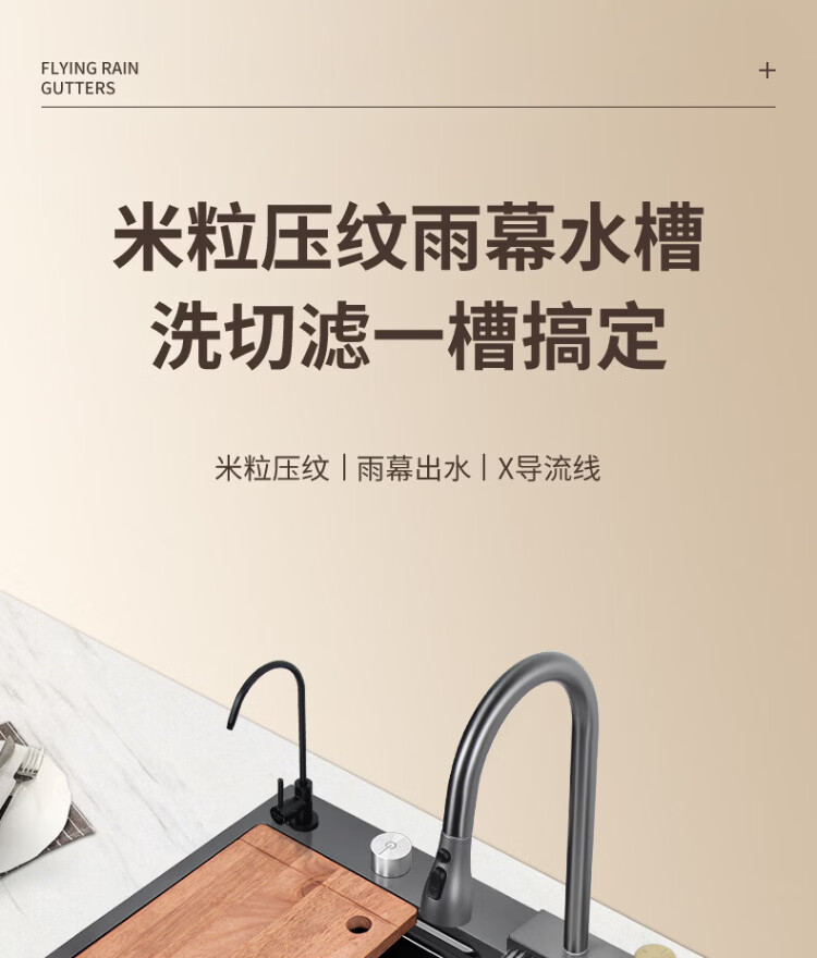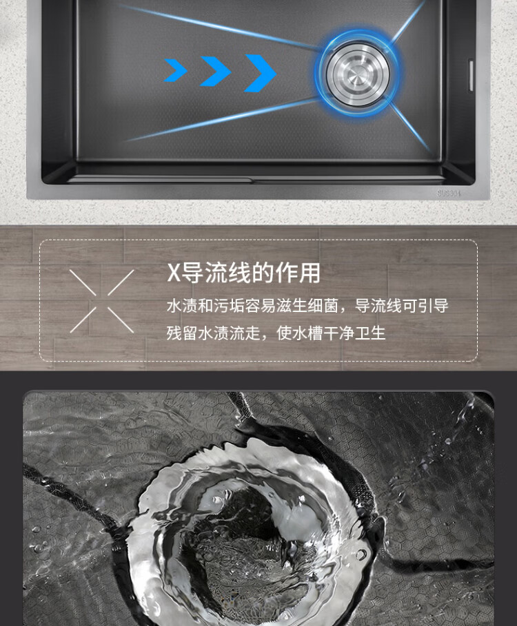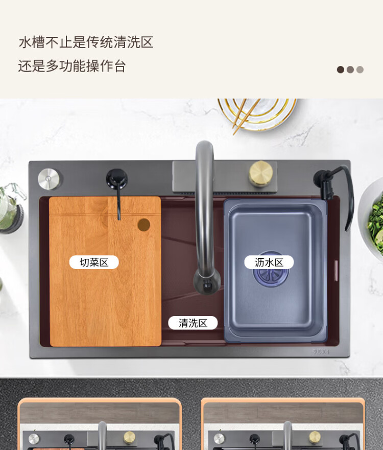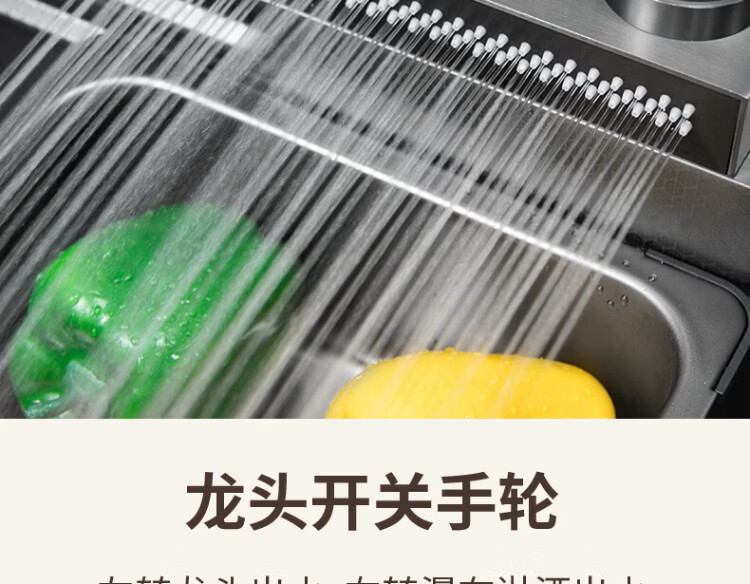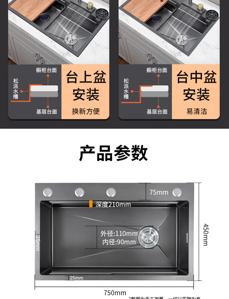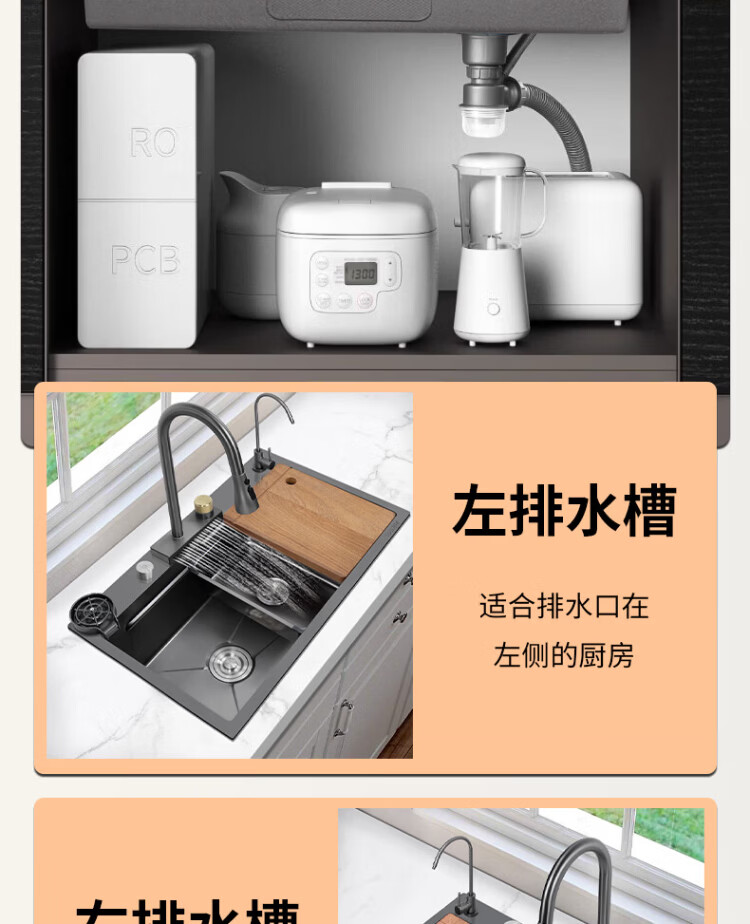 Songpai Honeycomb Rain Curtain Sink Left Drainage Large Single Slot 304 Stainless Steel Kitchen Wash Basin Integrated Sink Desktop Control Version-Gun Gray Left Row with Rain Curtain Faucet 680*450mm National Standard SUS304 Get 10% off if you get it fake