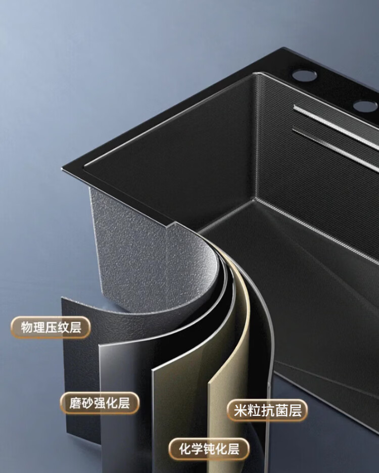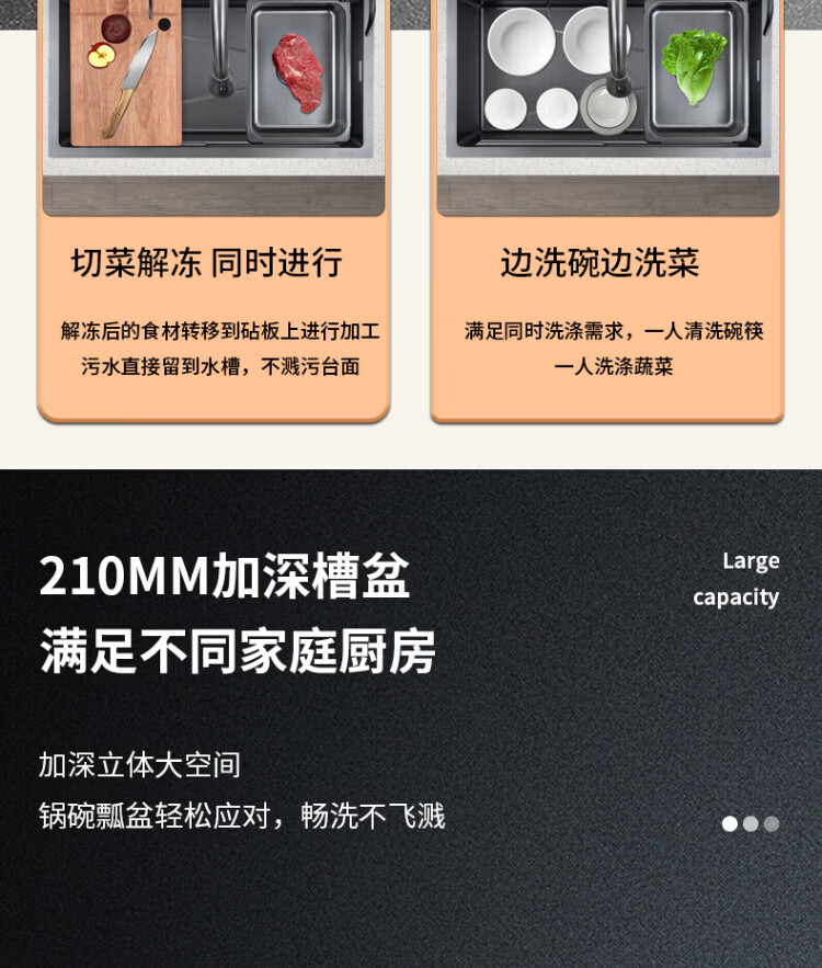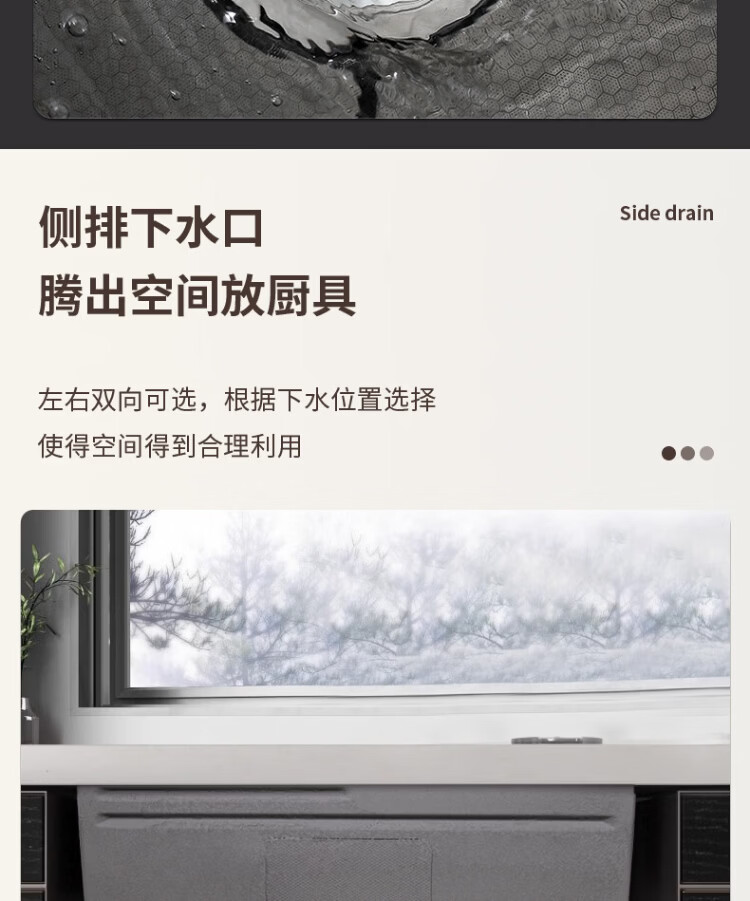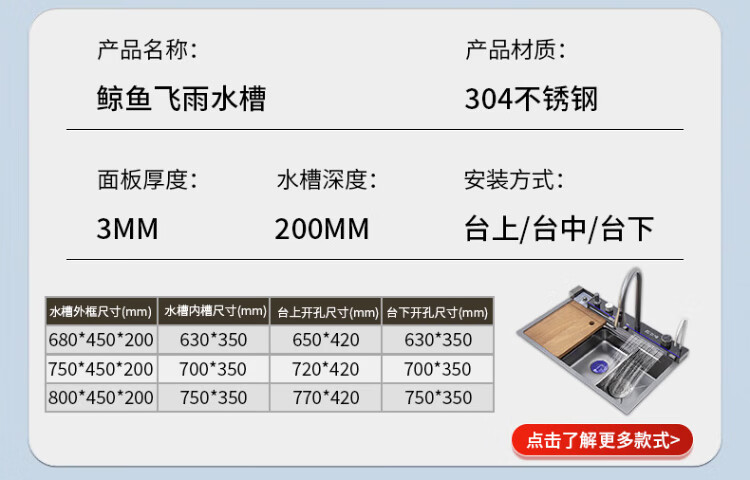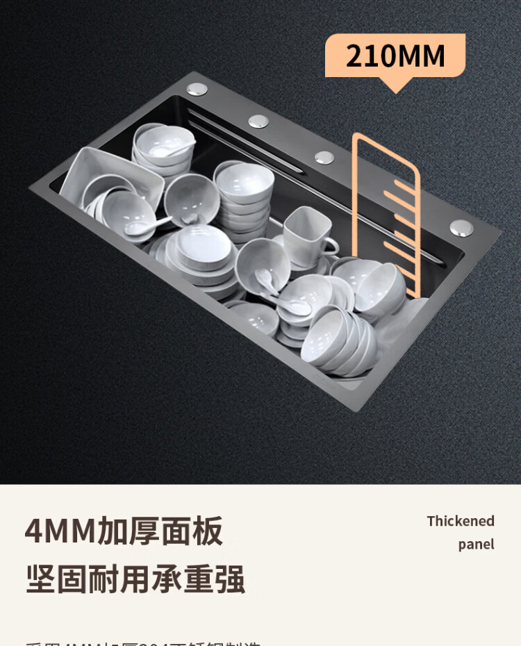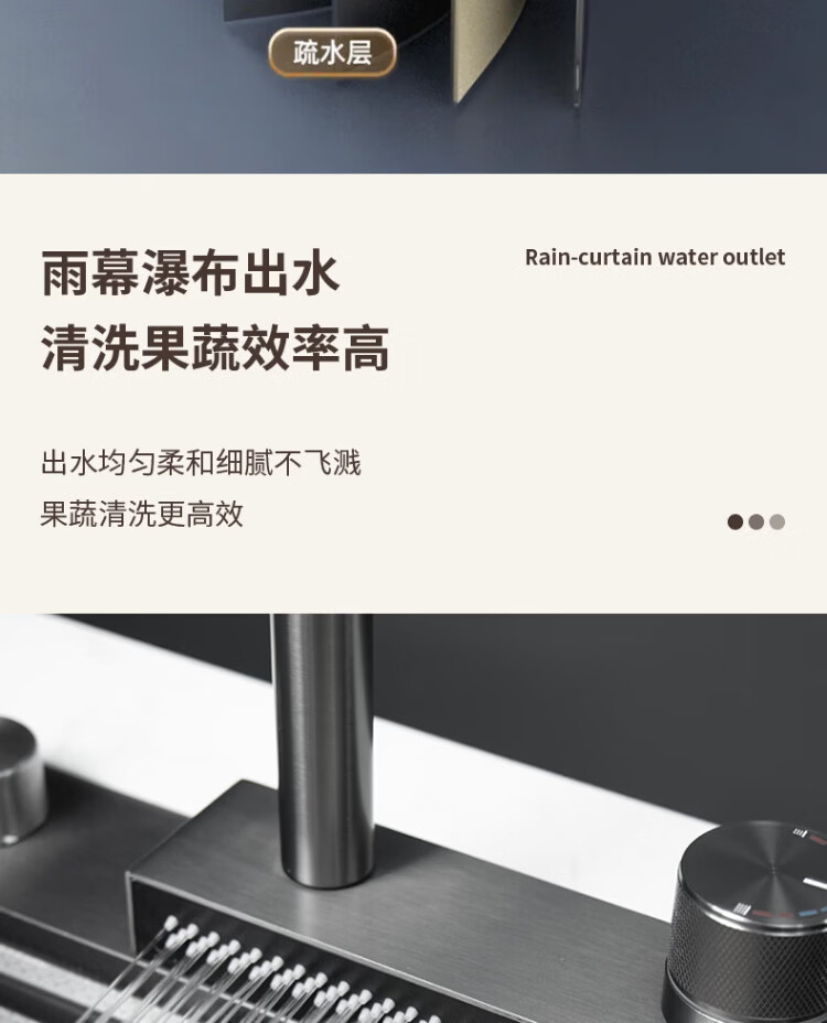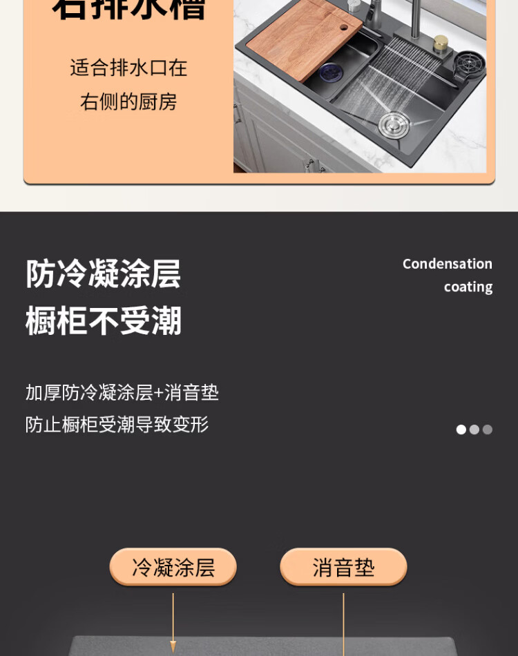 Songpai Honeycomb Rain Curtain Sink Left Drainage Large Single Slot 304 Stainless Steel Kitchen Wash Basin Integrated Sink Desktop Control Version-Gun Gray Left Row with Rain Curtain Faucet 680*450mm National Standard SUS304 Get 10% off if you get it fake