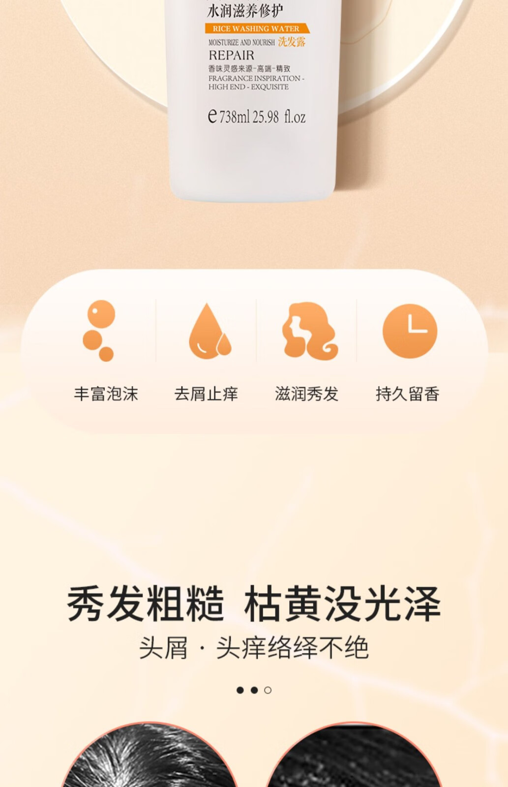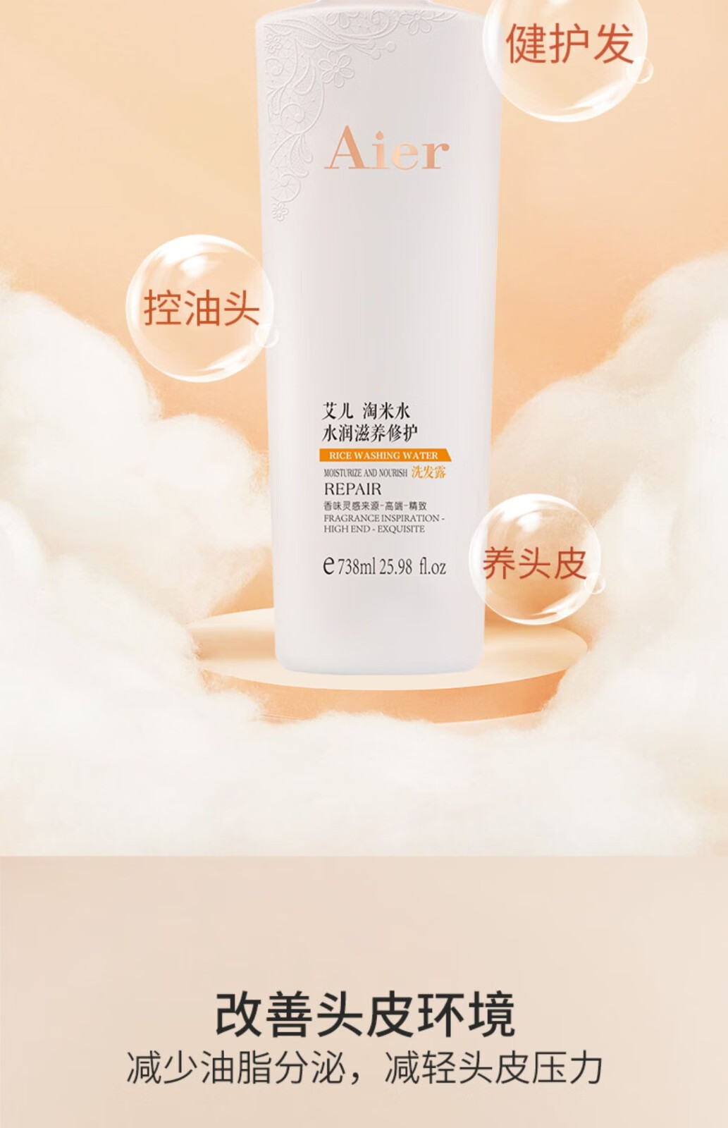 Aier Rice Water Shampoo Pflegendes, feuchtigkeitsspendendes, Anti-Schuppen- und reparierendes Duftshampoo 738 ml Taomi Water Feuchtigkeitsspendendes, nährendes und reparierendes Shampoo 738 ml