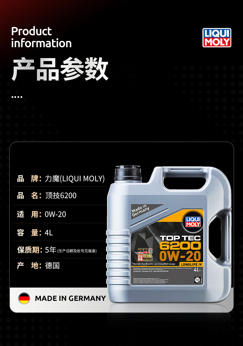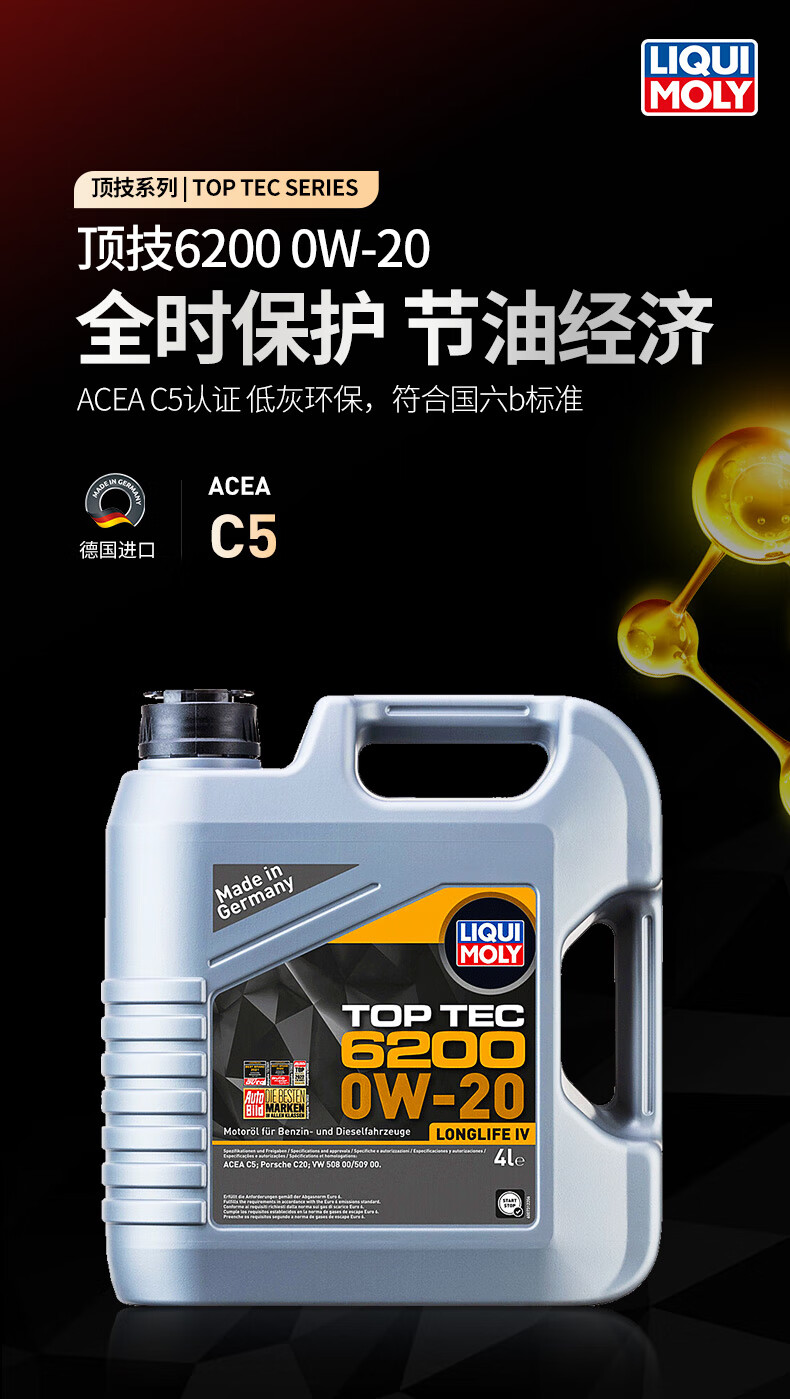 LIQUI MOLY Deutsch importiertes Motoröl Top-Technologie 6200 Synthetiköl 0W-20 passend für Volkswagen Audi 20788 0W-20 4L