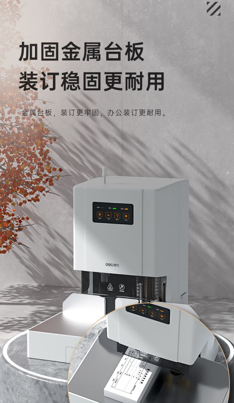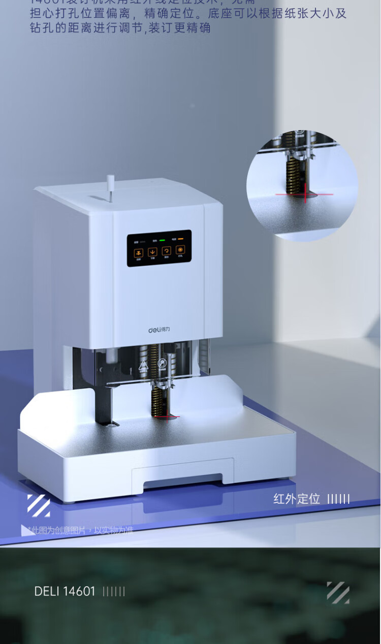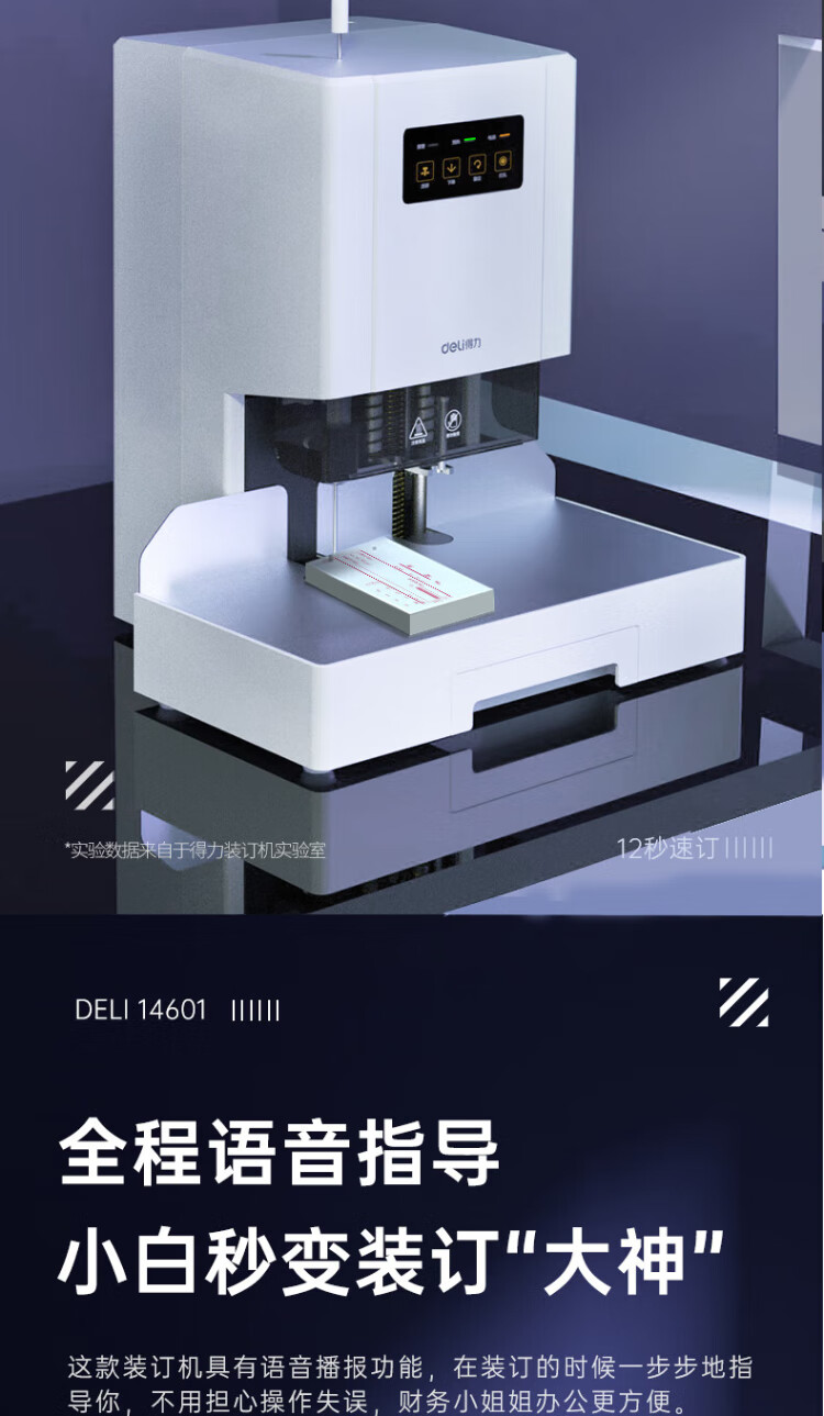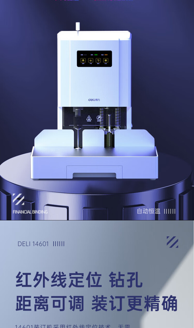 得力(deli)凭证装订机财务专用全自动智能激光办公会计档案热熔铆管装订打孔 3884S【全自动】液晶触控屏60mm 标配(自带钻刀)全国联保带发票