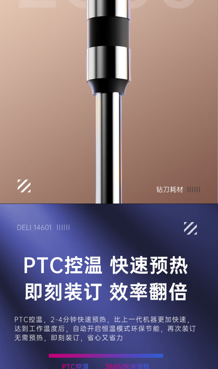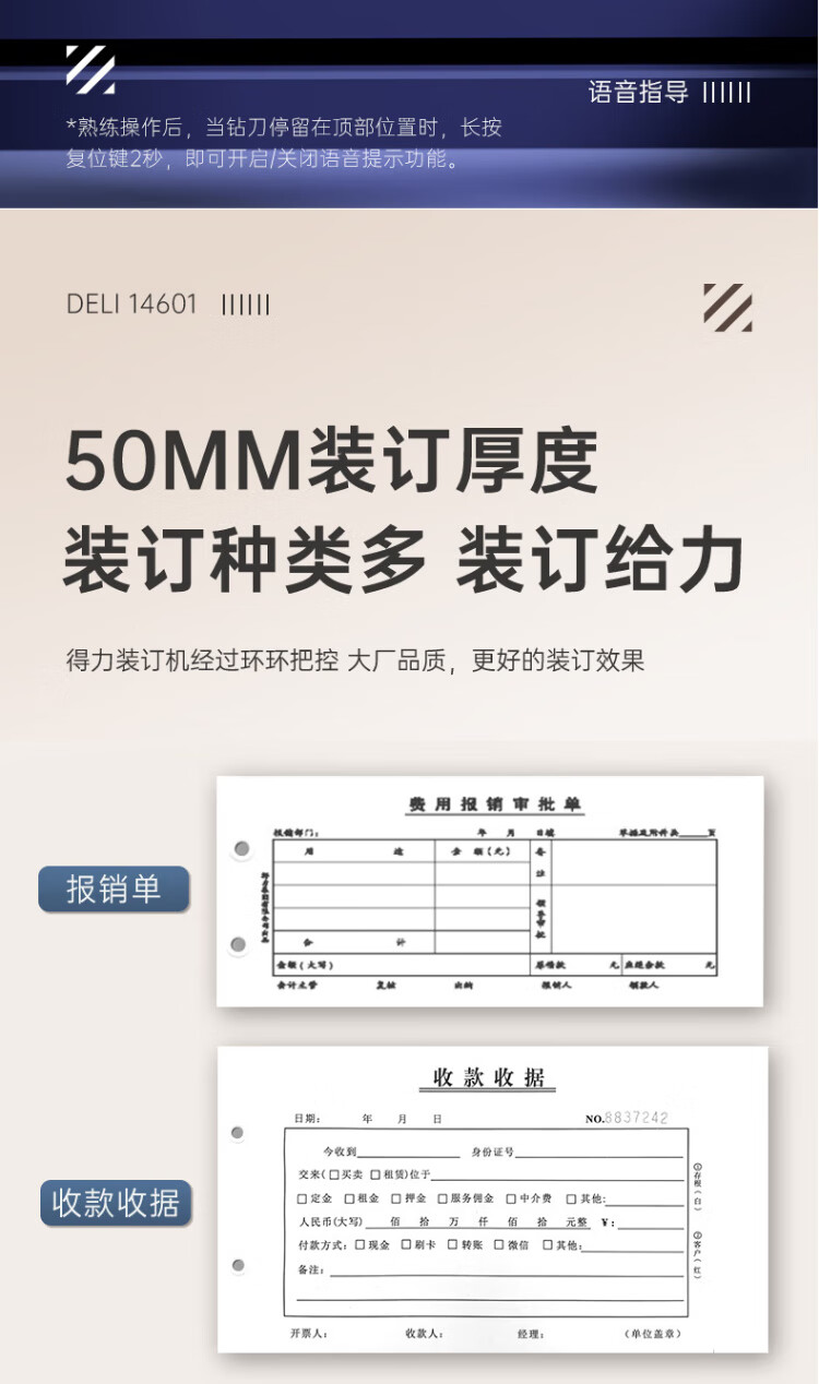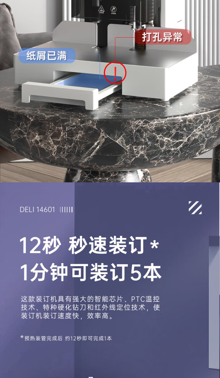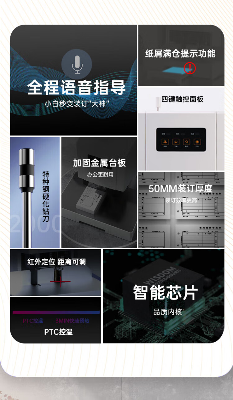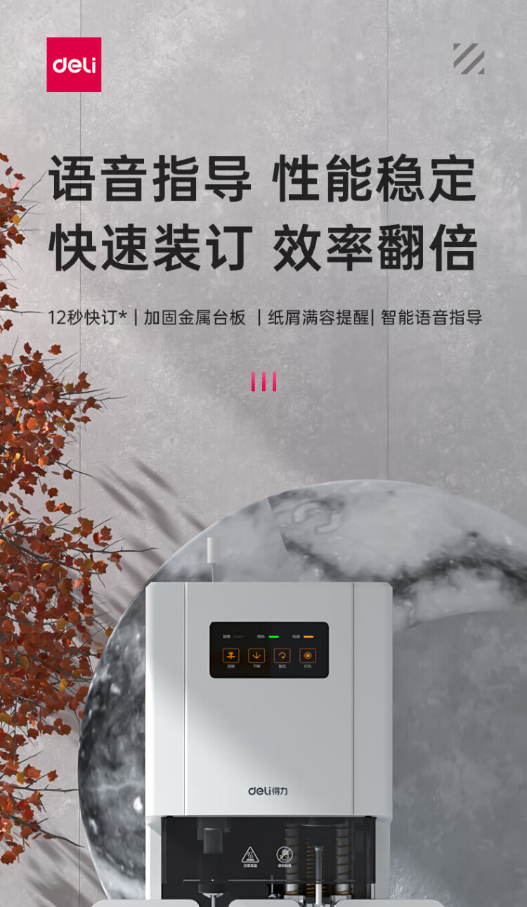 得力(deli)凭证装订机财务专用全自动智能激光办公会计档案热熔铆管装订打孔 3884S【全自动】液晶触控屏60mm 标配(自带钻刀)全国联保带发票