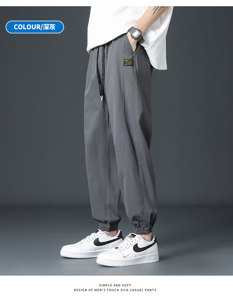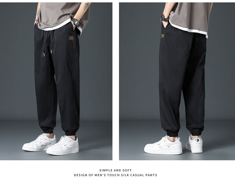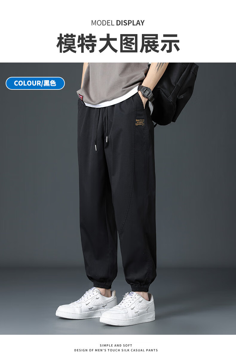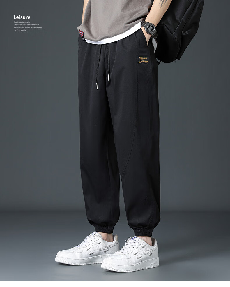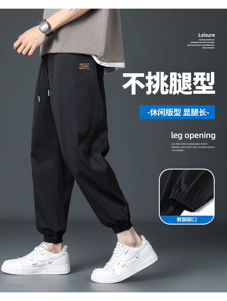 MageGee pants men's spring and autumn men's loose casual pants students Korean style foot-binding sports breathable workwear small-foot trousers 237 black XL