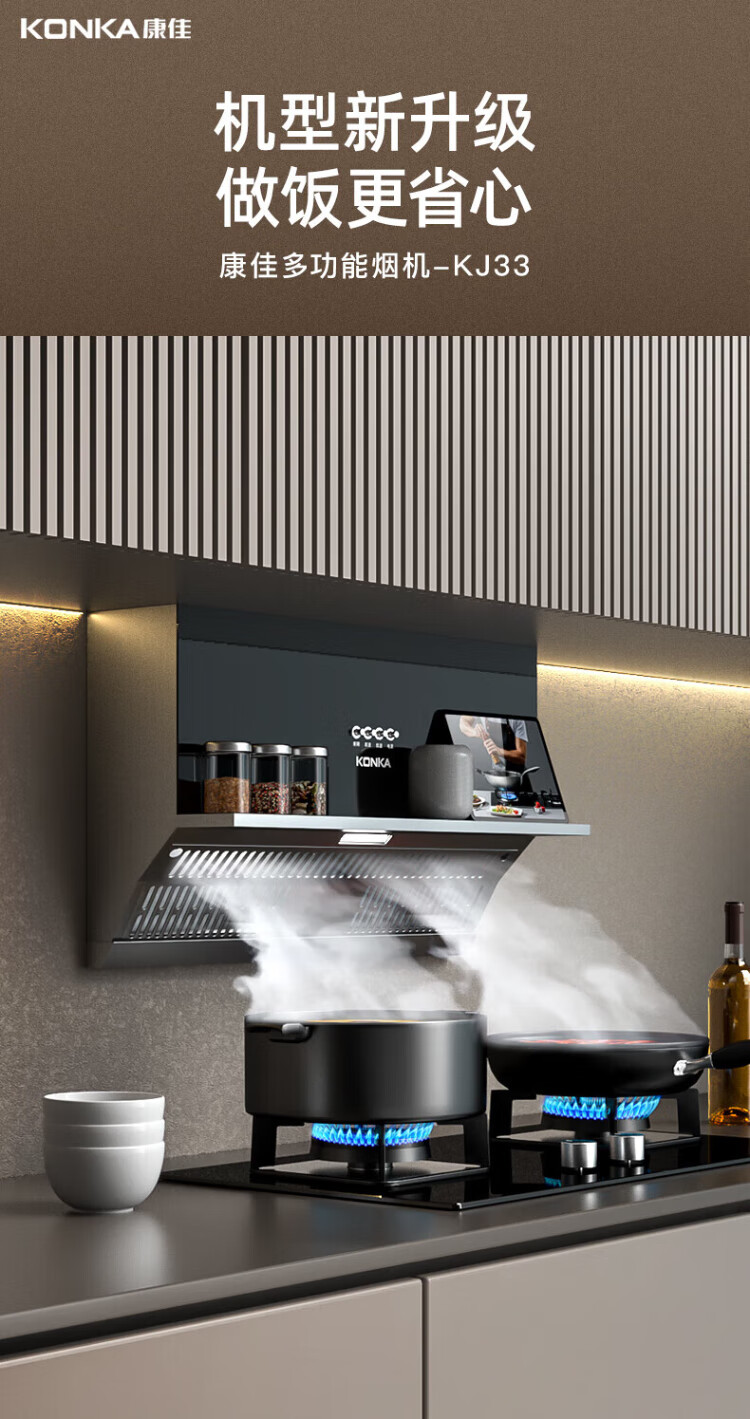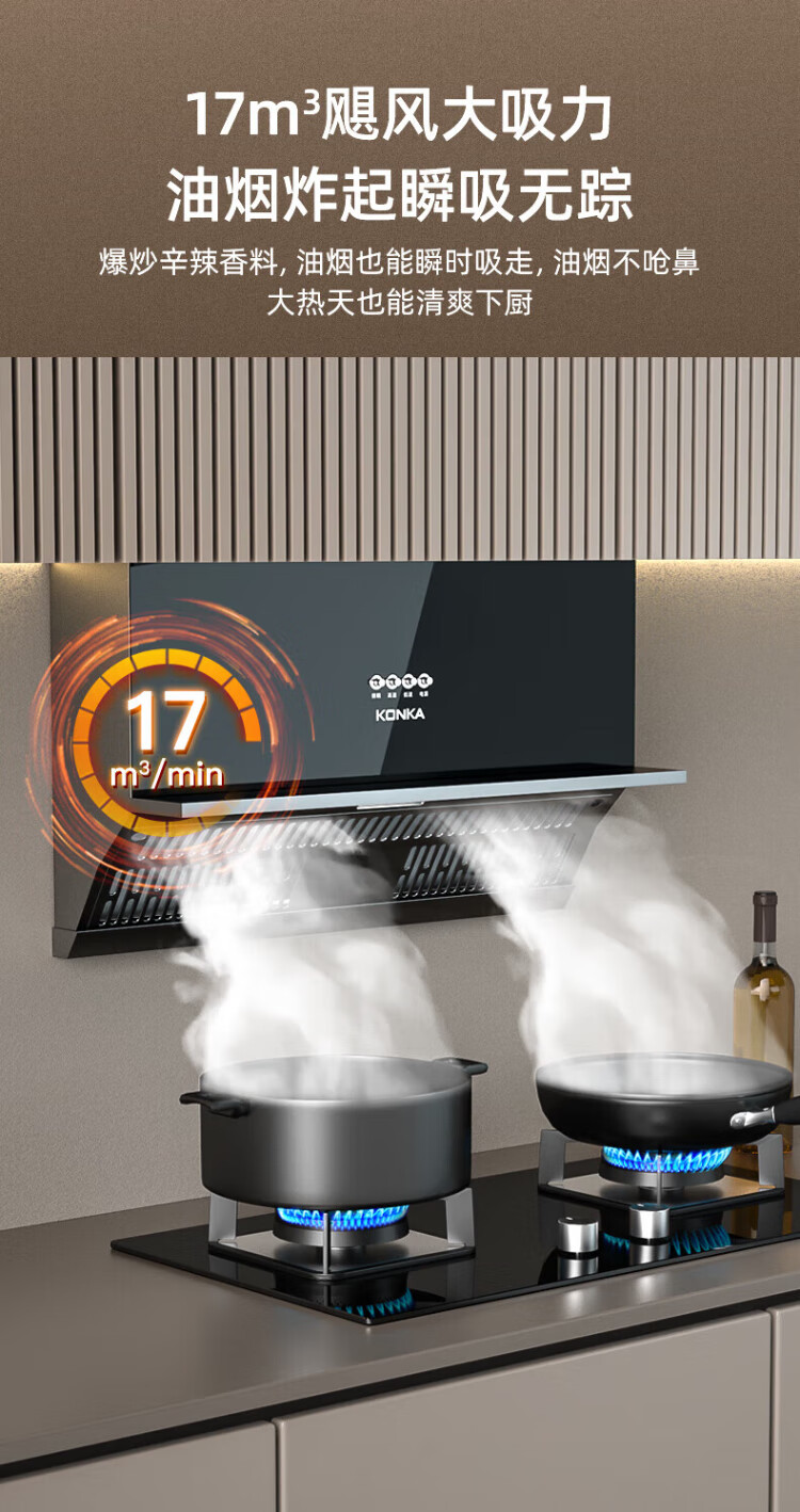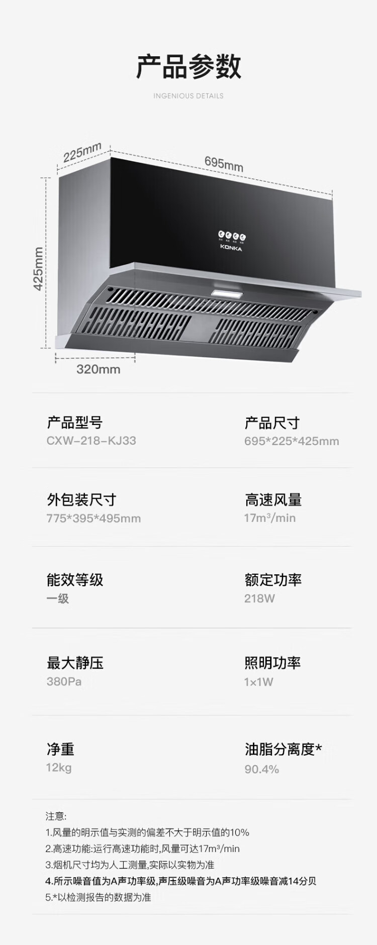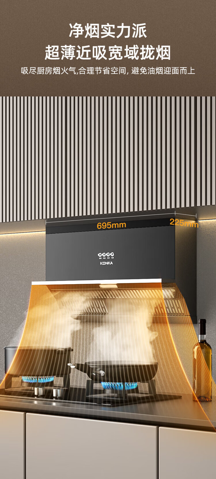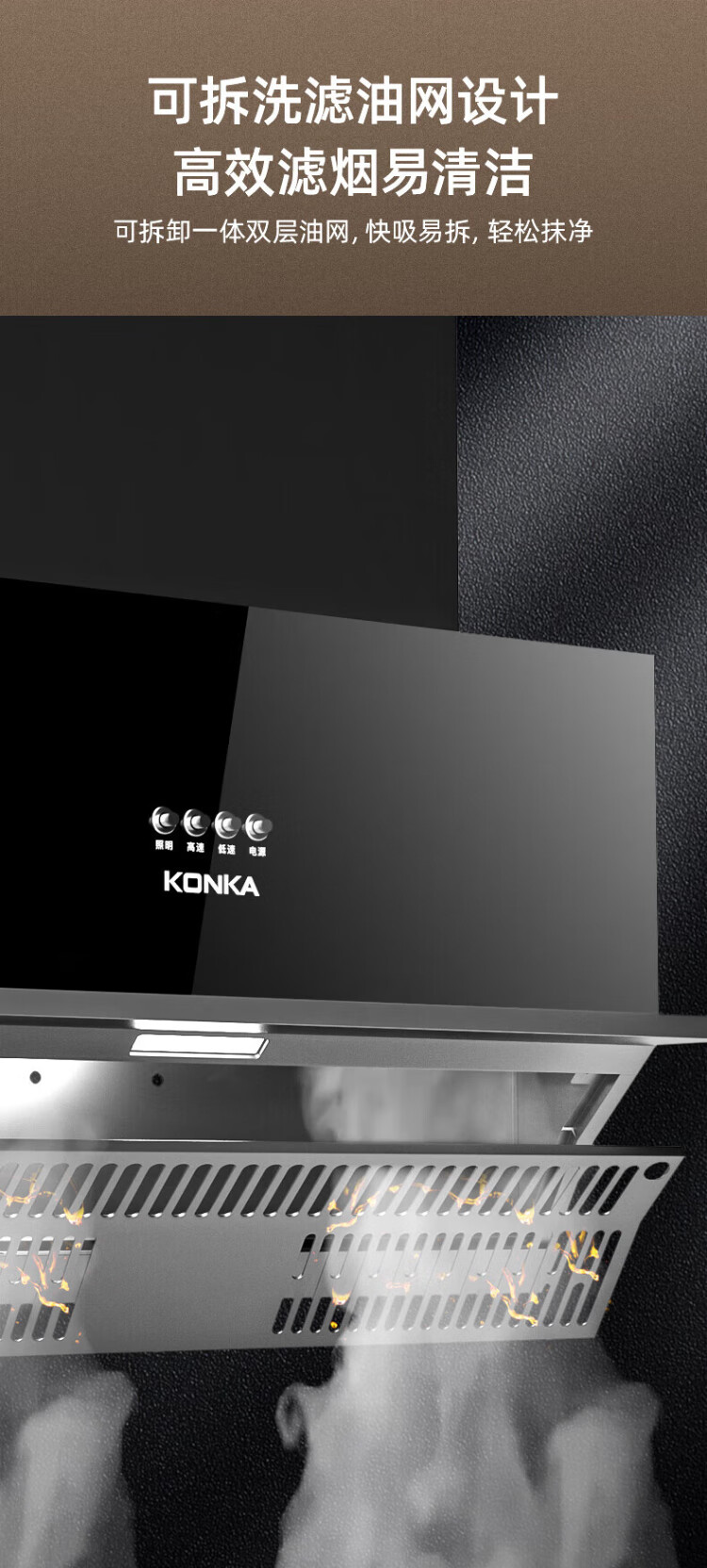 KONKA-Dunstabzugshaube für den Haushalt, 17 m, große Absaugung, seitliche Absaugung, 695 mm, kleine Größe, Ersatz für Wohnung, Miethaus, abnehmbare Ölsieb-Aufbewahrungsplattform KJ33, einzelne Dunstabzugshaube, kleine Größe in der Nähe der Absaugung KJ33 (Installation inklusive)