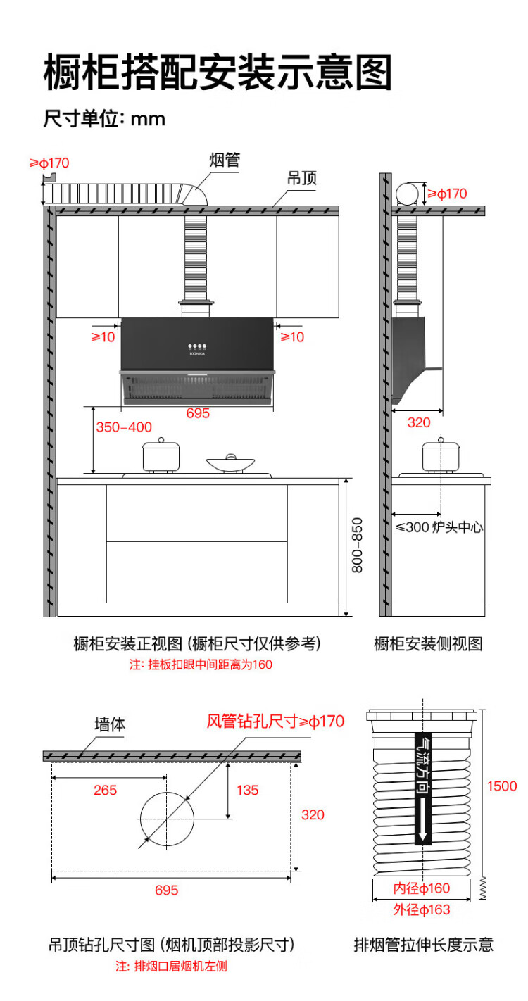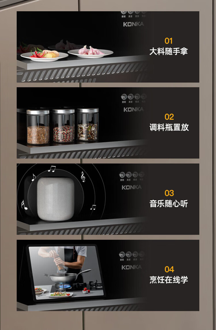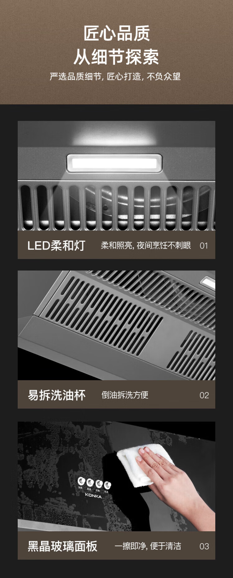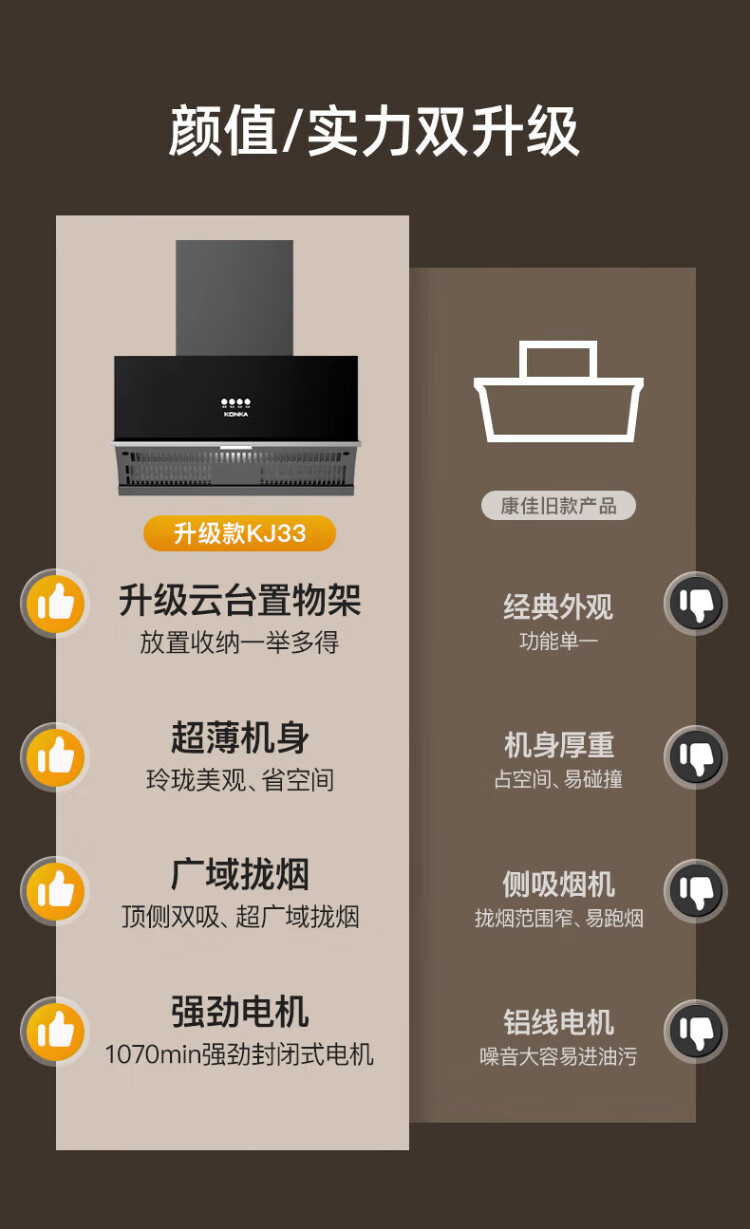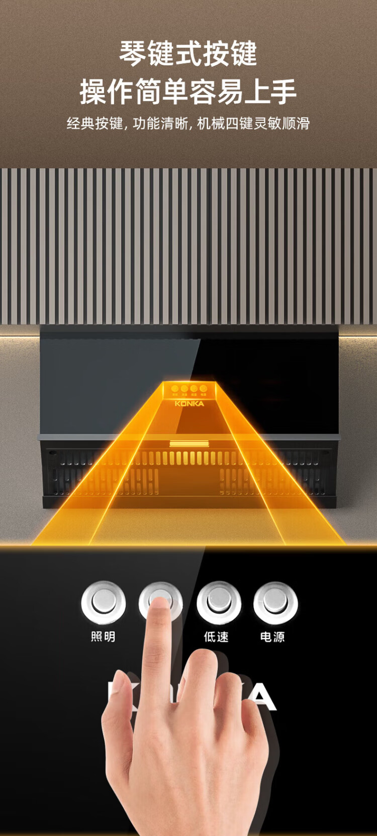 KONKA-Dunstabzugshaube für den Haushalt, 17 m, große Absaugung, seitliche Absaugung, 695 mm, kleine Größe, Ersatz für Wohnung, Miethaus, abnehmbare Ölsieb-Aufbewahrungsplattform KJ33, einzelne Dunstabzugshaube, kleine Größe in der Nähe der Absaugung KJ33 (Installation inklusive)