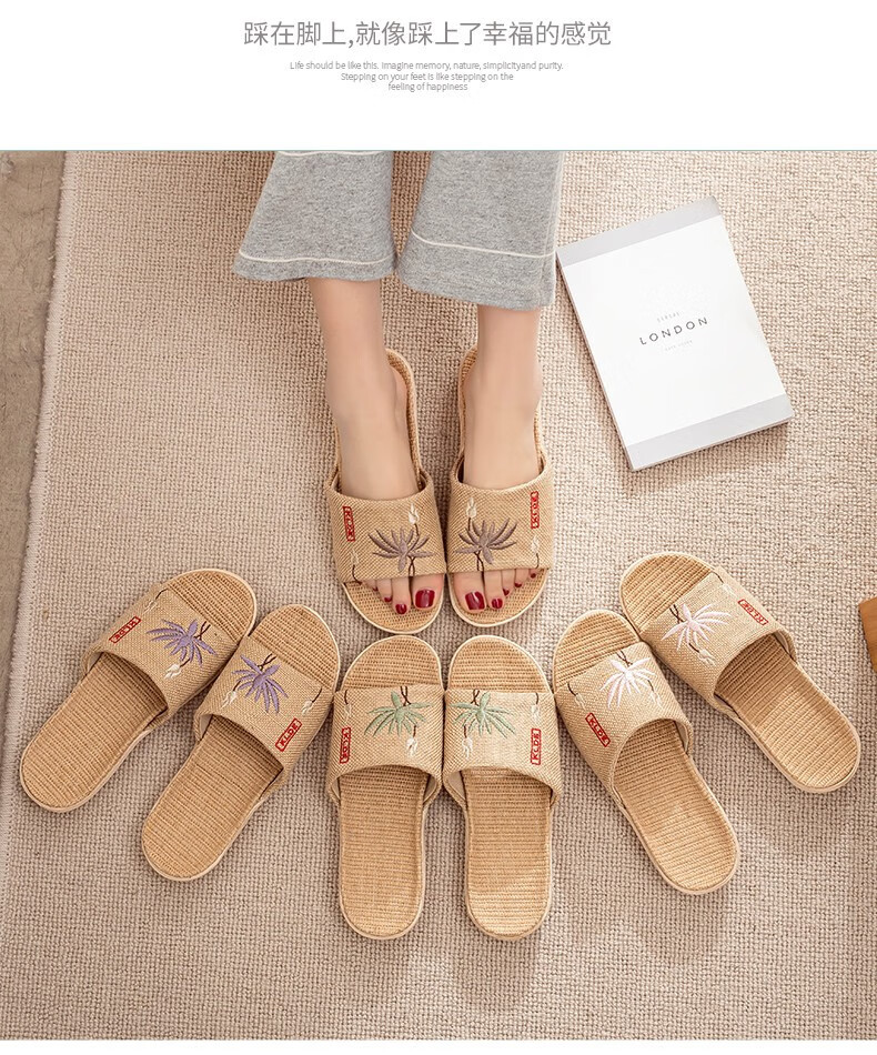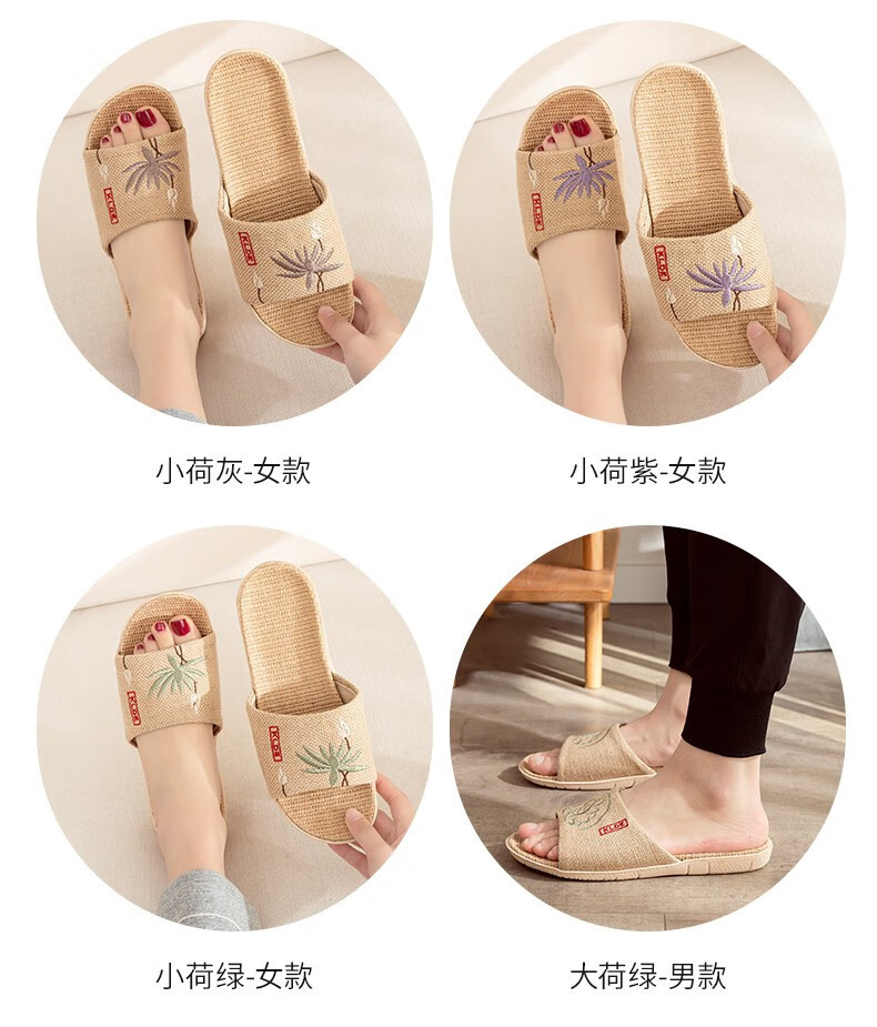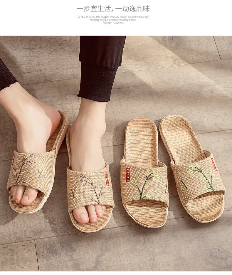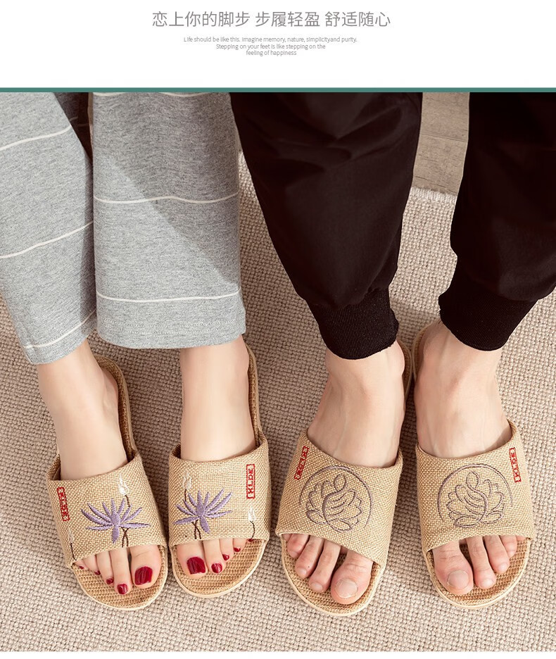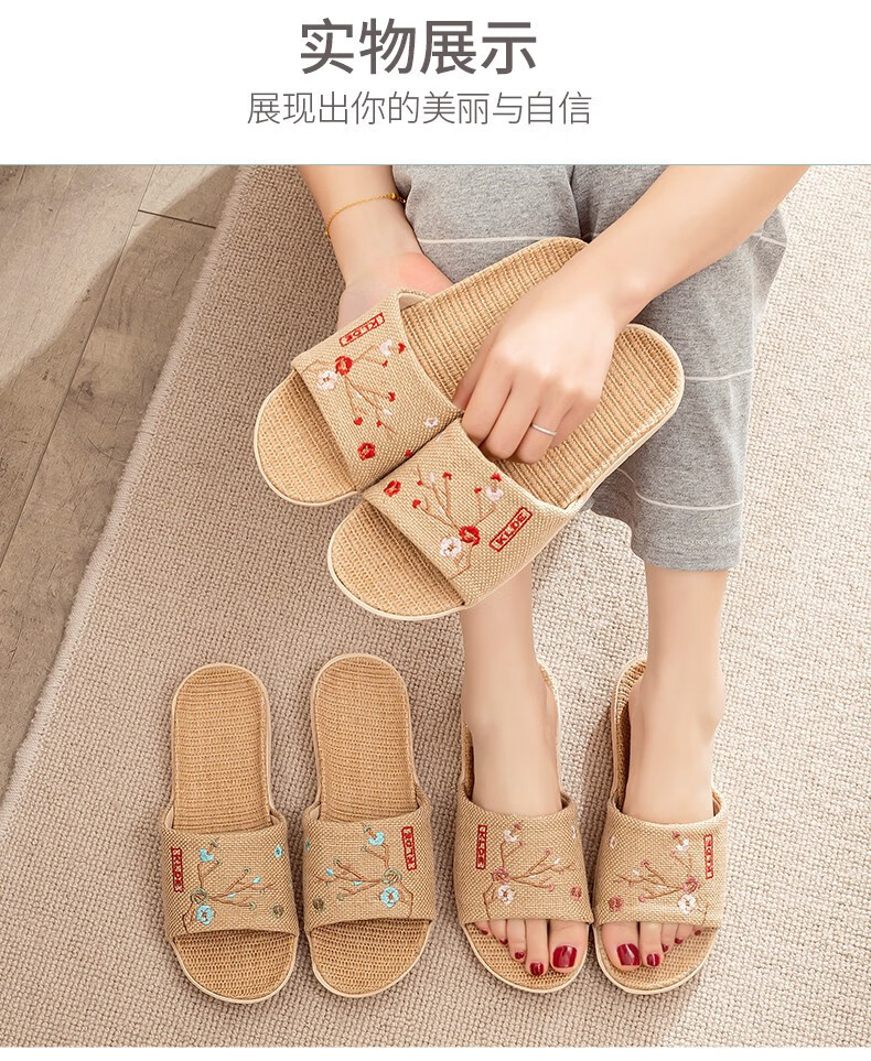 熠牧夏季中国风亚麻拖鞋男女居家情侣防滑软底家用地板绣花麻布凉拖鞋 女款梅花红 37-38 (250mm) 女款