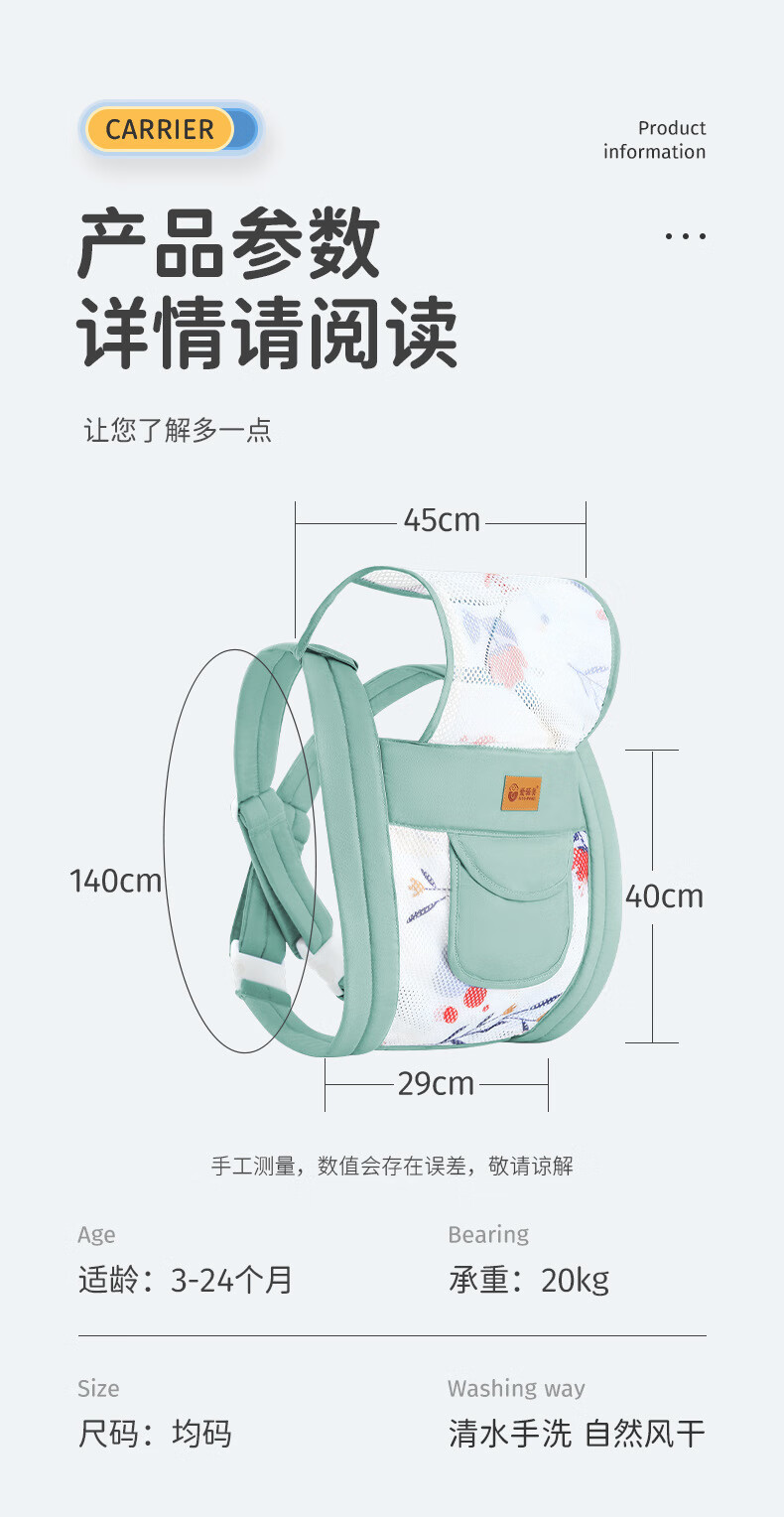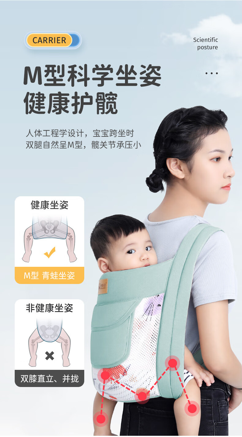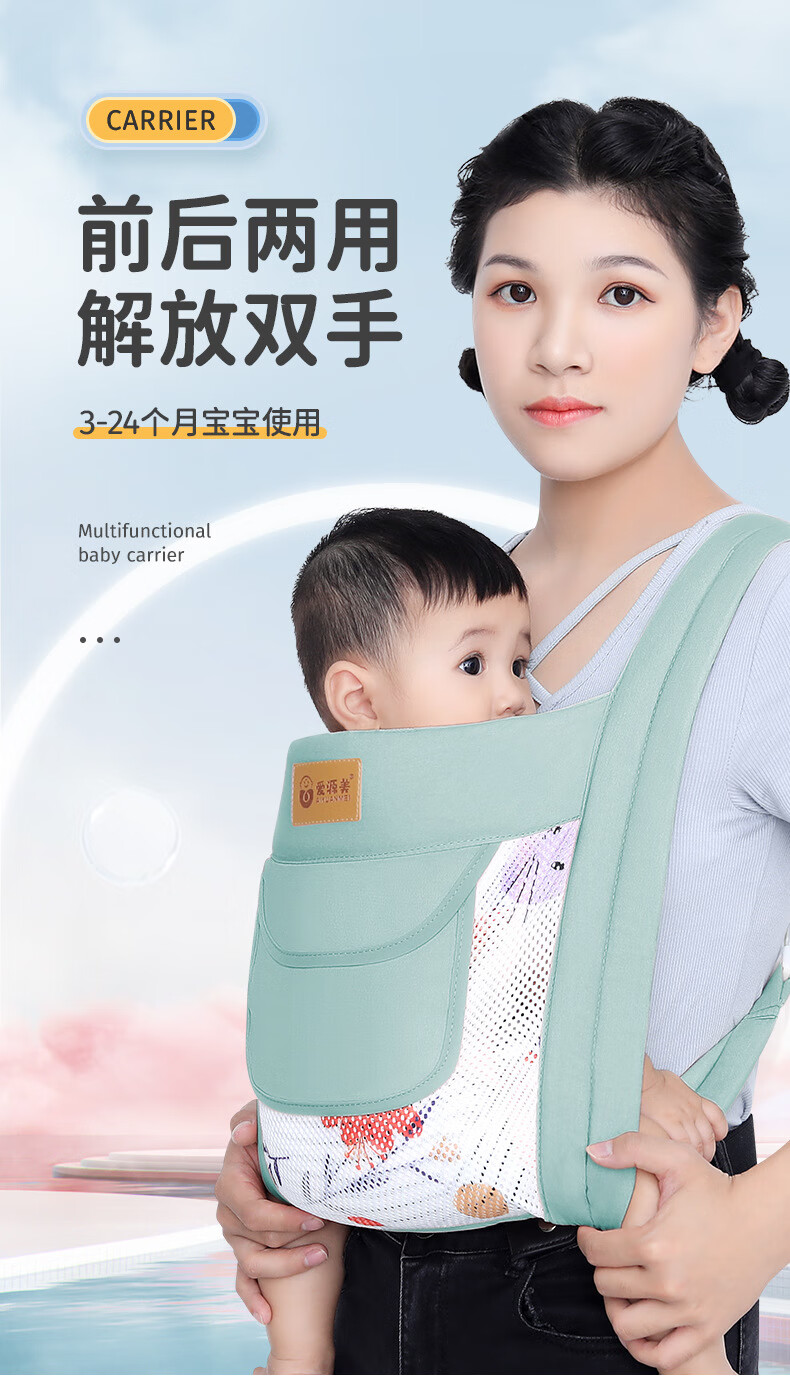 Eton Drew baby carrier, front and back, dual-use baby carrier, baby outing, simple multi-function direct sale, mint green