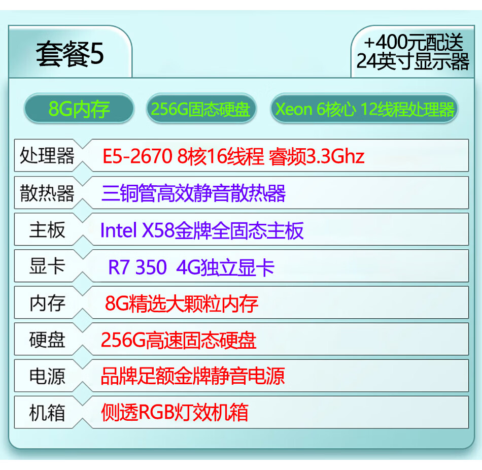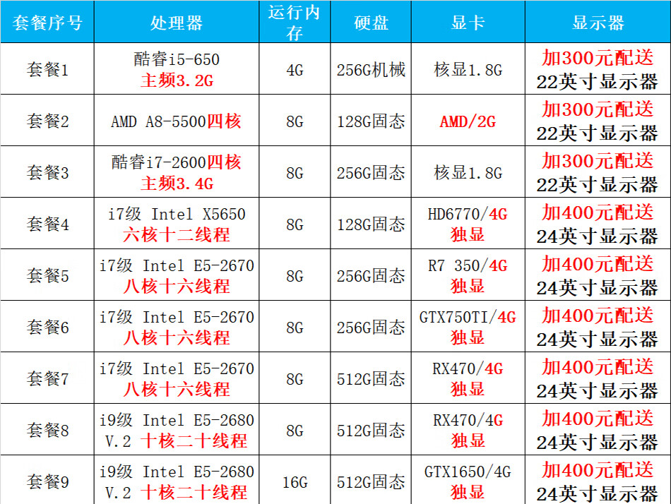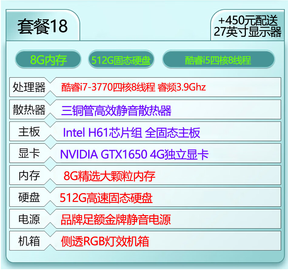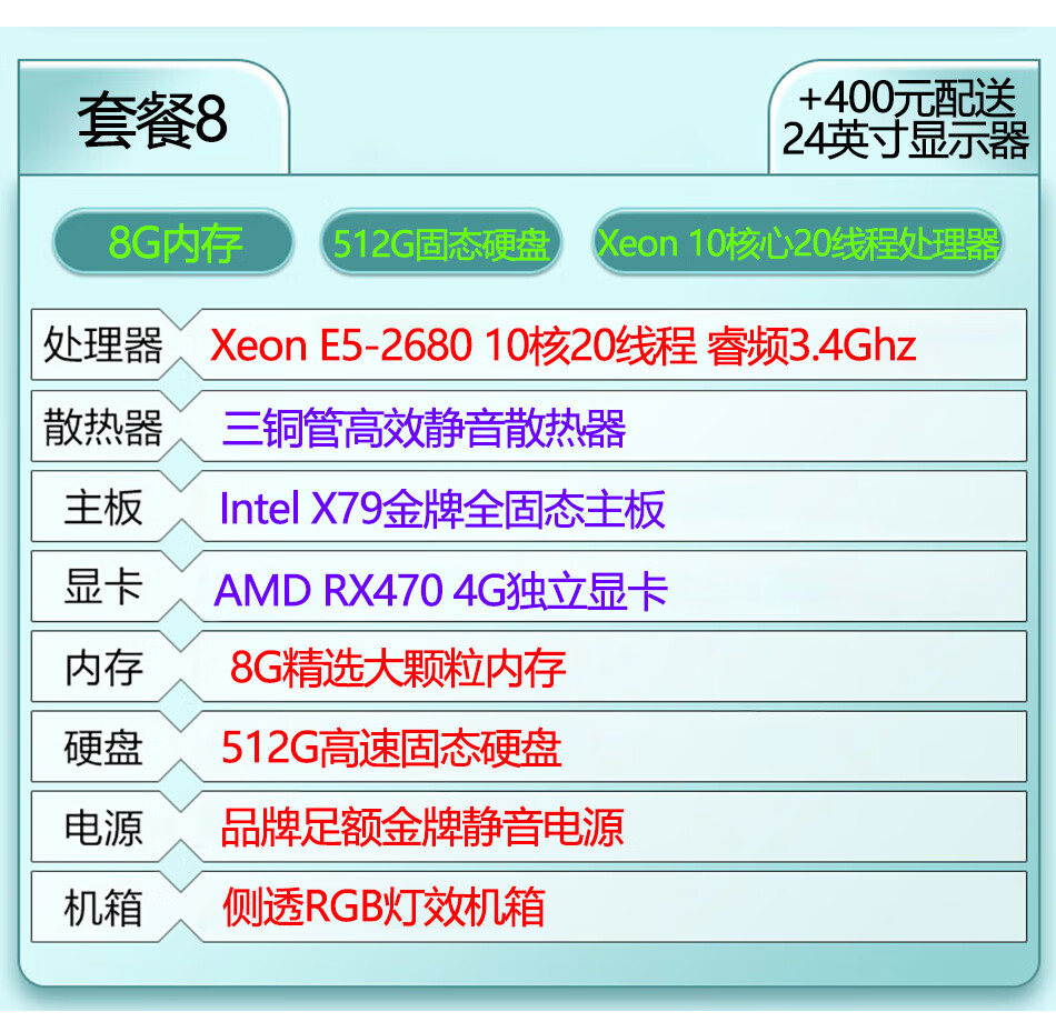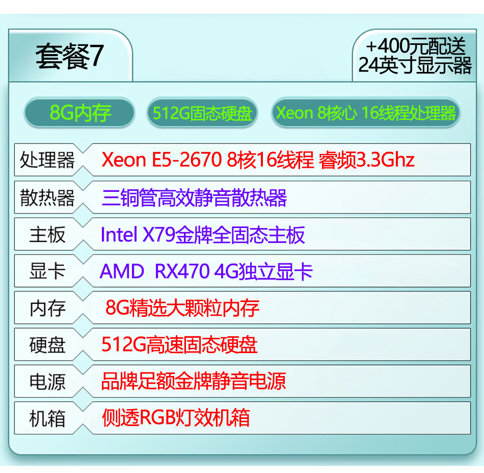 台式机电脑主机英特尔酷睿i7级i9级六核八核十核独显游戏吃鸡LOL黑神话悟空设计家用办公全新库存机 i7级/512g/RX470独显腾讯游戏:套餐七 单电脑主机