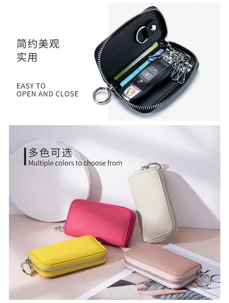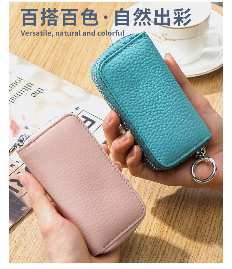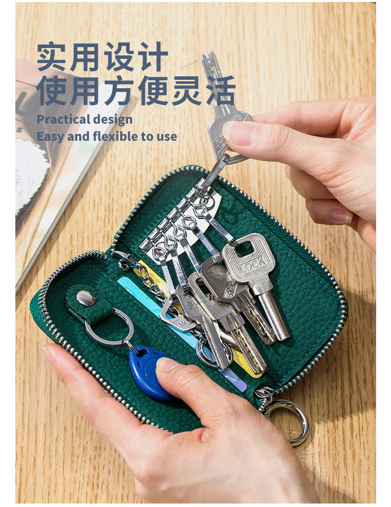KUQIDAISHU 2025 genuine leather Japanese and Korean key bag card bag key bag multi-functional home key car key bag unisex blue