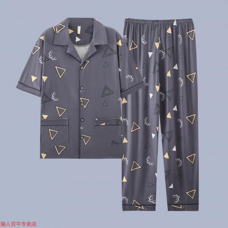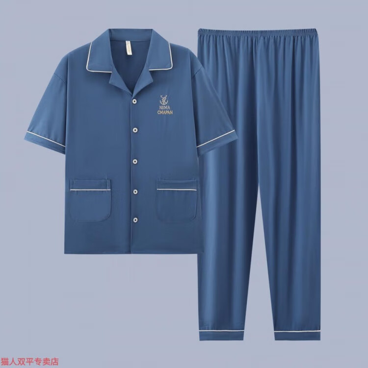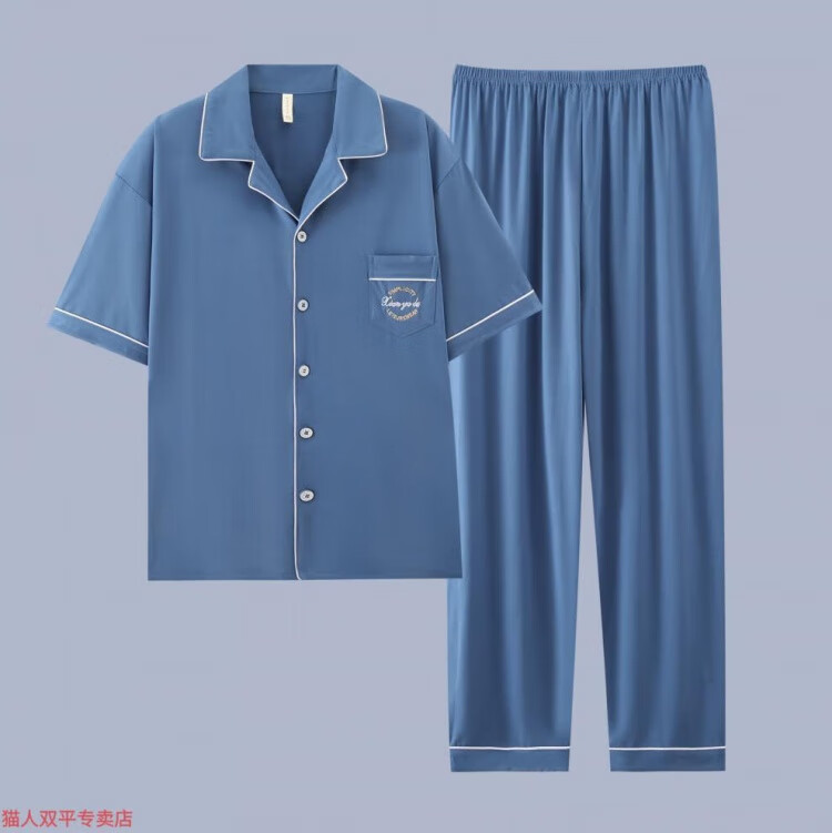 Catman's new men's pajamas short-sleeved Xinjiang cotton summer men's trousers teenagers can wear home clothes suit G3884 blue-short-sleeved trousers L recommended 100-120Jin Jin equals 0.5 kg