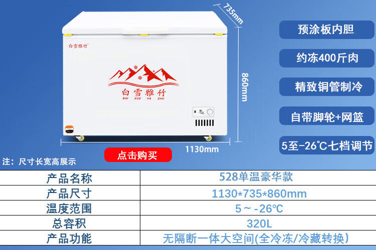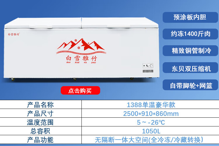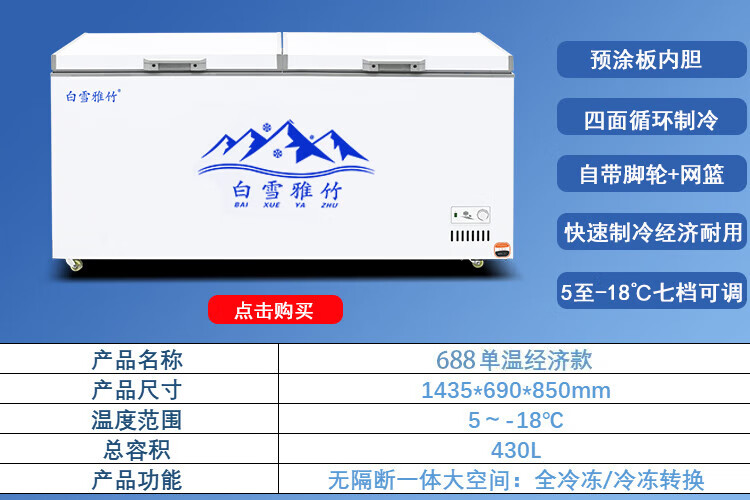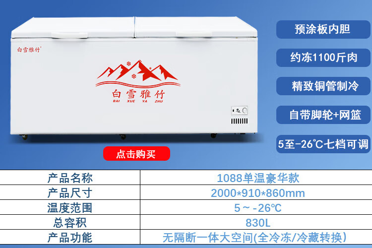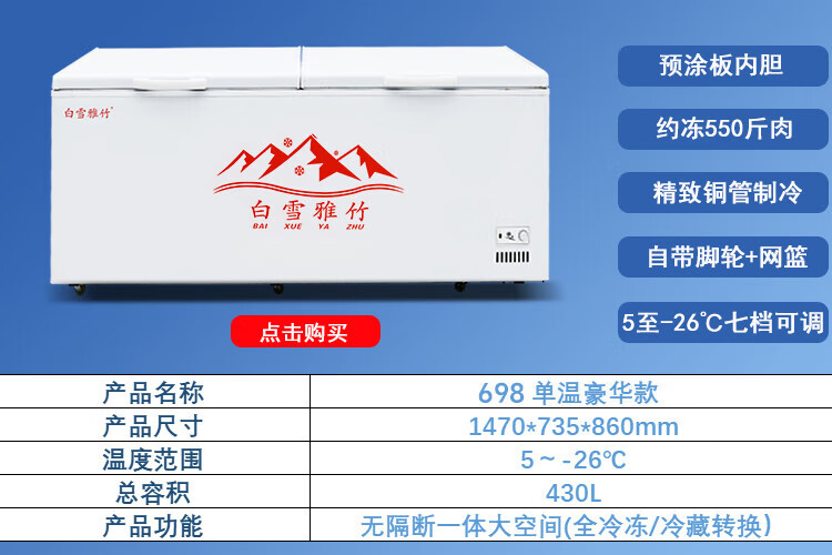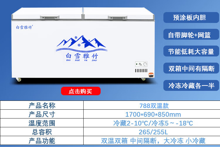 Baixue Yazhu Gefrierschrank, gewerblicher Haushalt, horizontaler Gefrierschrank, große Kapazität, gekühlter Gefrierschrank, Vitrine, kommerzieller Dual-Temperatur-Gefrierschrank mit großer Kapazität, kommerzieller großer Gefrierschrank 788, Einzeltemperatur, wirtschaftlich, 1700 x 690 x 850