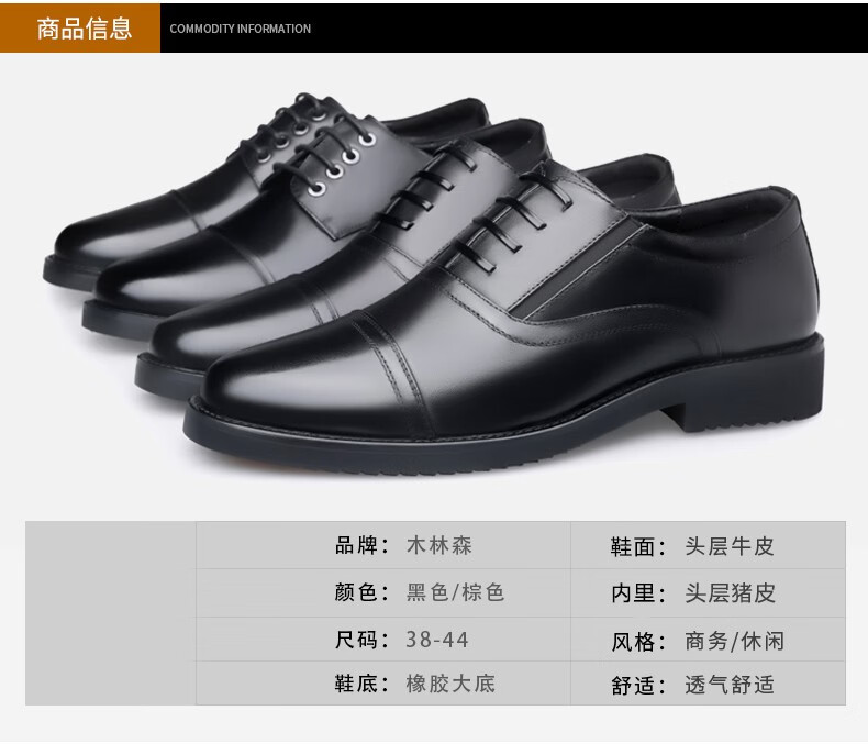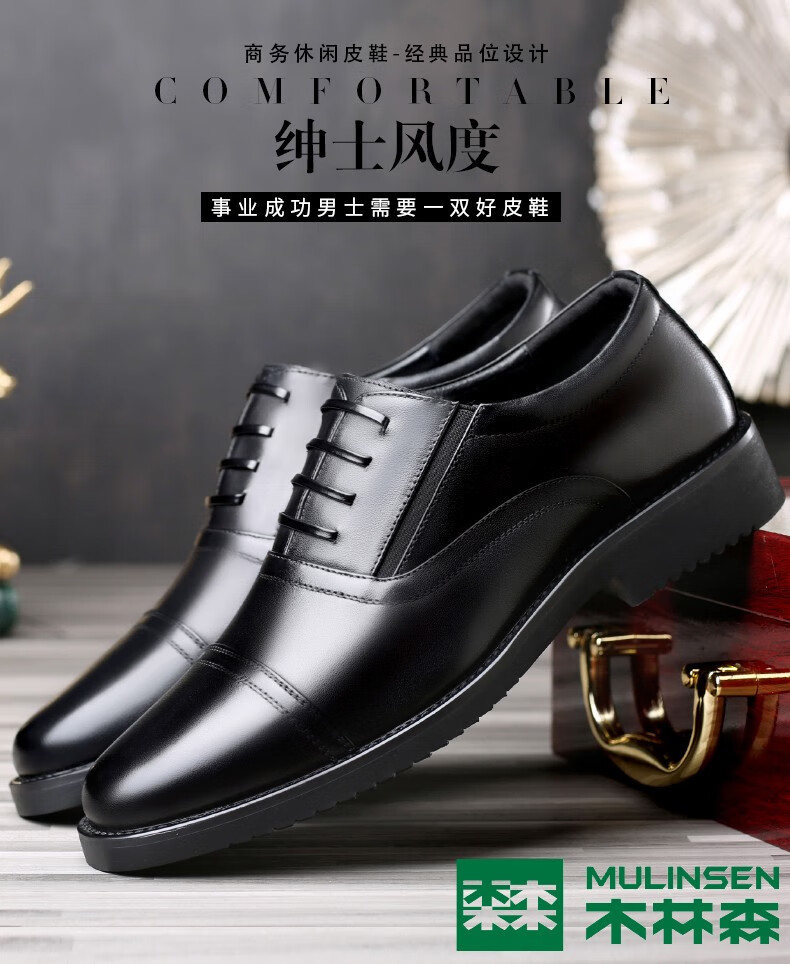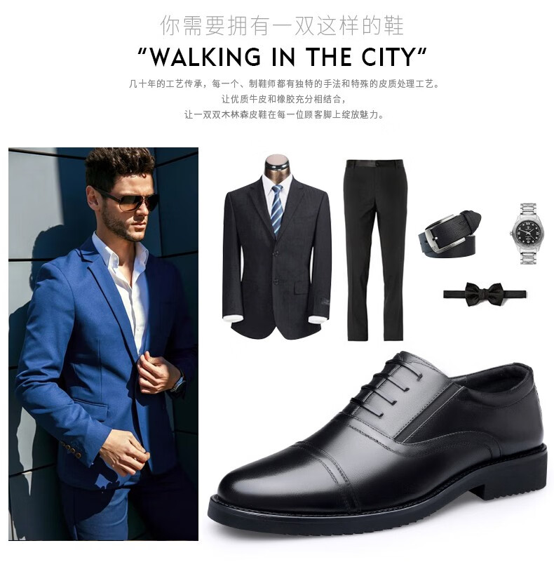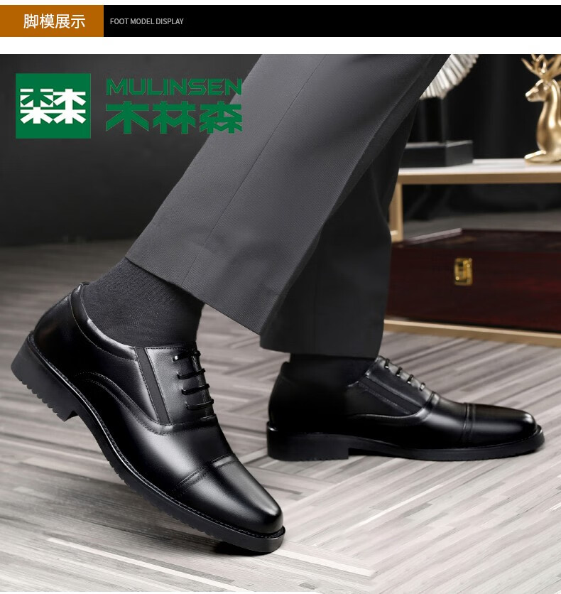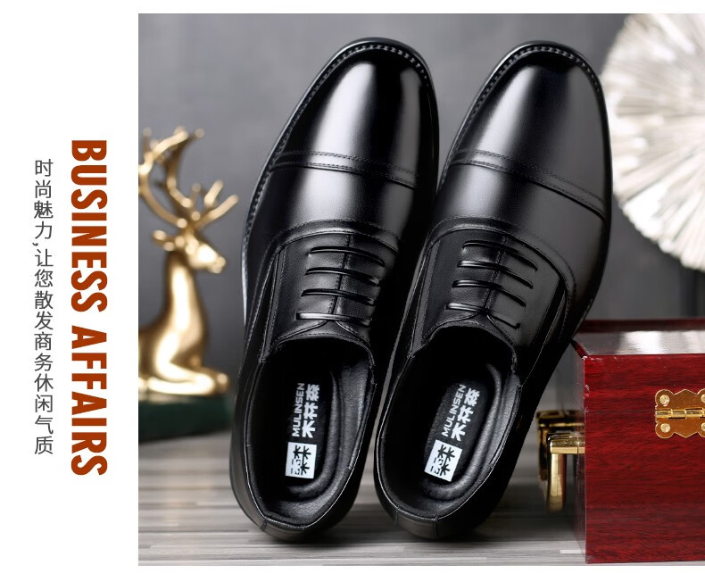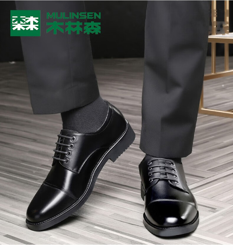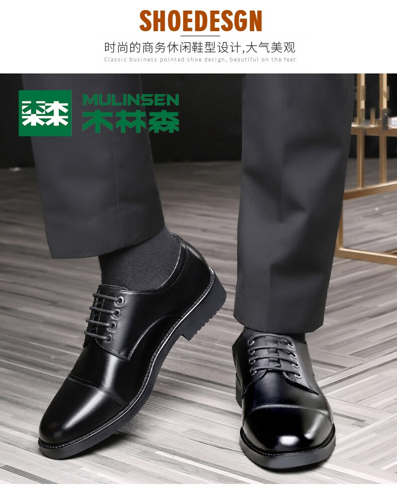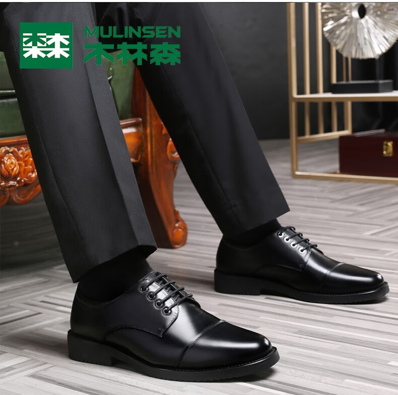 Mulinsen three-joint leather shoes men's genuine leather business formal men's shoes breathable cowhide leather shoes professional work suit shoes MLS9733 black (increased style within the lace) size 39 (standard leather shoe size)