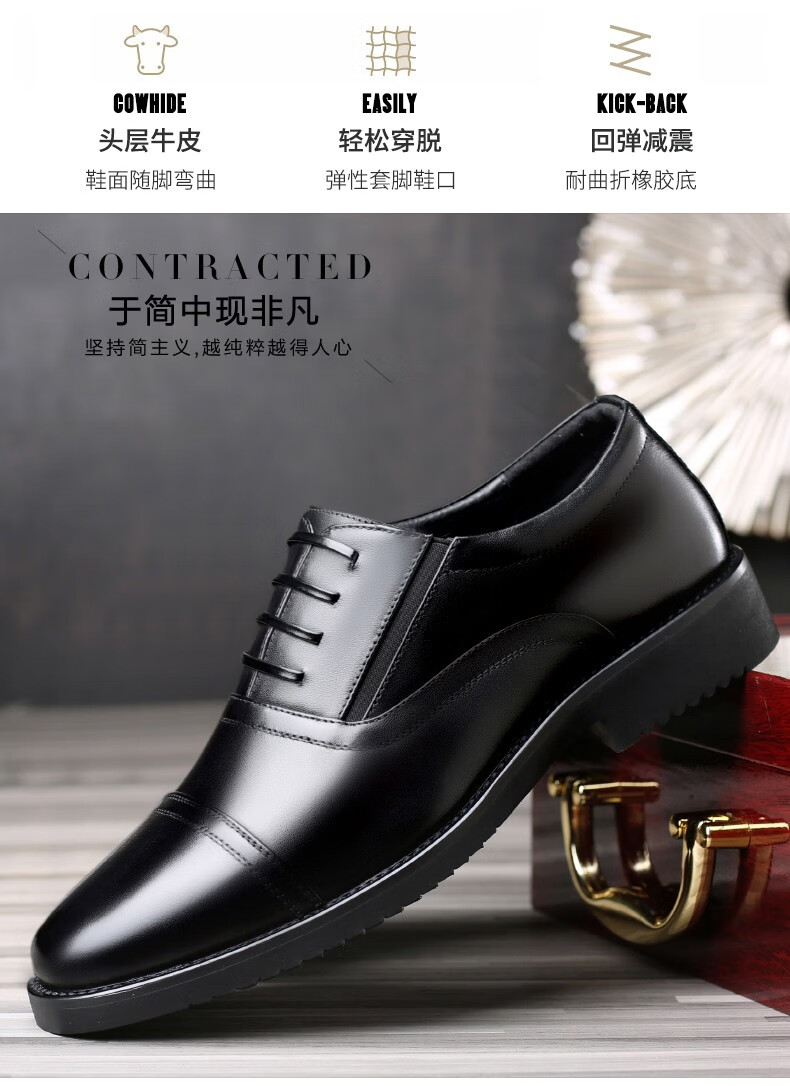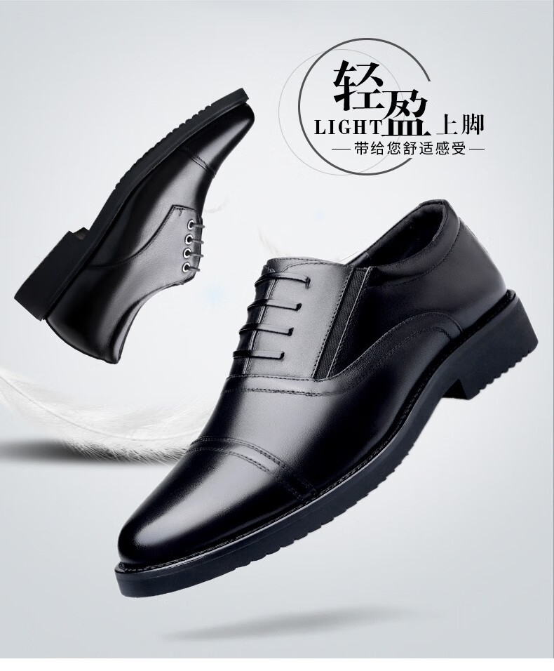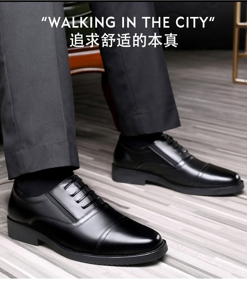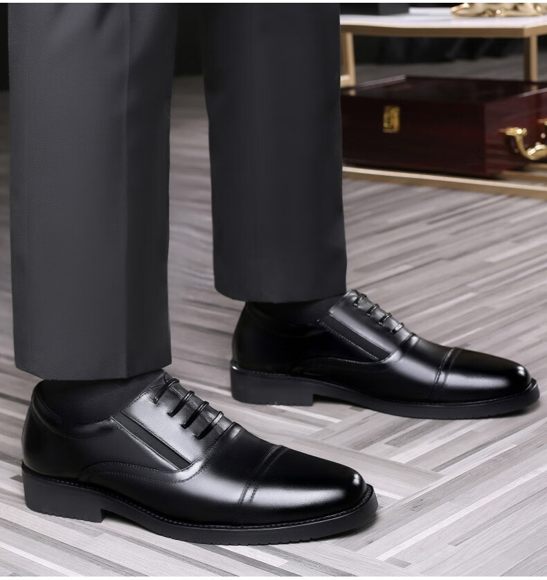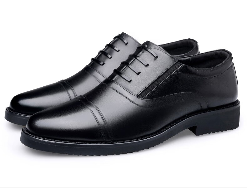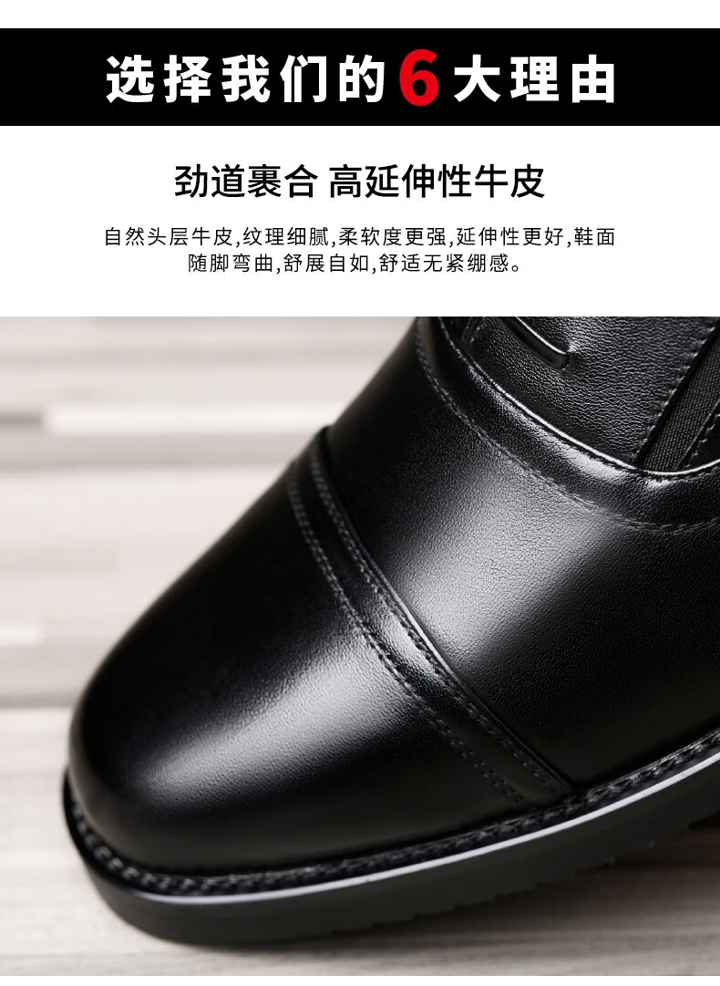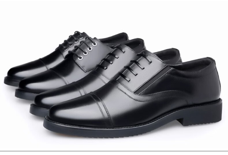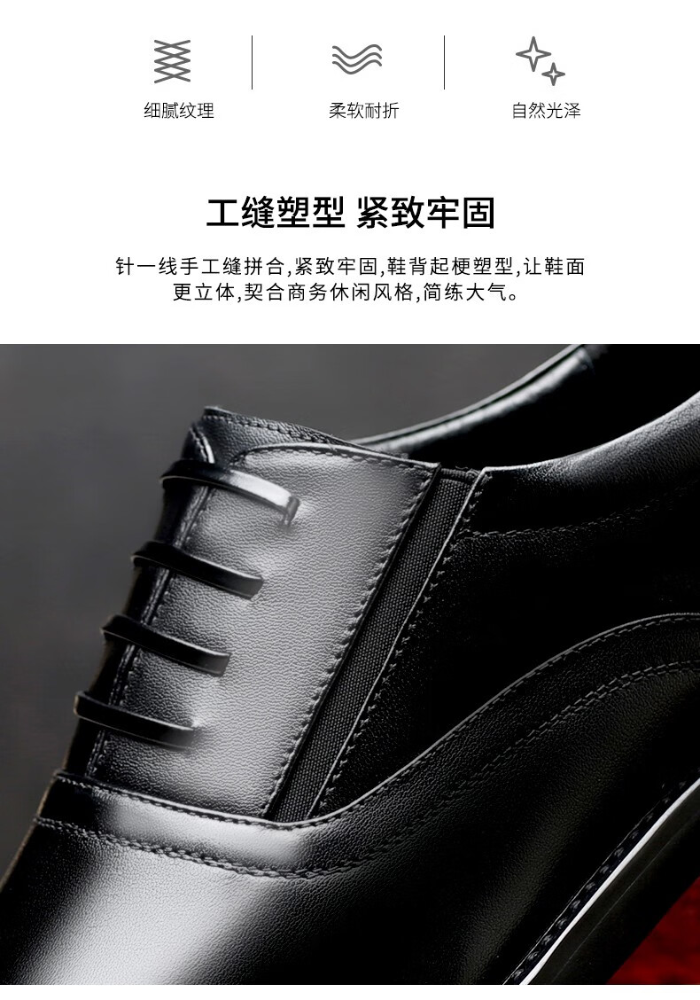 Mulinsen three-joint leather shoes men's genuine leather business formal men's shoes breathable cowhide leather shoes professional work suit shoes MLS9733 black (increased style within the lace) size 39 (standard leather shoe size)