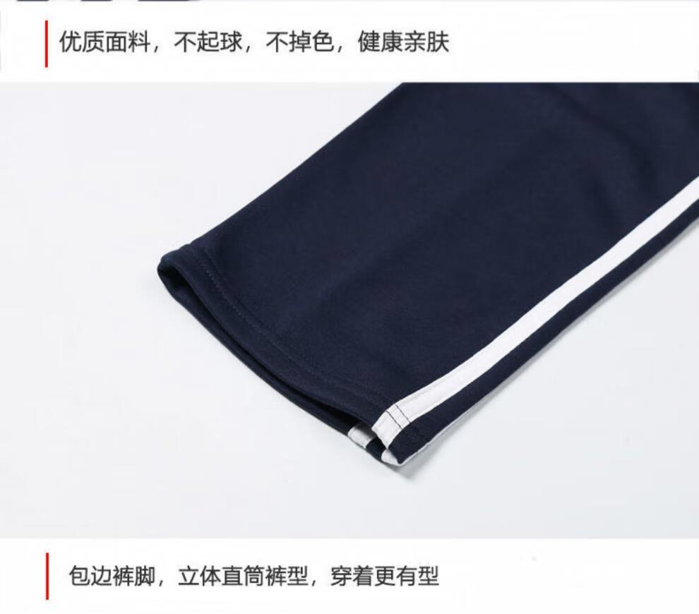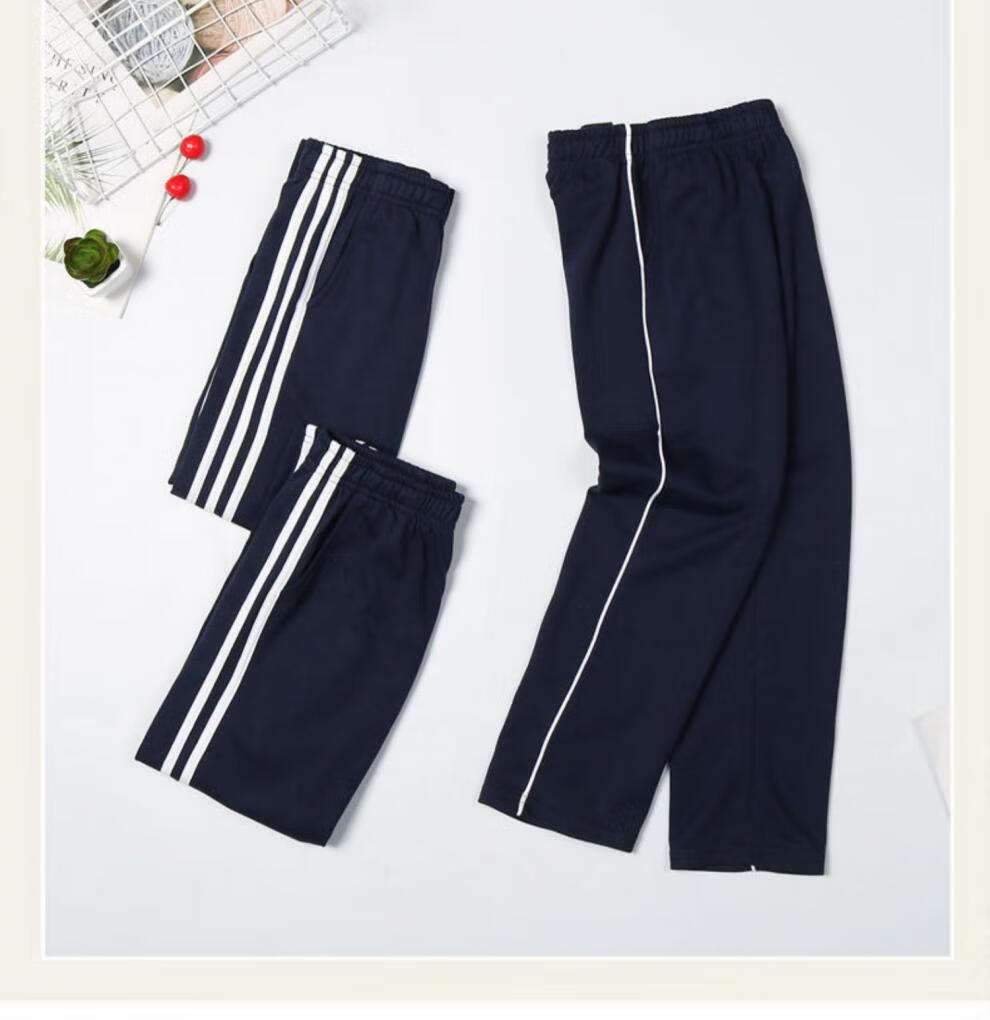 Xin Yueqing Fat Boy Pantalon d'uniforme scolaire bleu marine Printemps et automne Deux bandes Bleu foncé Version ample et grasse Pantalon de sport Une et trois bandes Pantalon de survêtement Bleu foncé 2 bandes et fermeture grasse Printemps et automne 160 cm