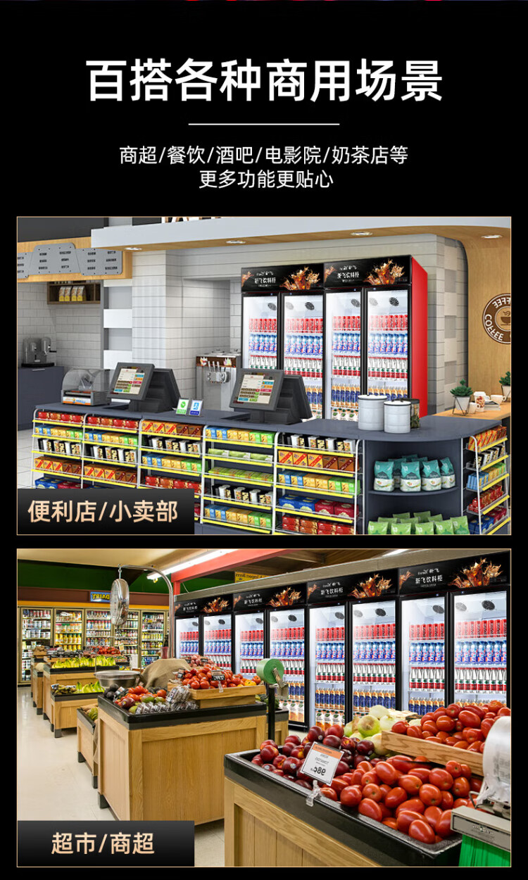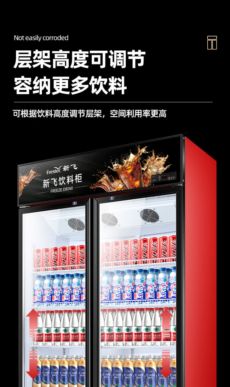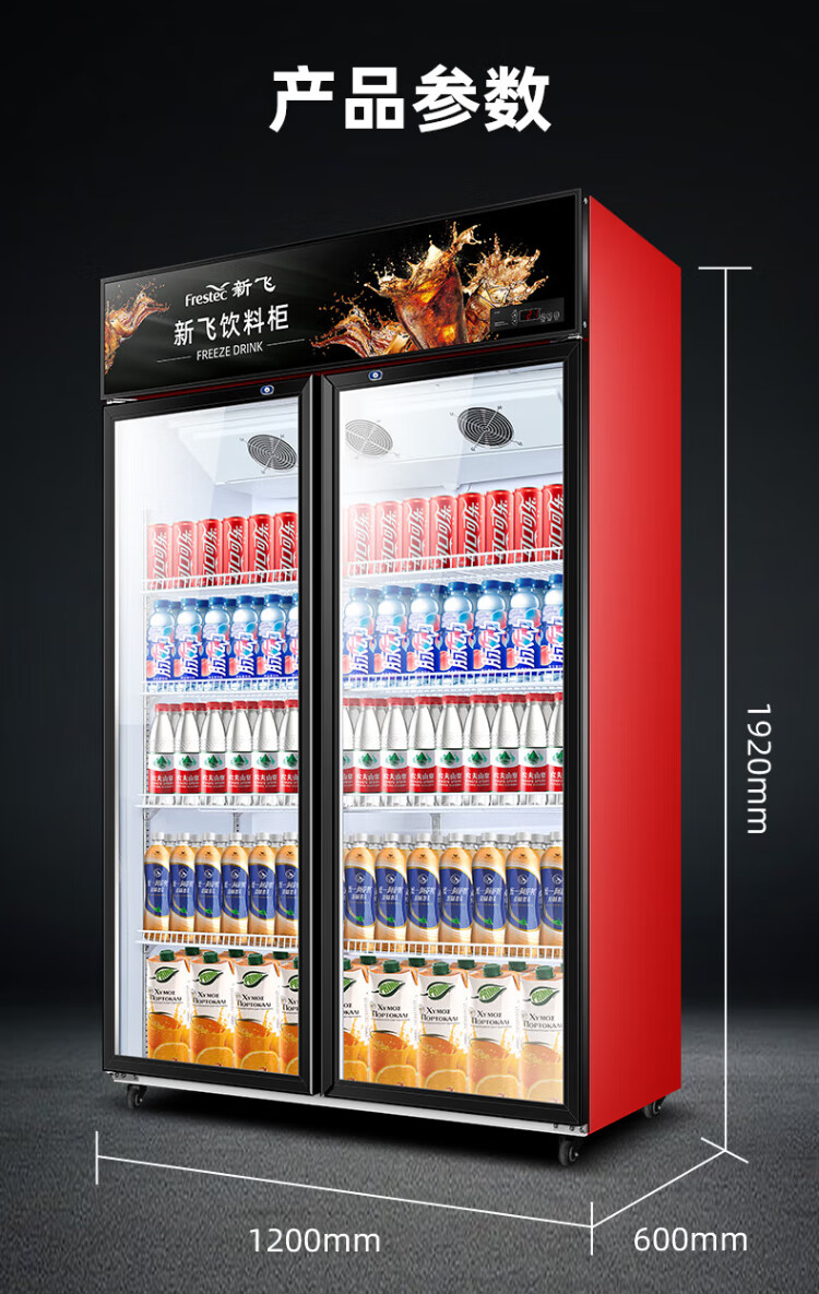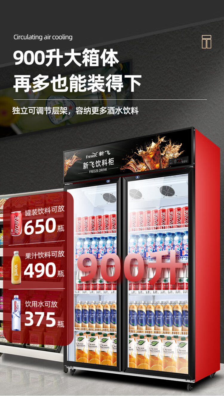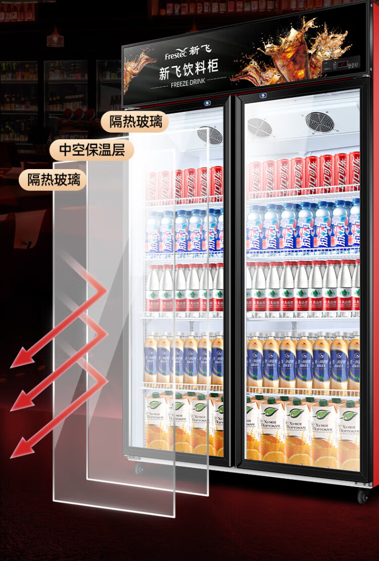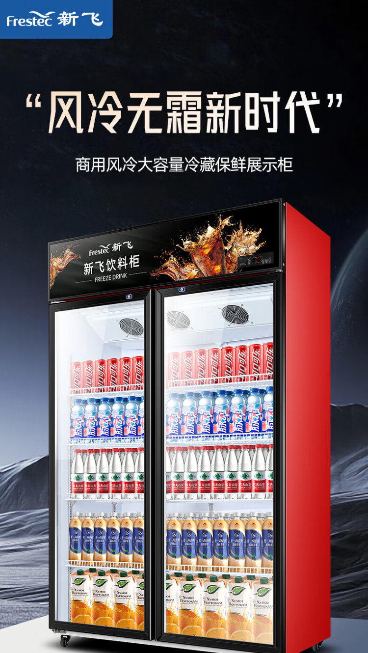 新飞(frestec)展示柜冷藏保鲜柜酒水饮料冰柜双开门冷藏柜酒店冷藏保鲜柜超市直冷玻璃门风冷无霜冰箱立式冷柜 双门蓝白688L【4D风冷无霜】【数显控温】
