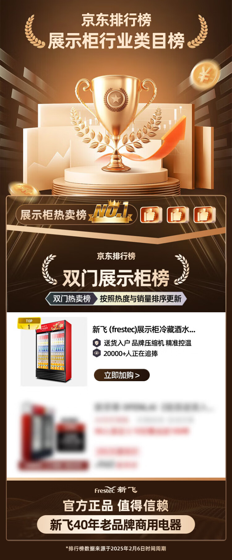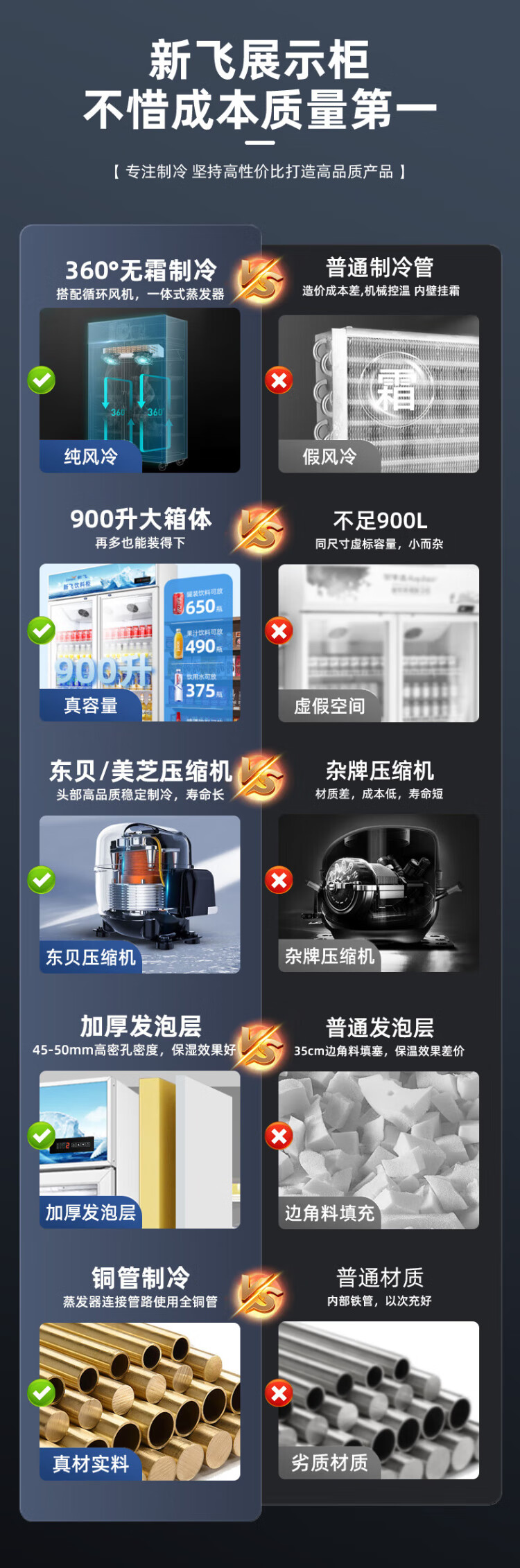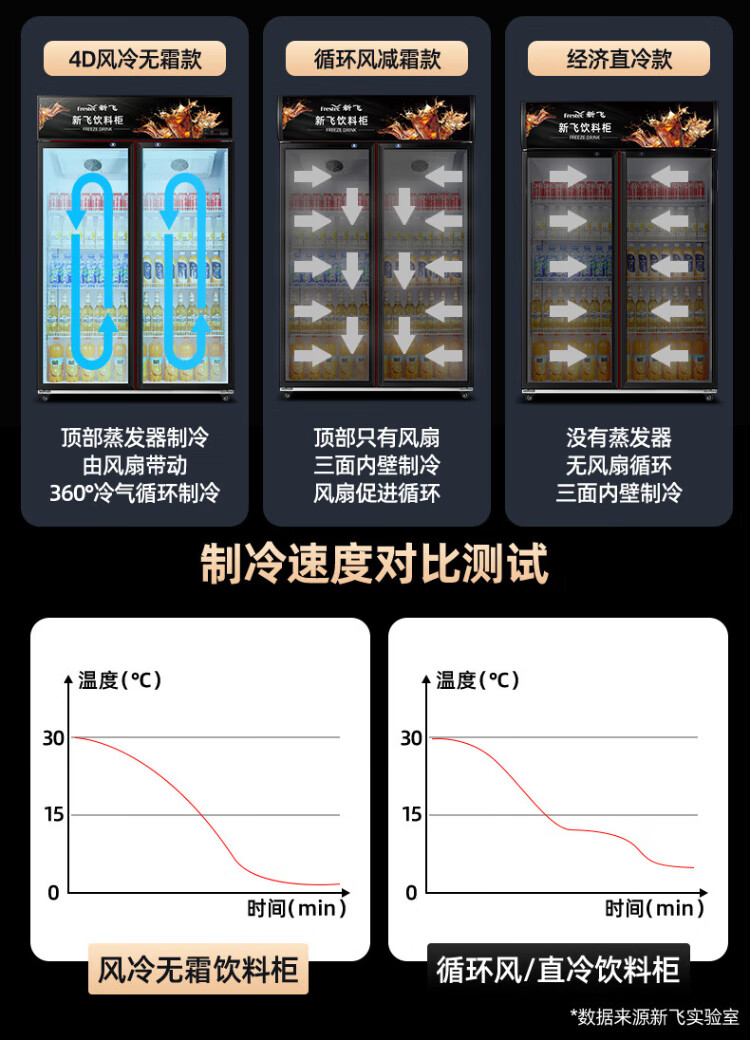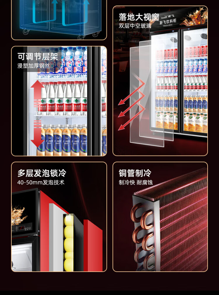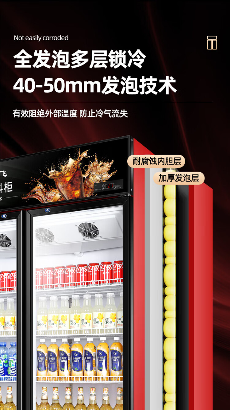 新飞(frestec)展示柜冷藏保鲜柜酒水饮料冰柜双开门冷藏柜酒店冷藏保鲜柜超市直冷玻璃门风冷无霜冰箱立式冷柜 双门蓝白688L【4D风冷无霜】【数显控温】