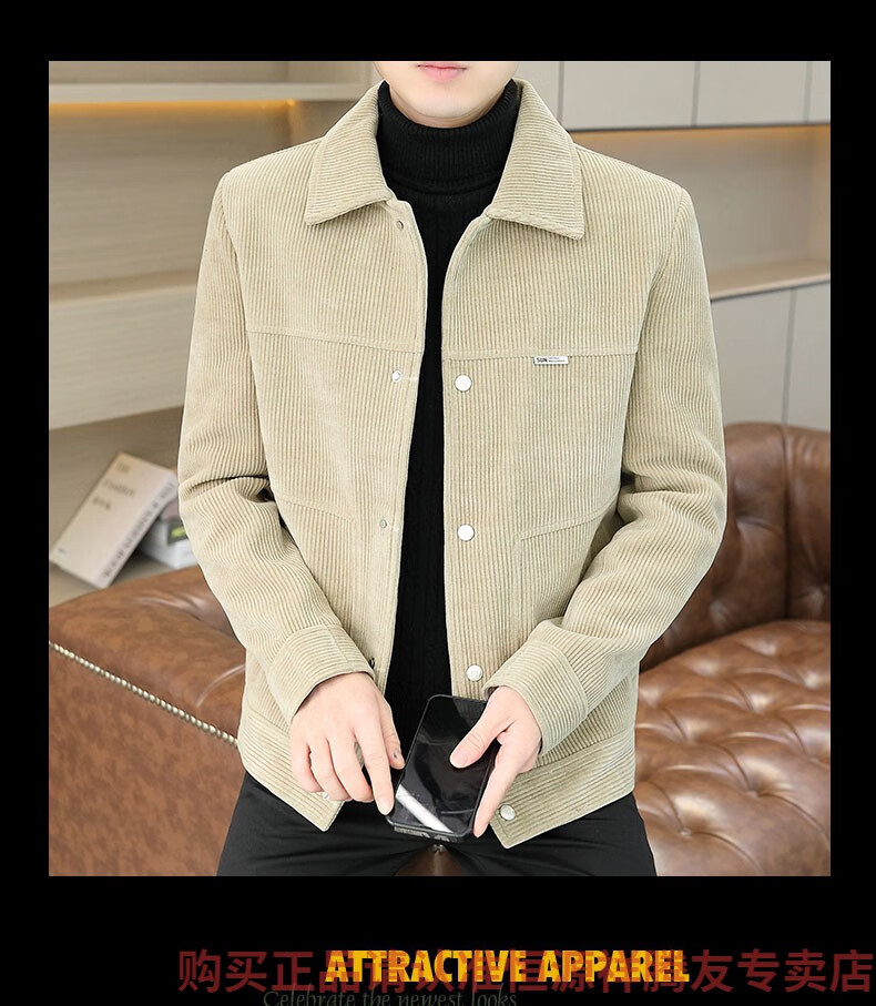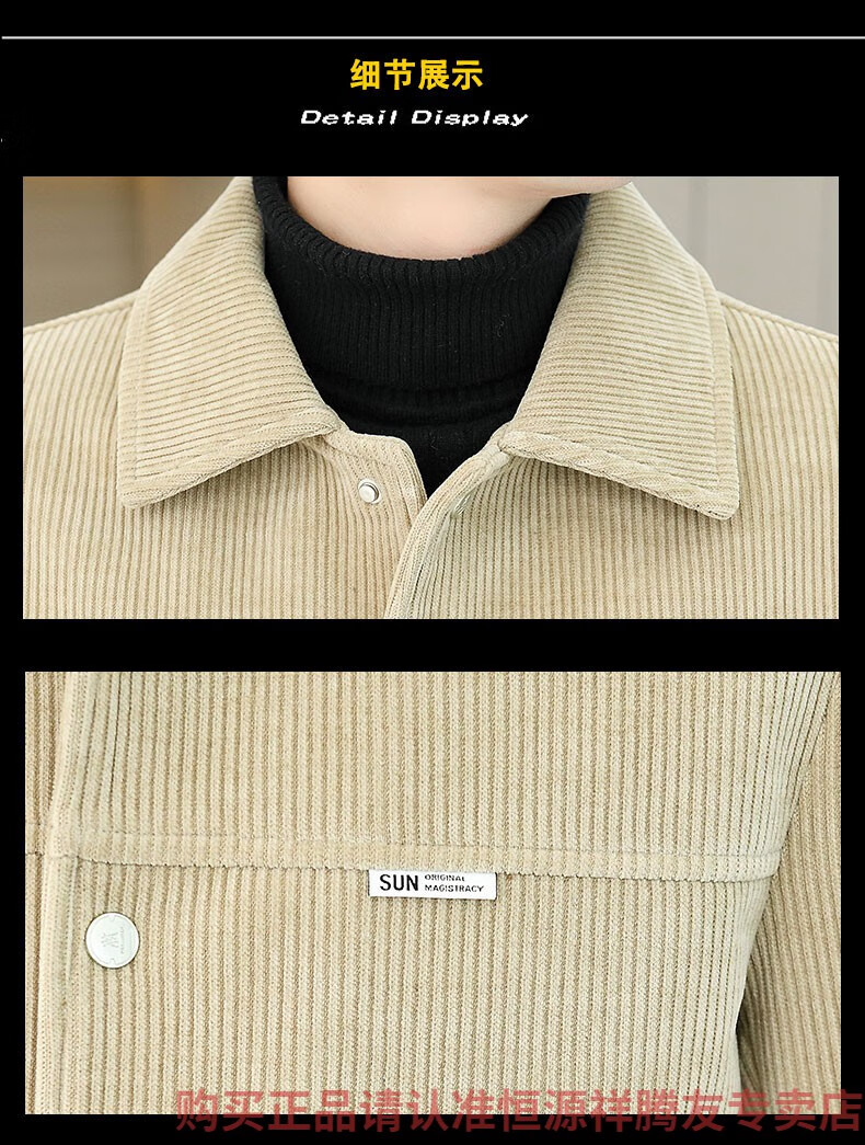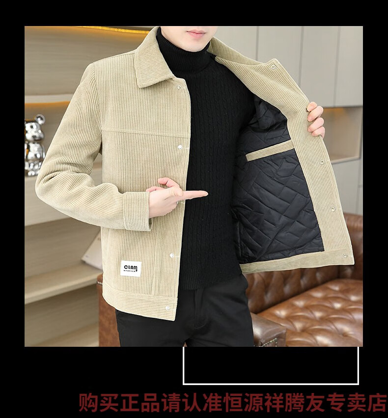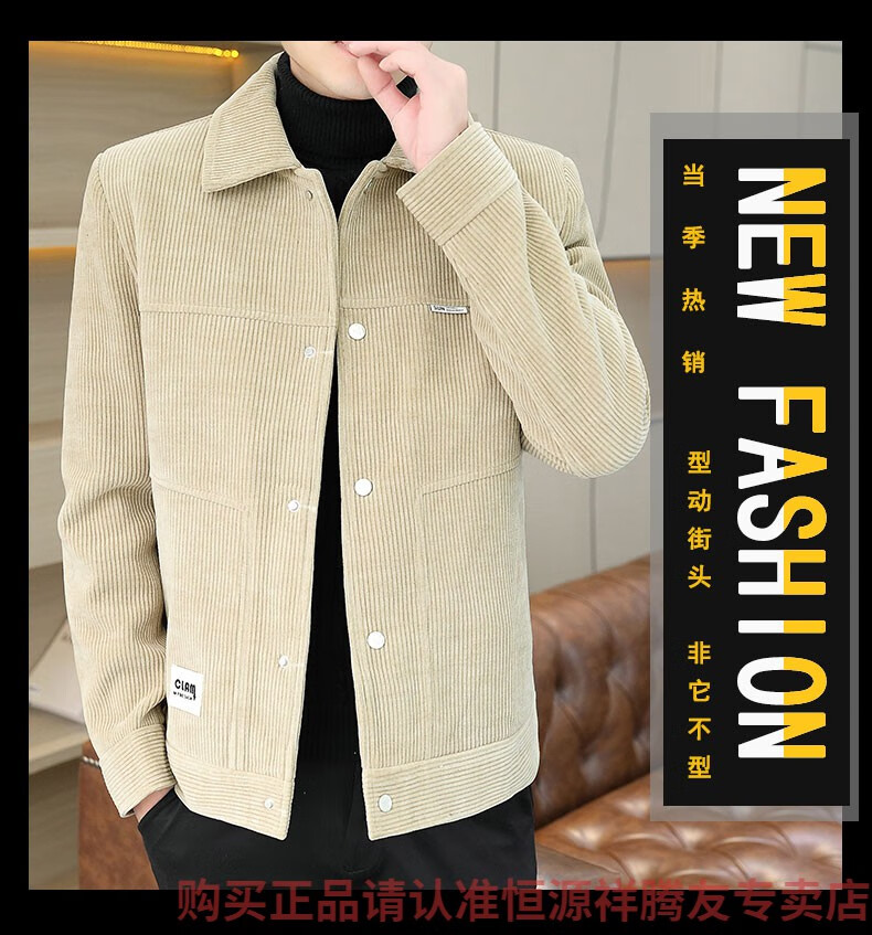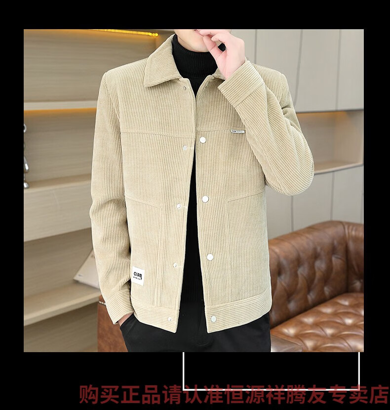 Hengyuanxiang Men's Spring, Autumn and Winter Jacket Cotton Thick Corduroy Jacket 2025 New Two Cotton Jacket Clothes Men's Pi Shuai M 9918 Apricot Color (Cotton Thickened)