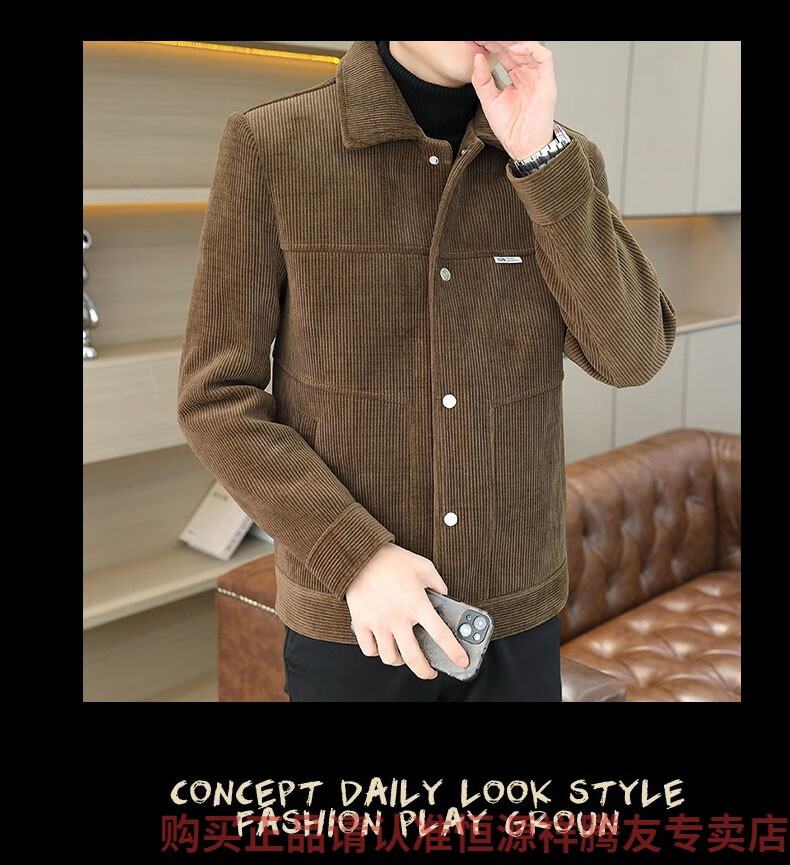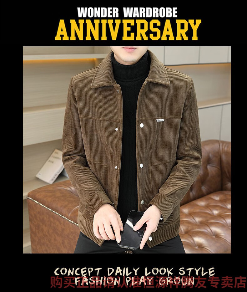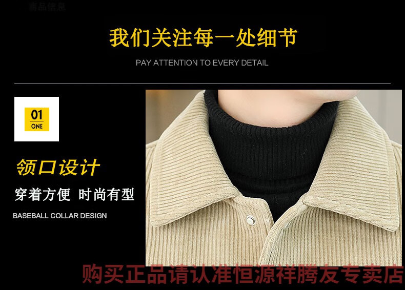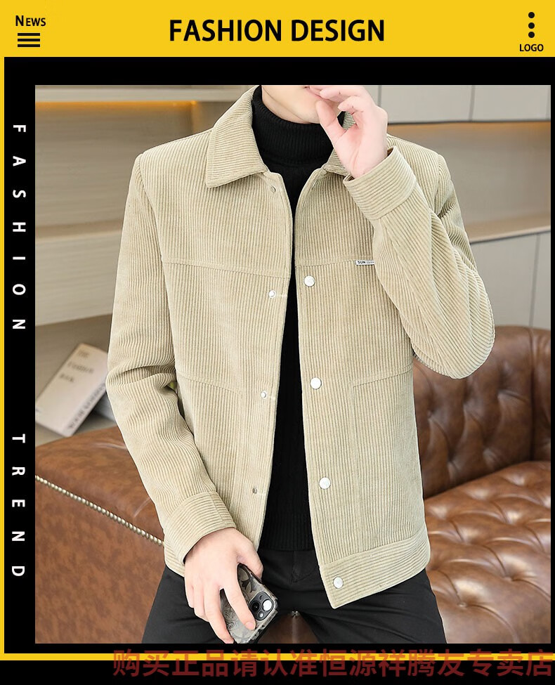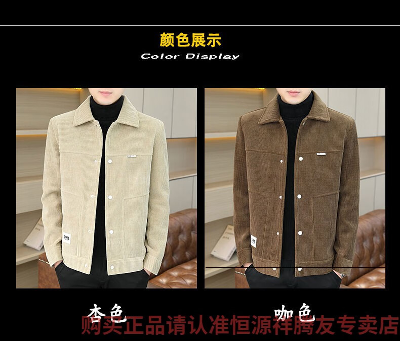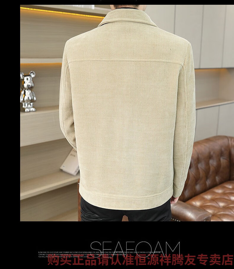 Hengyuanxiang Men's Spring, Autumn and Winter Jacket Cotton Thick Corduroy Jacket 2025 New Two Cotton Jacket Clothes Men's Pi Shuai M 9918 Apricot Color (Cotton Thickened)