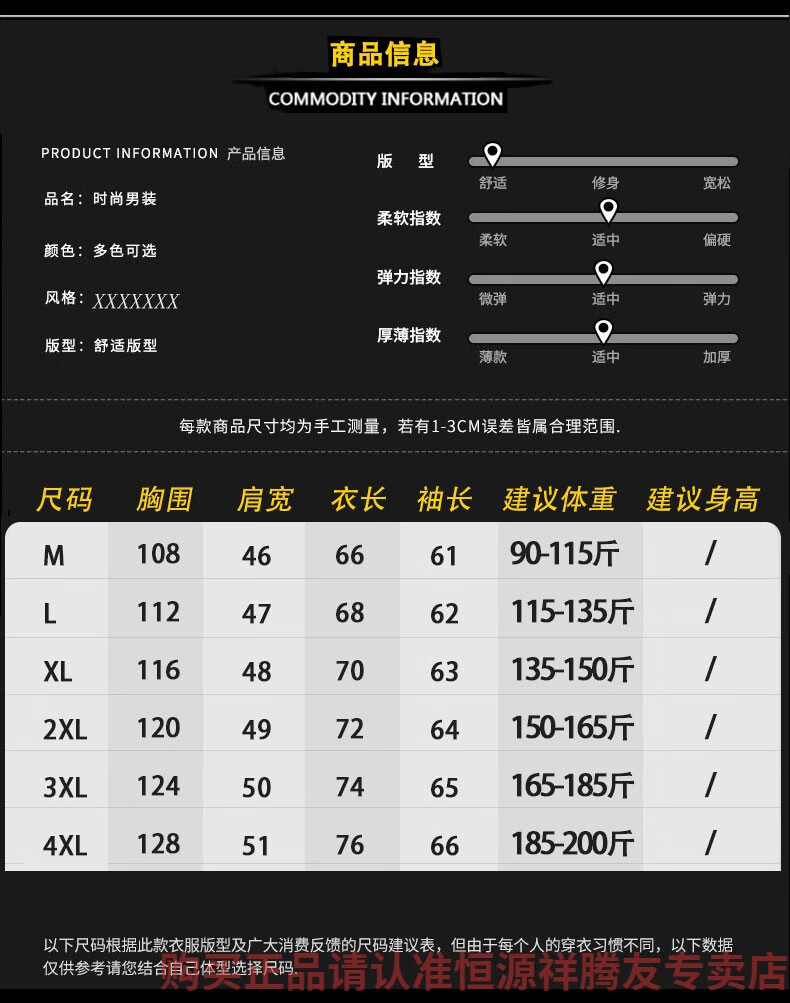 China (cm) 165 / 88-90 170 / 96-98 175 / 108-110 180 / 118-122 185 / 126-130
