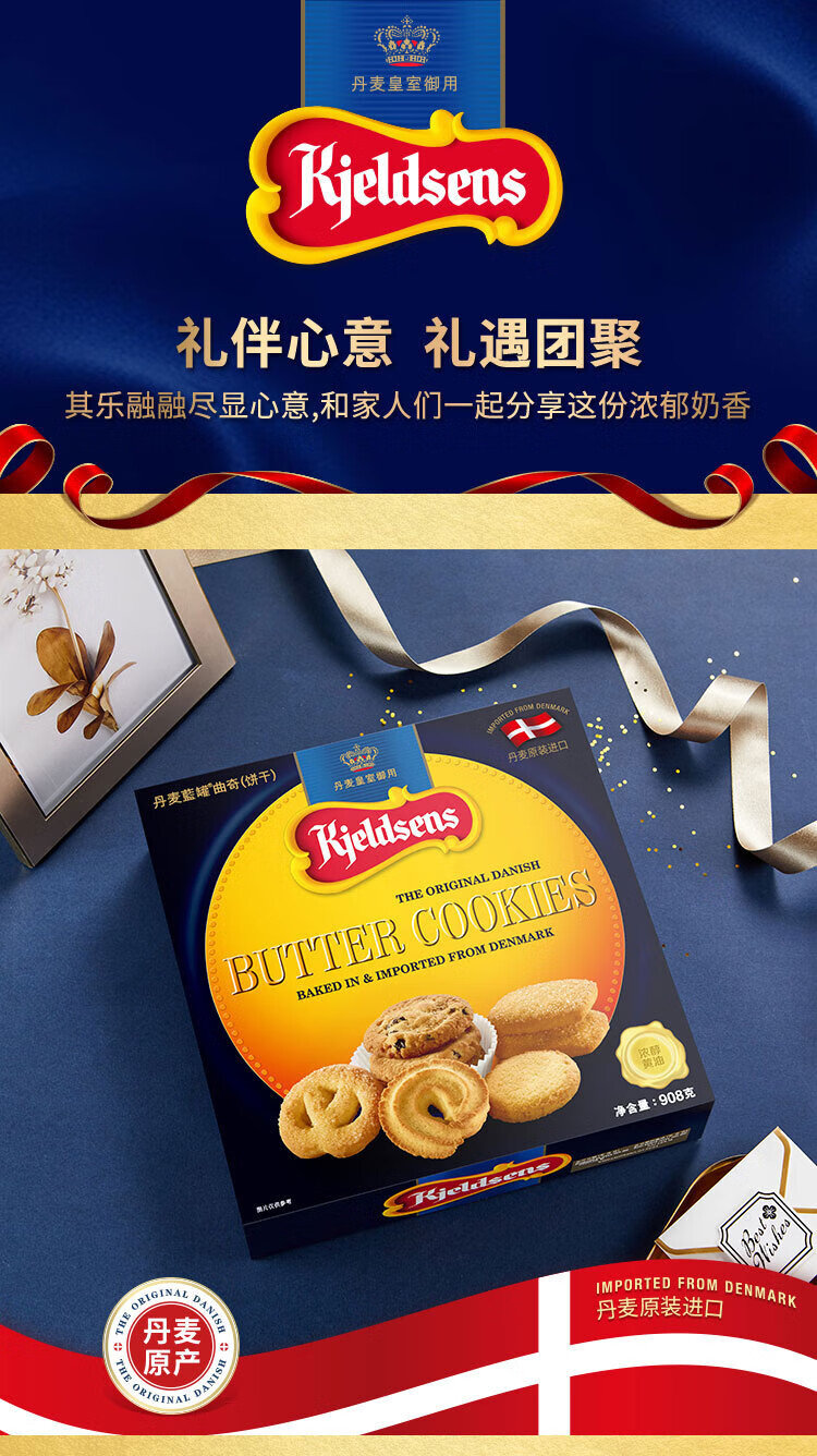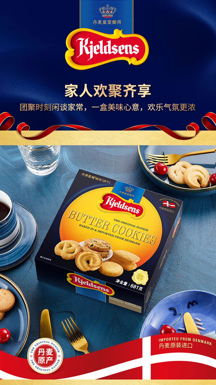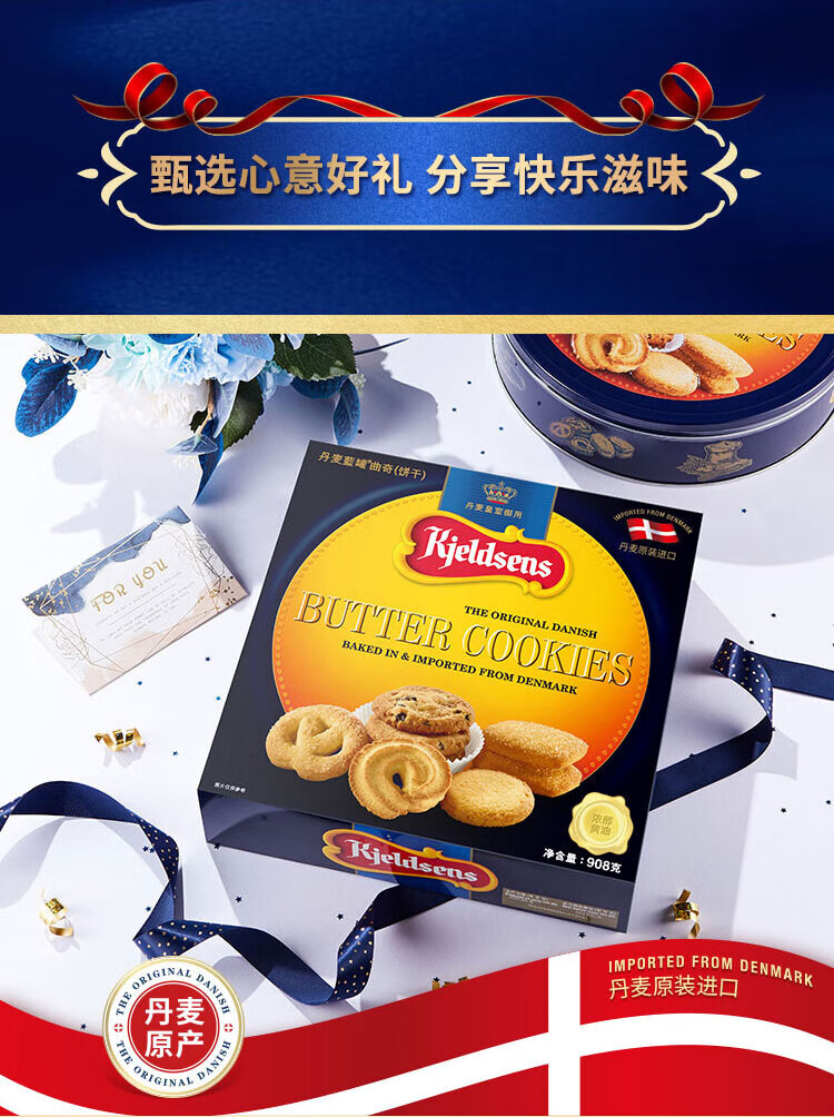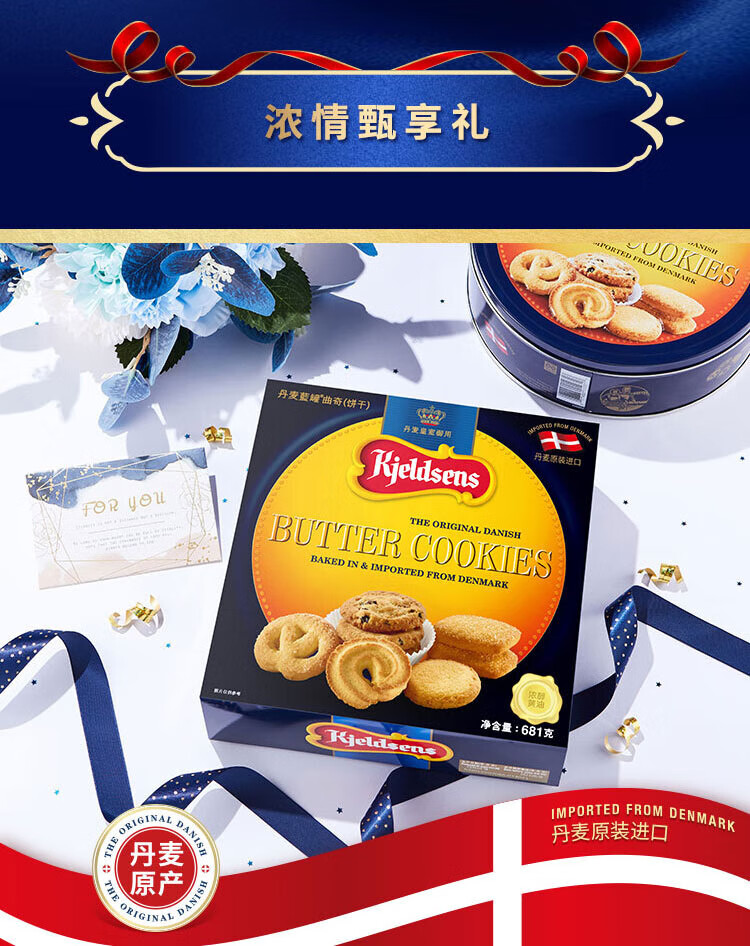 Dänische blaue Dose (Kjeldsens) importierte Butterkekse, Snacks, Nachmittagstee-Snacks, Gruppenkauf-Geschenkbox, Geschenkbox 681 g (Geschenktüte)