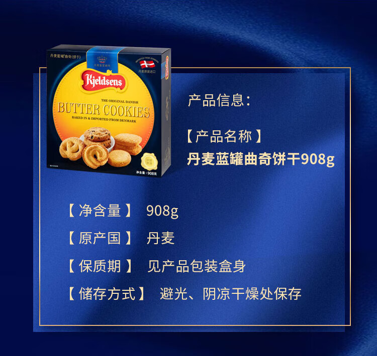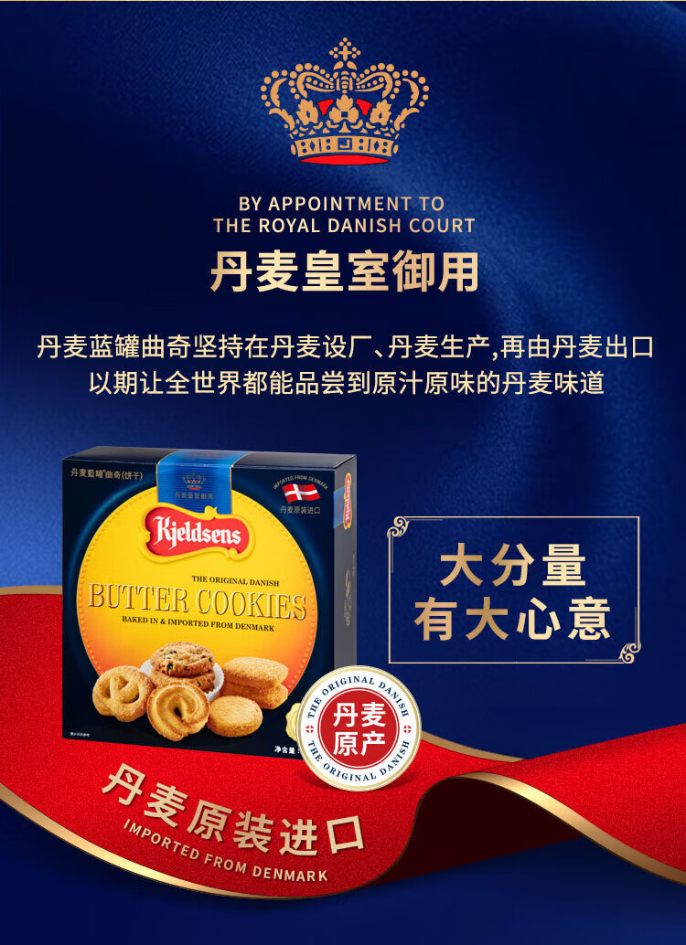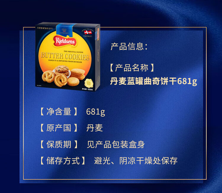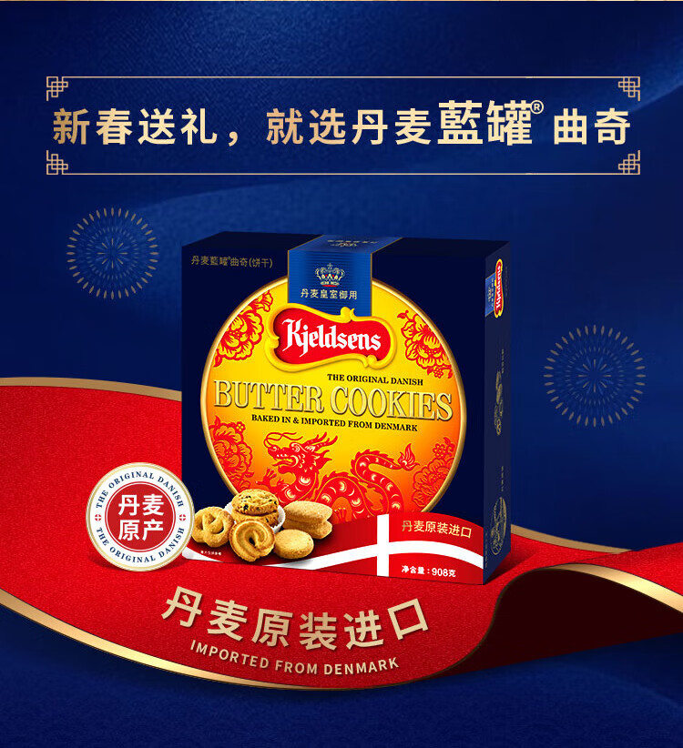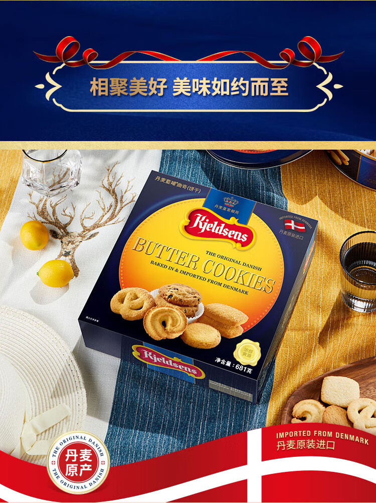 Dänische blaue Dose (Kjeldsens) importierte Butterkekse, Snacks, Nachmittagstee-Snacks, Gruppenkauf-Geschenkbox, Geschenkbox 681 g (Geschenktüte)