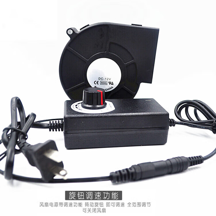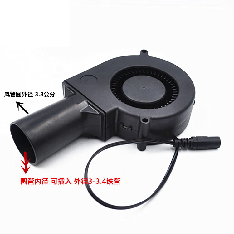 何佳功9733鼓风机大风量涡轮圆出风口 柴火灶烧烤炉 家用小型灶台风机 铁壳通风机+圆形风管+220V调速器