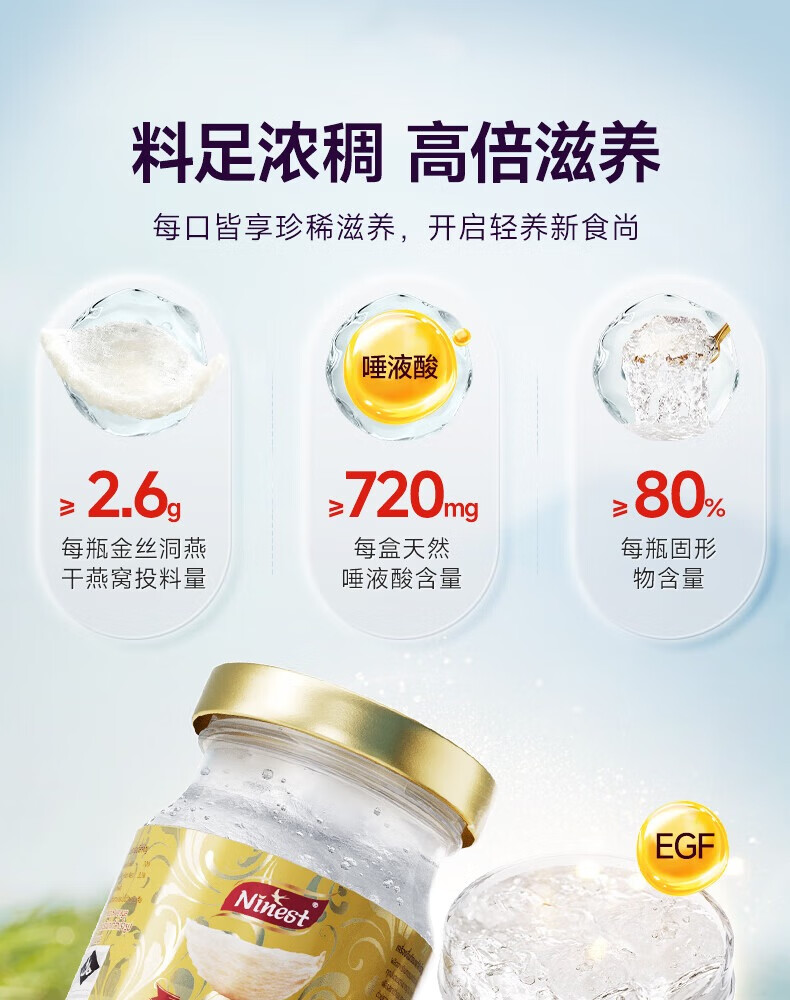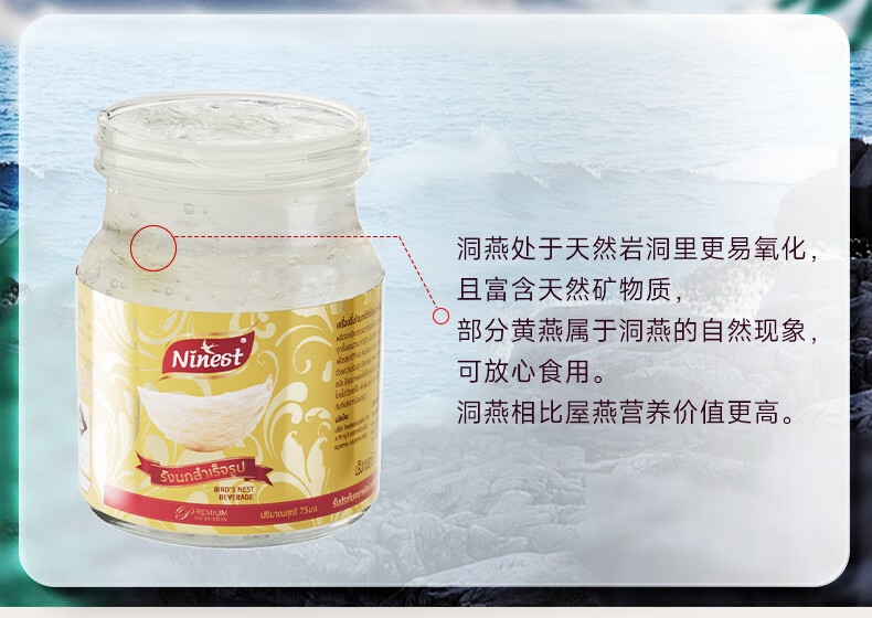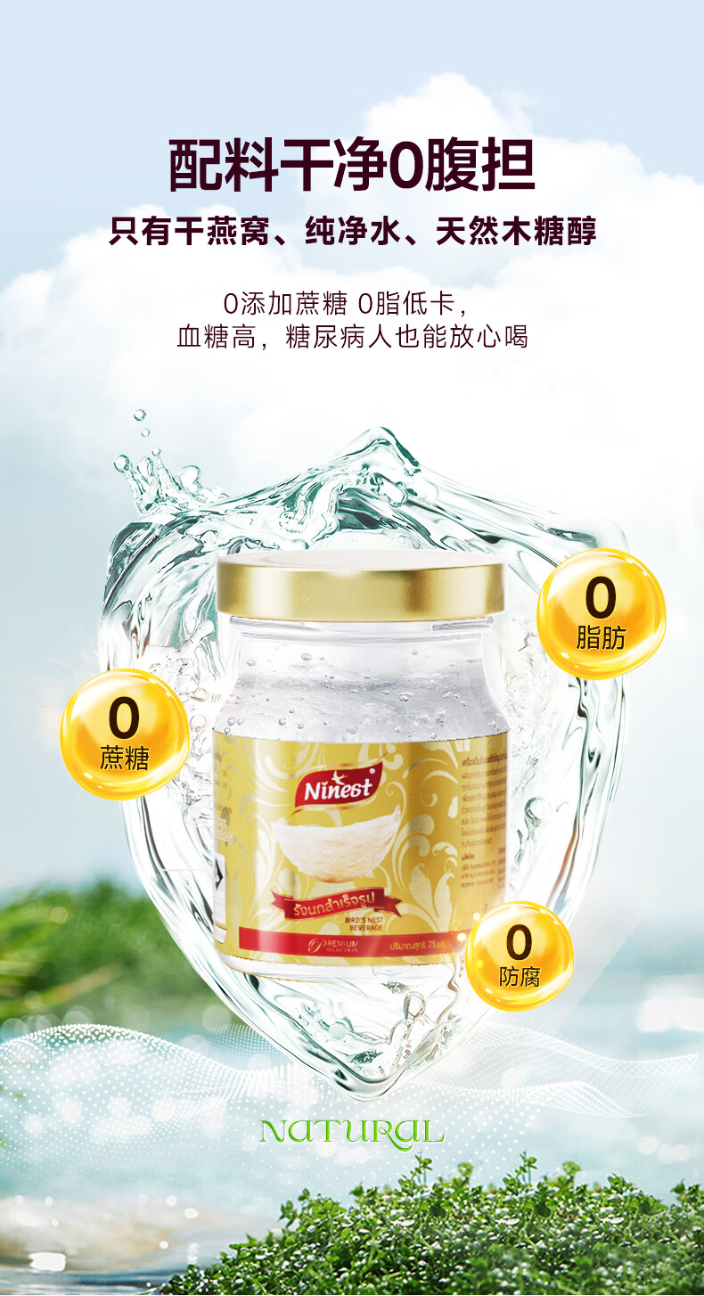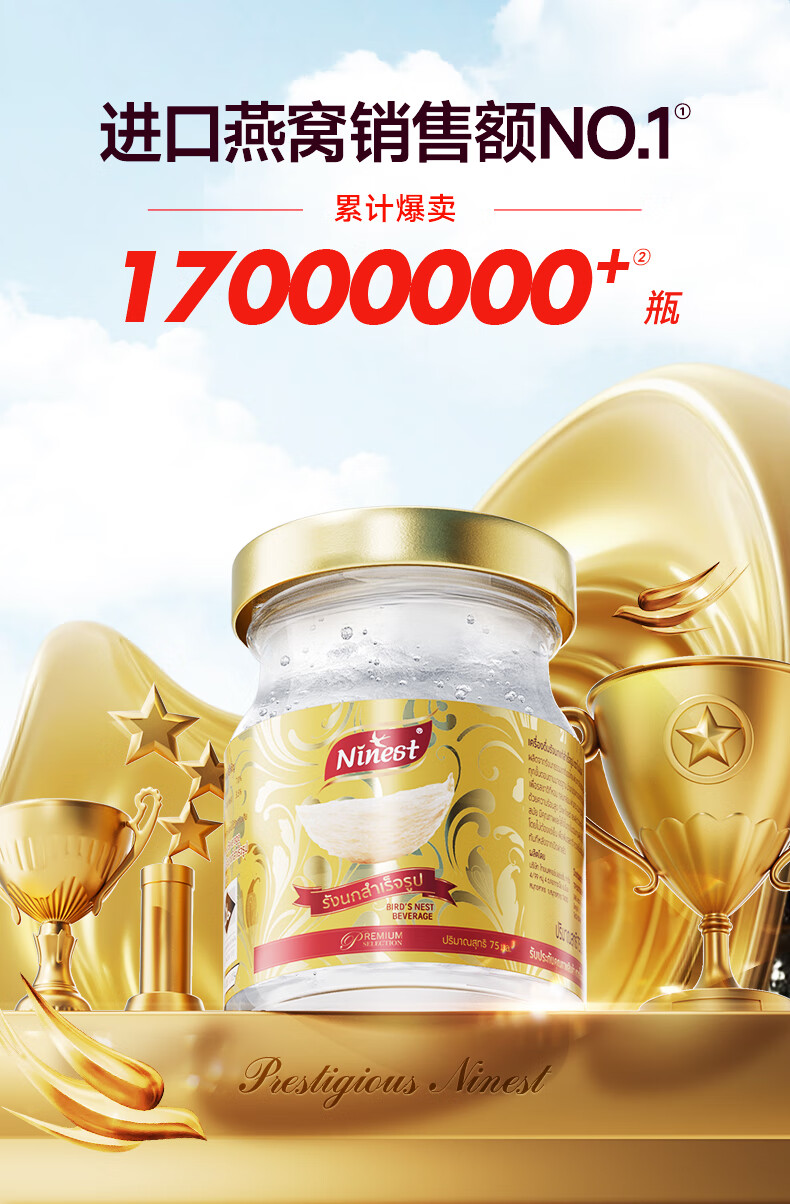 Ninest Thailand imported fresh stewed ready-to-eat bird's nest 30 bottles 75ml 3.5% for pregnant women and elders nutritional supplements postpartum and postoperative 75ml*30 bottles rock sugar style 5 boxes - nourishing for the whole month
