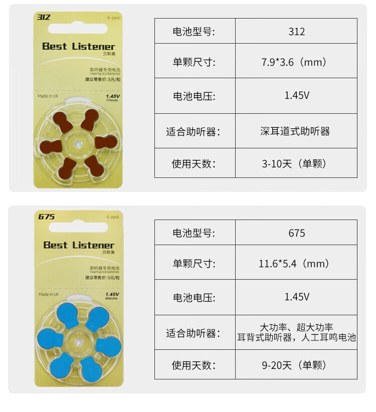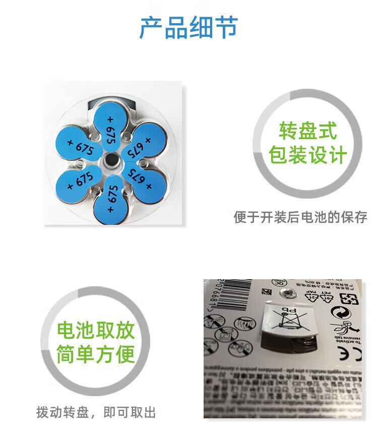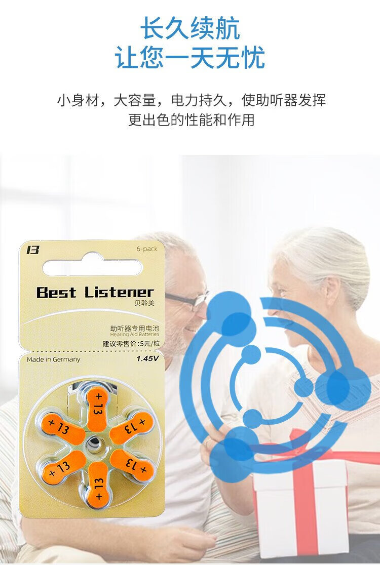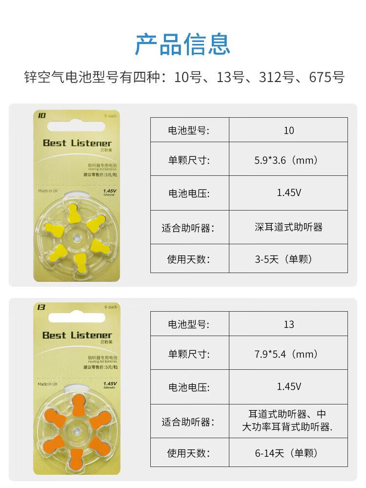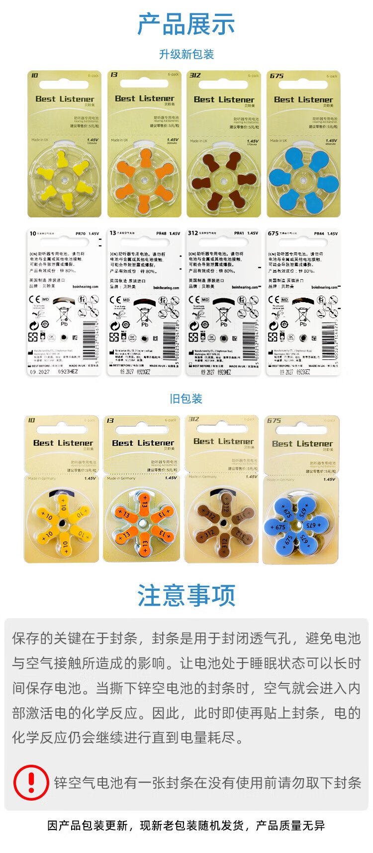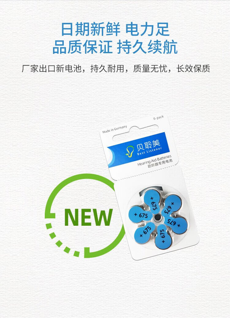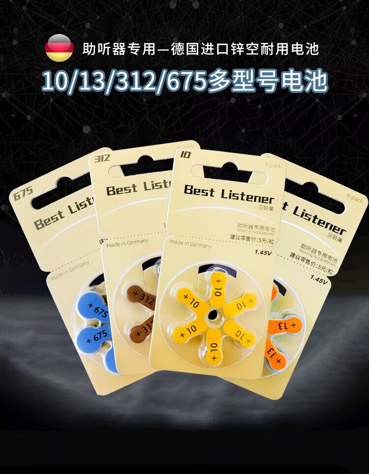 贝聆美贝聆美原装进口助听器电池专用电池A10/13/312/675号 13号一板(6粒)