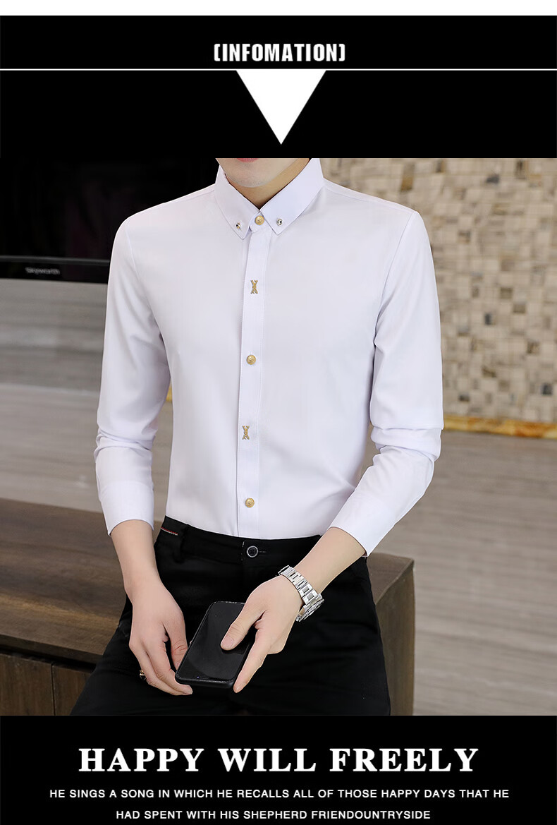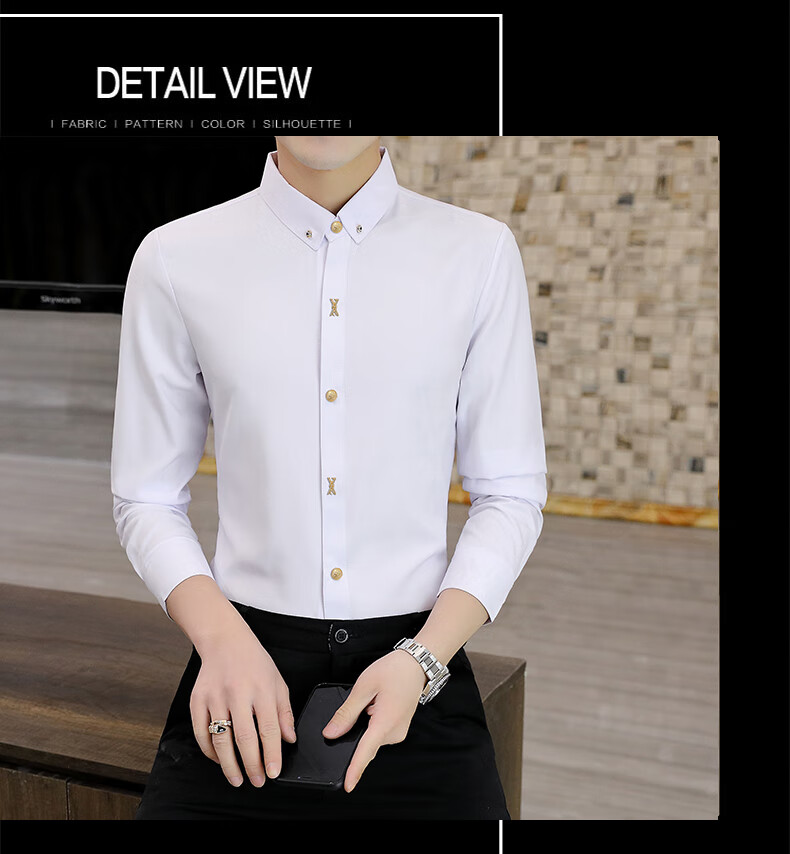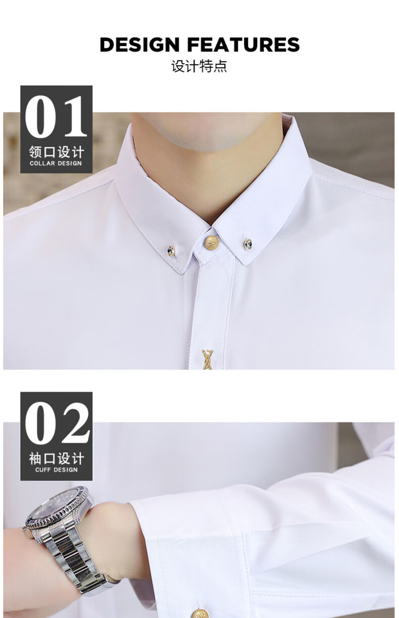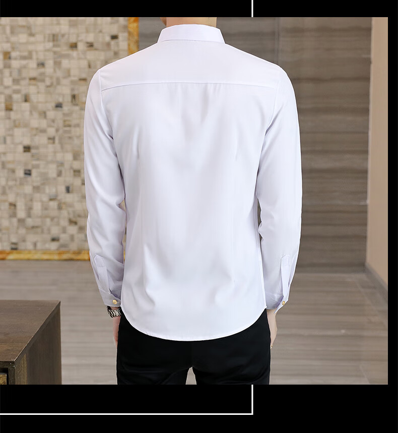 花花公子高档黑色衬衫男士装长袖免烫抗皱商务休闲正装结婚白色衬衣 2091白色 2XL