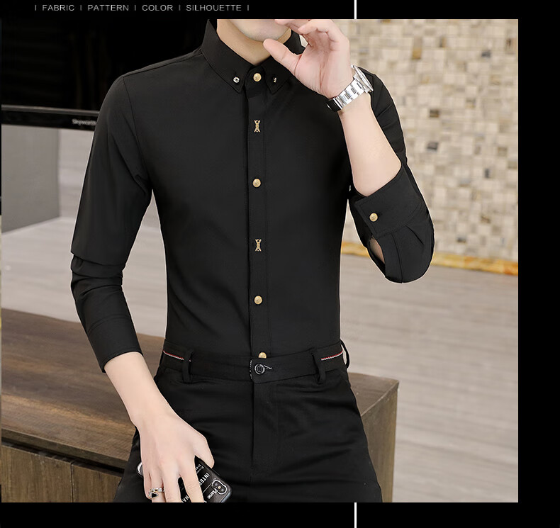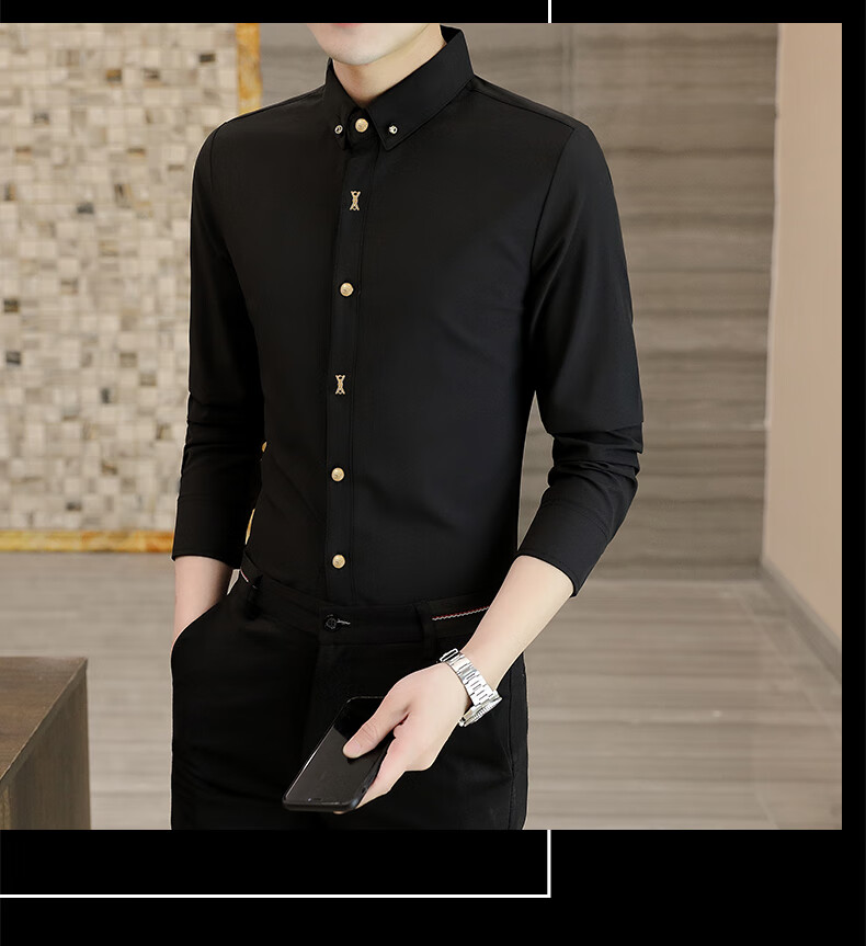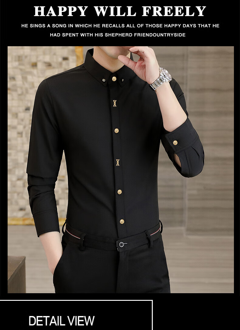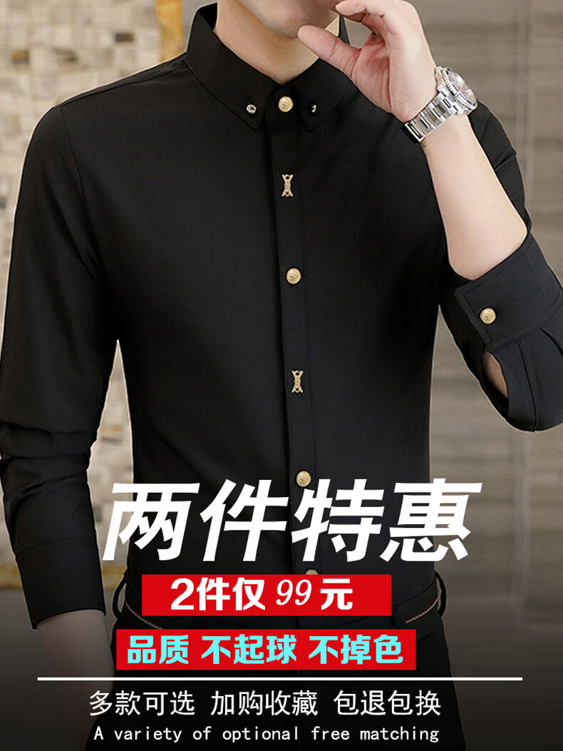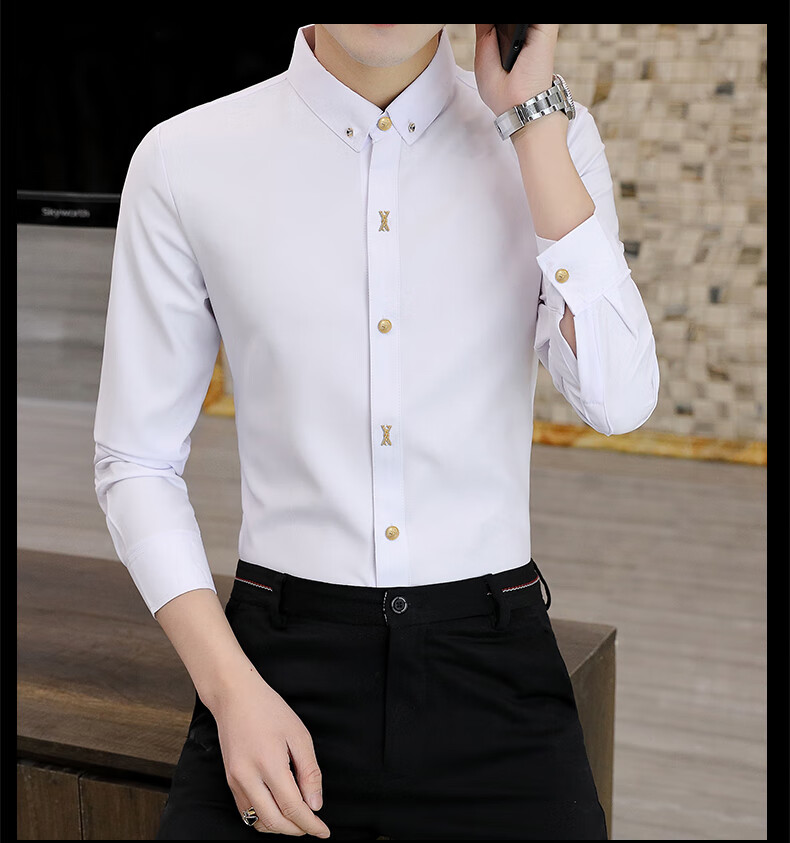 花花公子高档黑色衬衫男士装长袖免烫抗皱商务休闲正装结婚白色衬衣 2091白色 2XL