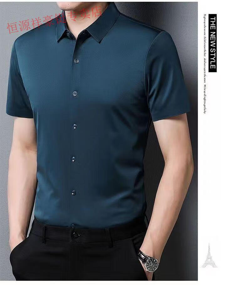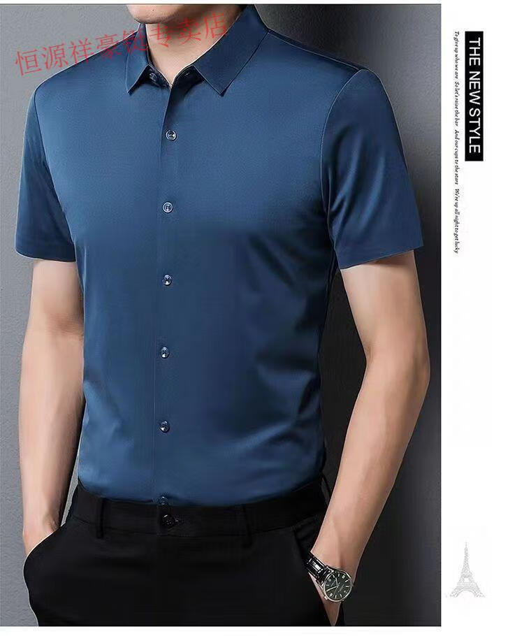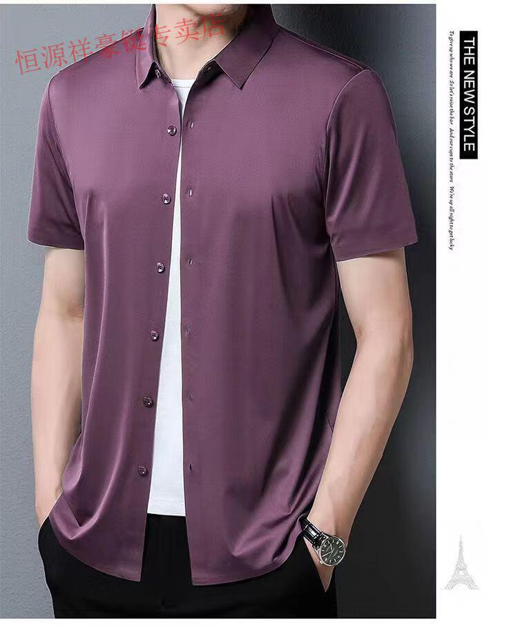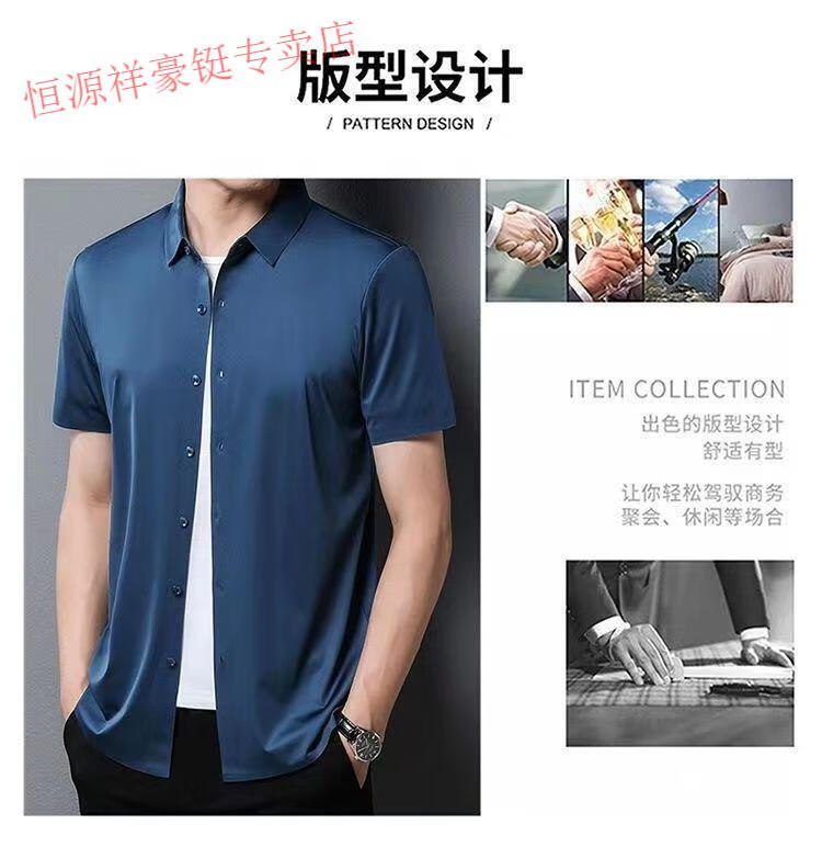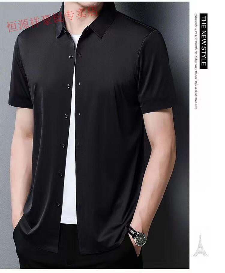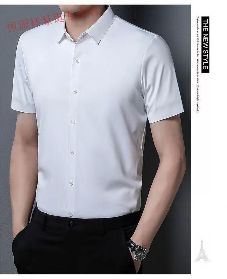 Hengyuanxiang light luxury mulberry silk men's seamless short-sleeved shirt casual solid color lapel shirt Chinese style (silk short-sleeved shirt) white 170/L recommended 120-140Jin Jin equals 0.5 kg
