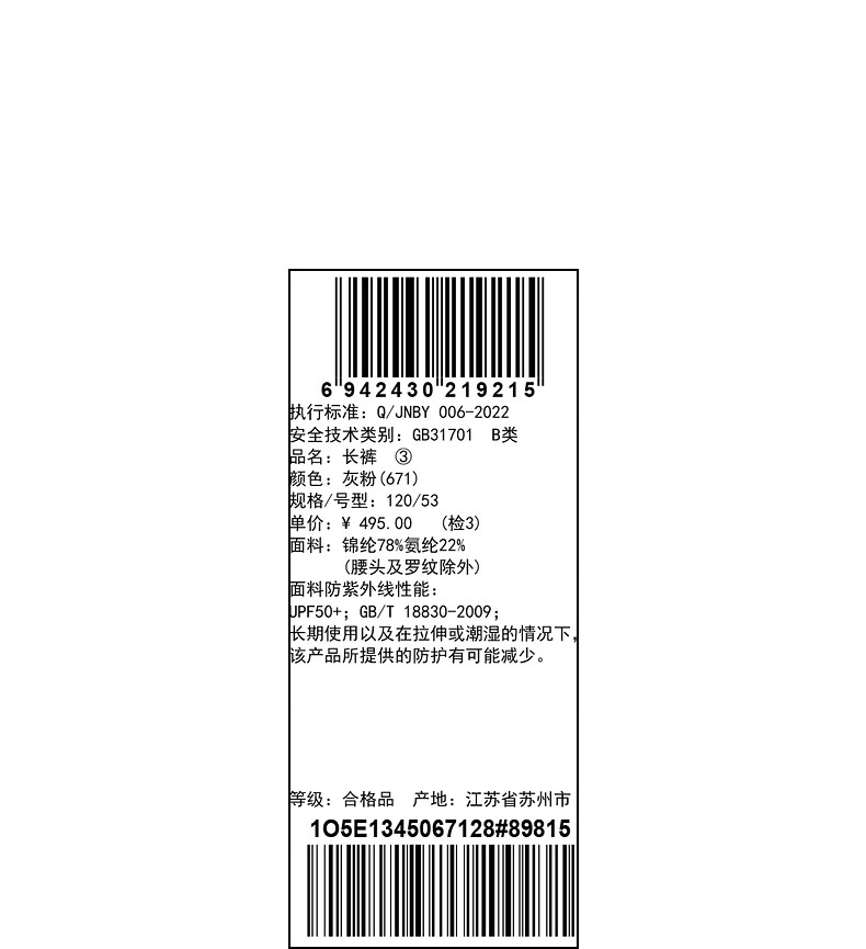 jnby by JNBY【运动系列】江南布衣童装弹力长裤防晒夏男女童儿童1O5E13450 671/灰粉 140 cm