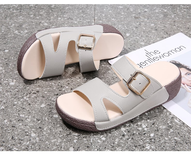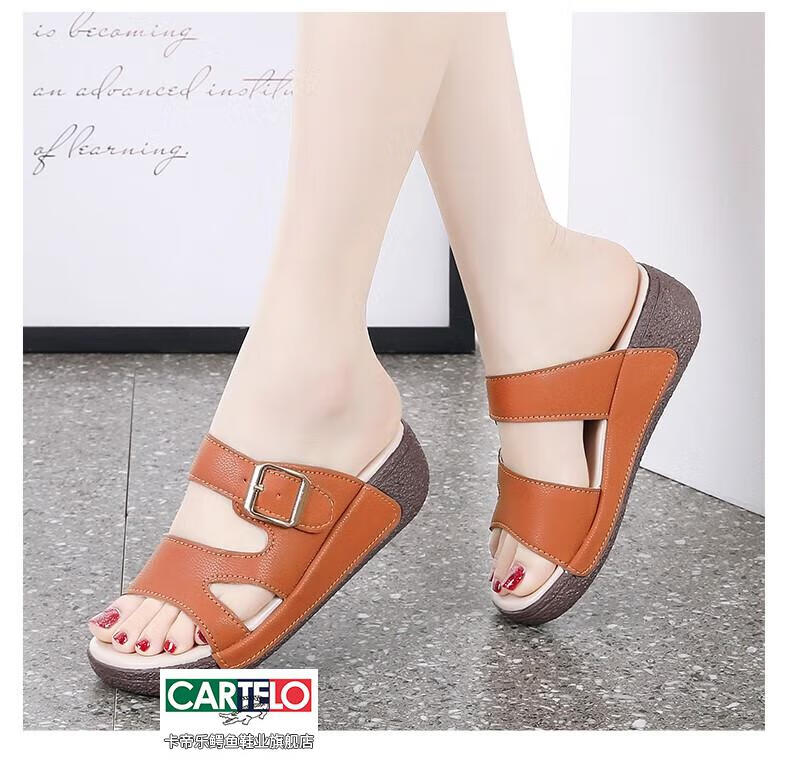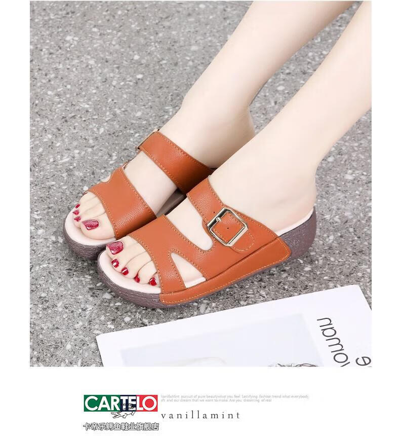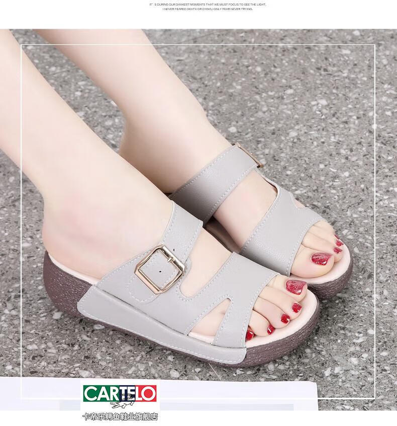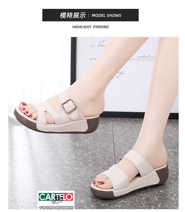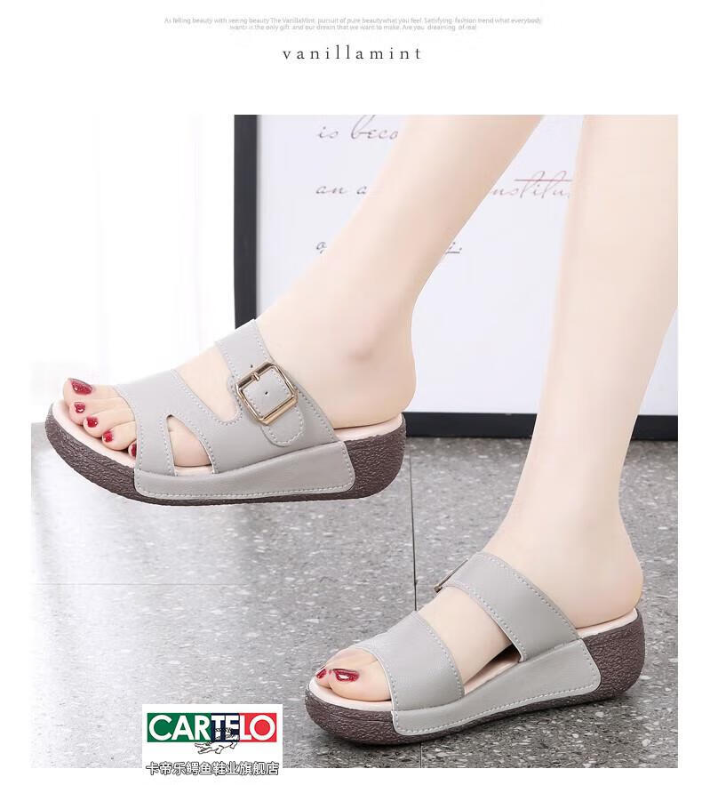 CARTELO Echtleder-Sandalen für Damen, 2025 Sommer, neue vielseitige Sandalen mit dicken Sohlen für Damen, rutschfest, einfache weiche Sohle, Oberbekleidung, Damenschuhe, Beige, 37