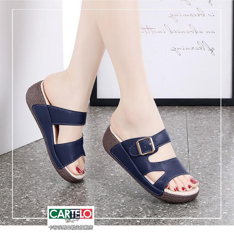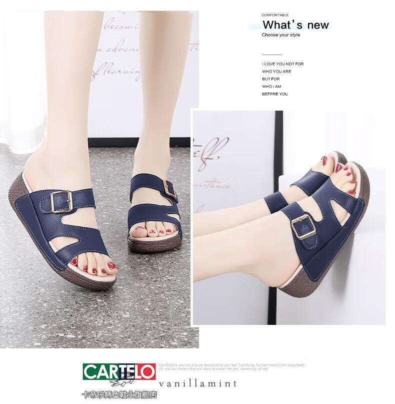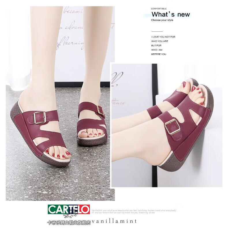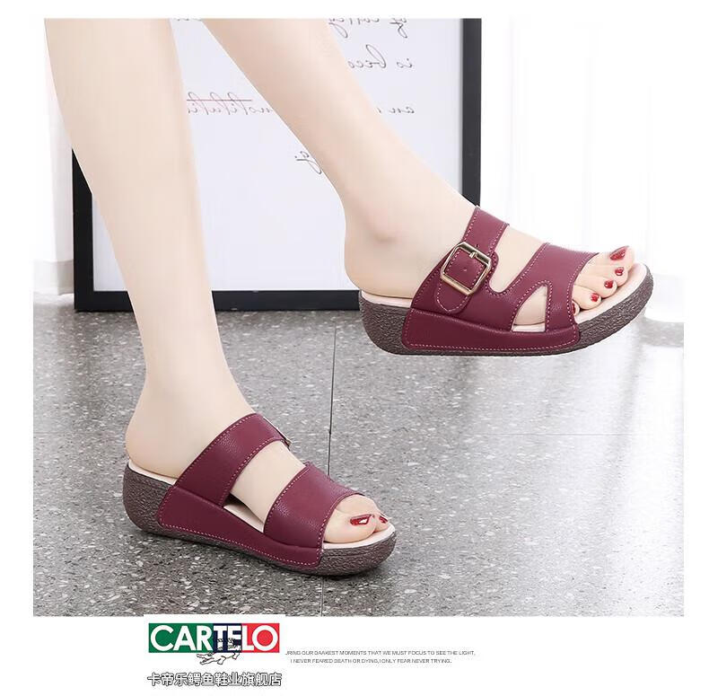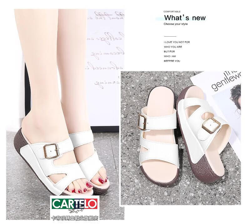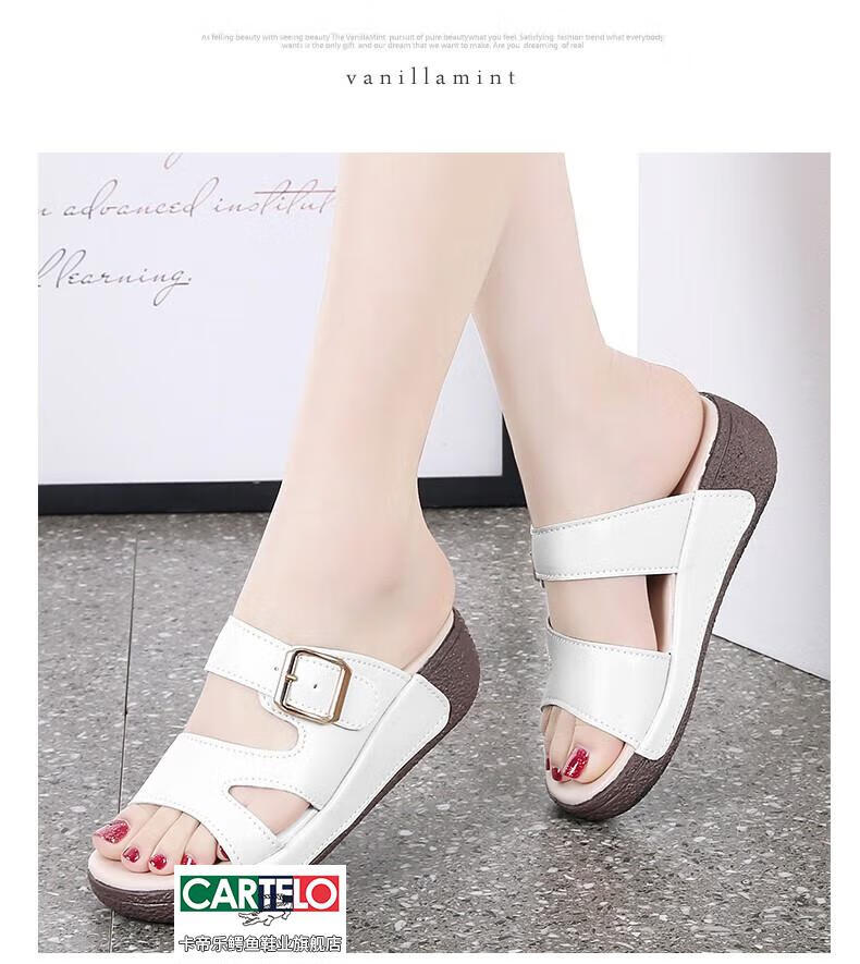CARTELO Echtleder-Sandalen für Damen, 2025 Sommer, neue vielseitige Sandalen mit dicken Sohlen für Damen, rutschfest, einfache weiche Sohle, Oberbekleidung, Damenschuhe, Beige, 37
