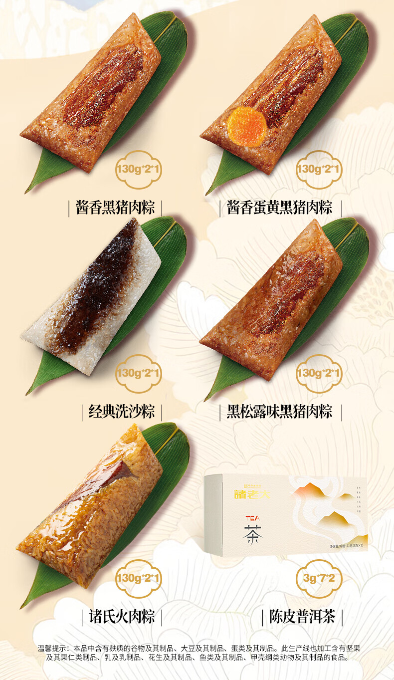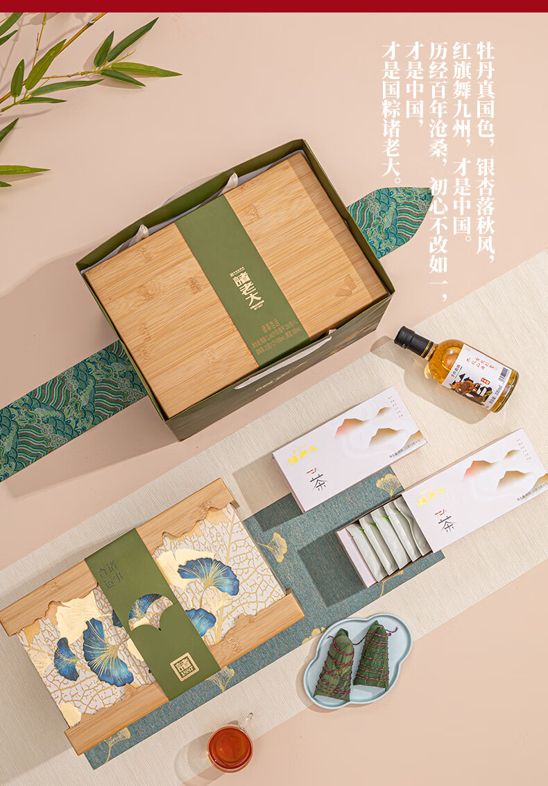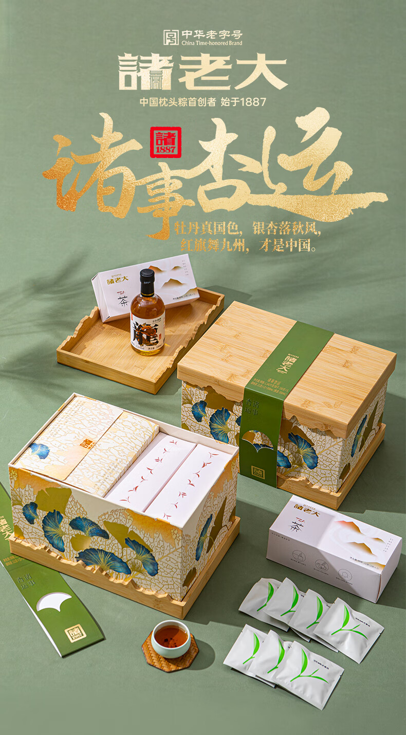诸老大粽子礼盒诸事杏运中华老字号嘉兴产粽子10粽+黄酒+茶叶x2+香囊 诸事杏运礼盒1342克+300ml