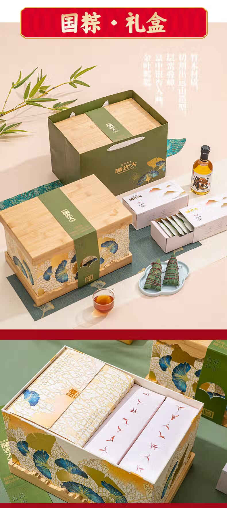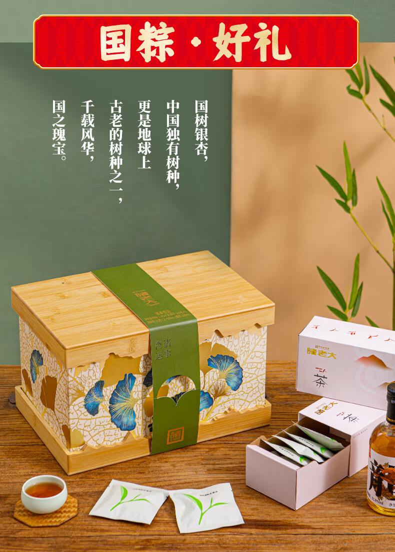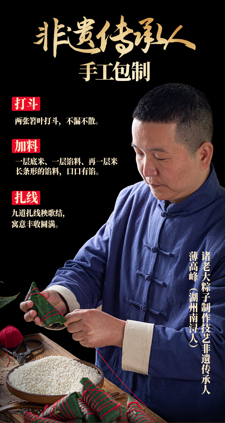 诸老大粽子礼盒诸事杏运中华老字号嘉兴产粽子10粽+黄酒+茶叶x2+香囊 诸事杏运礼盒1342克+300ml