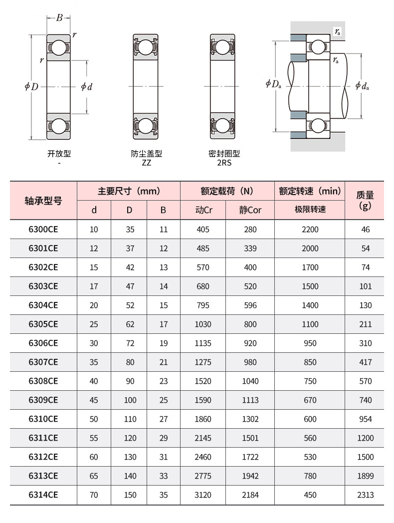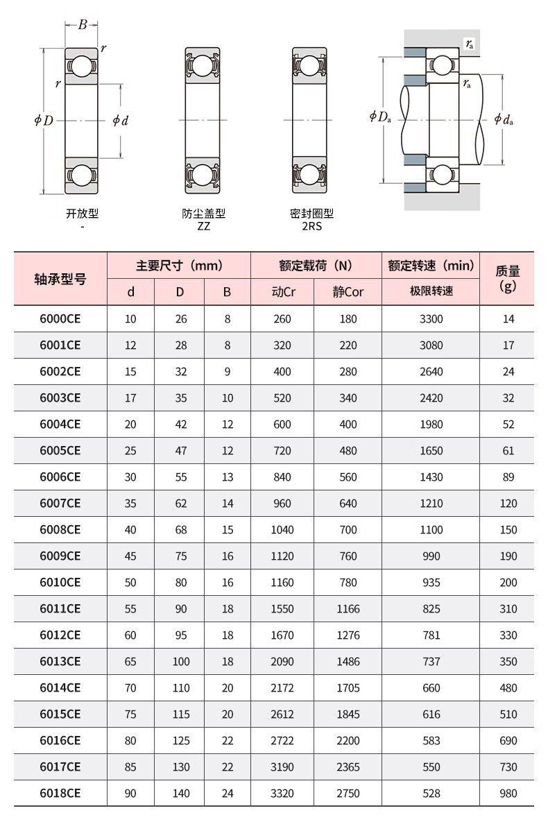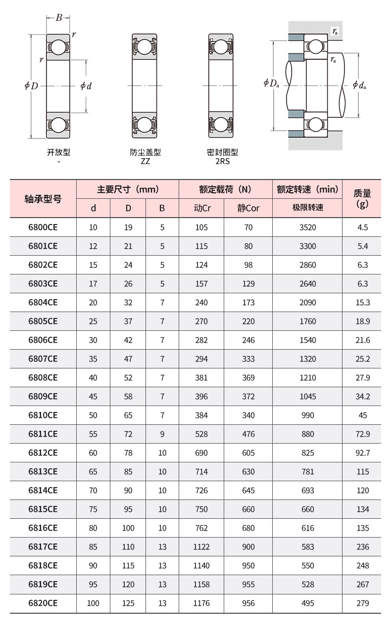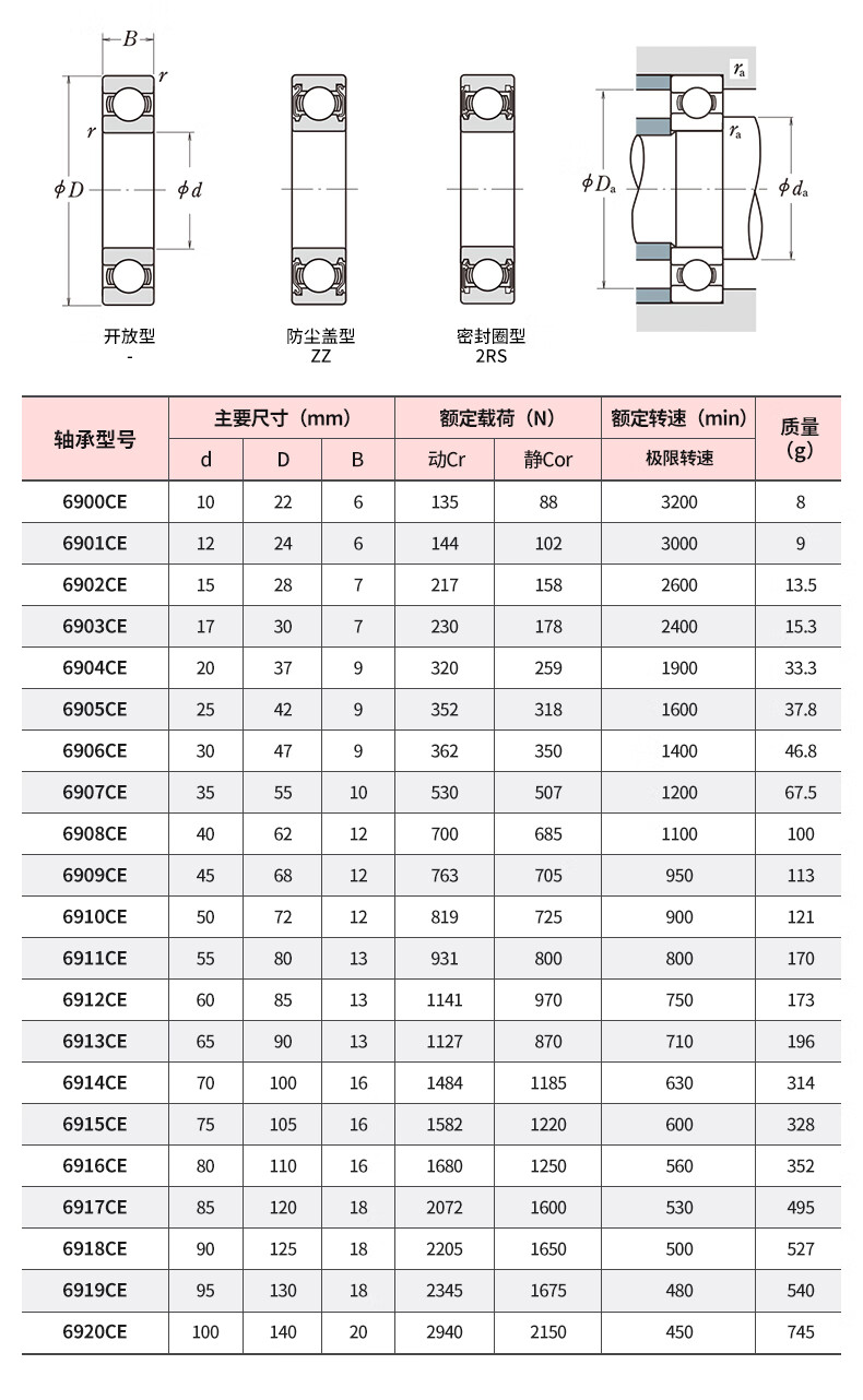 KIF Japan imported zirconia full ceramic bearing model list, miniature high temperature resistant, waterproof, high speed, oil-free self-lubricating 608 water droplet wheel 6802 gossip wheel 688 fishing wheel 6000 lure 6201CE 4 inside and 11 thick outside, 4 full ceramics 694CE sealed