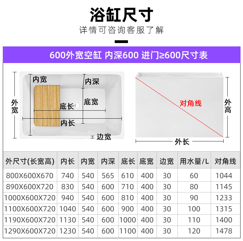 Mihir small-sized bathtub home independent Japanese-style deep soak internet celebrity acrylic mini sitting bubble bath 0.8m 695*550*580 empty tank 0.7m