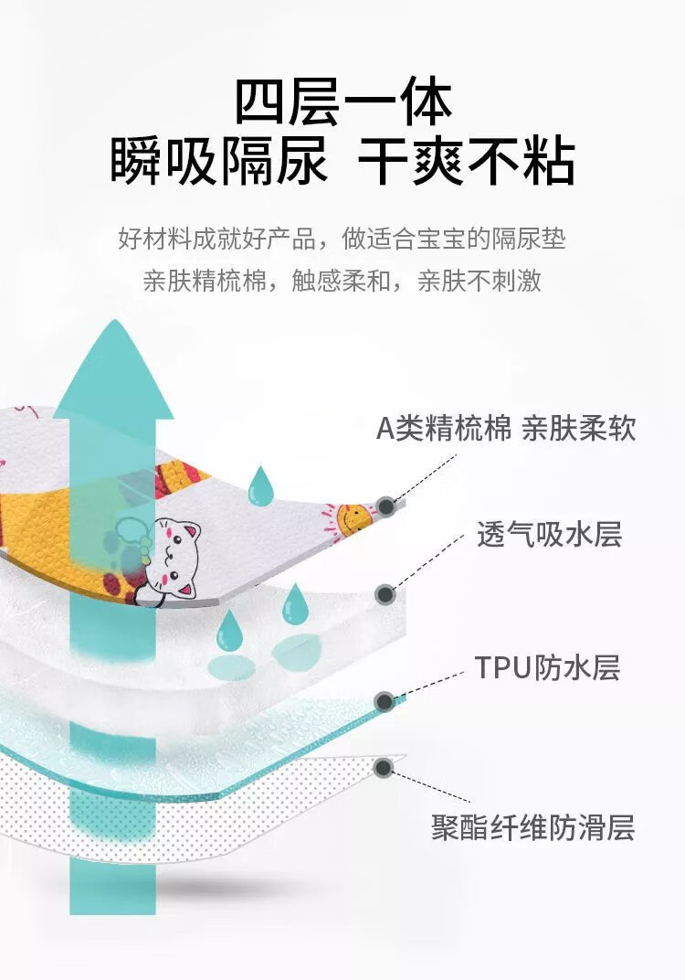 迪士尼(Disney)透气可洗隔尿垫婴儿童大号防水垫新生儿用品尿布垫姨妈月经垫 【彩虹小熊】A类纯棉+防水 70*100cm【一条】
