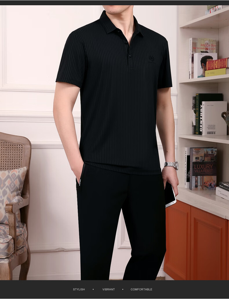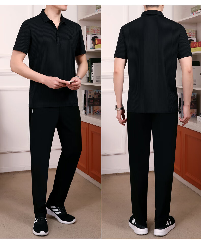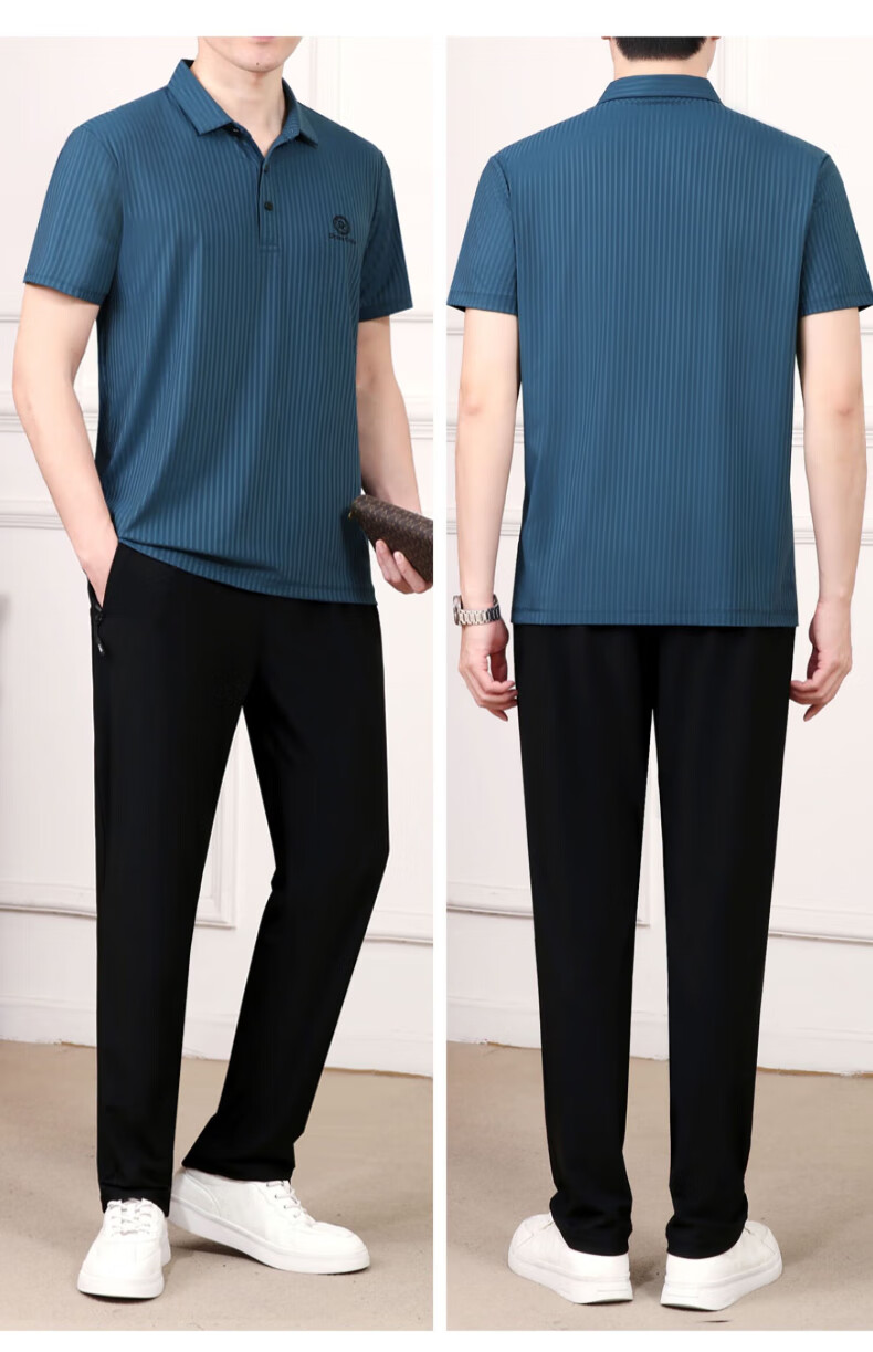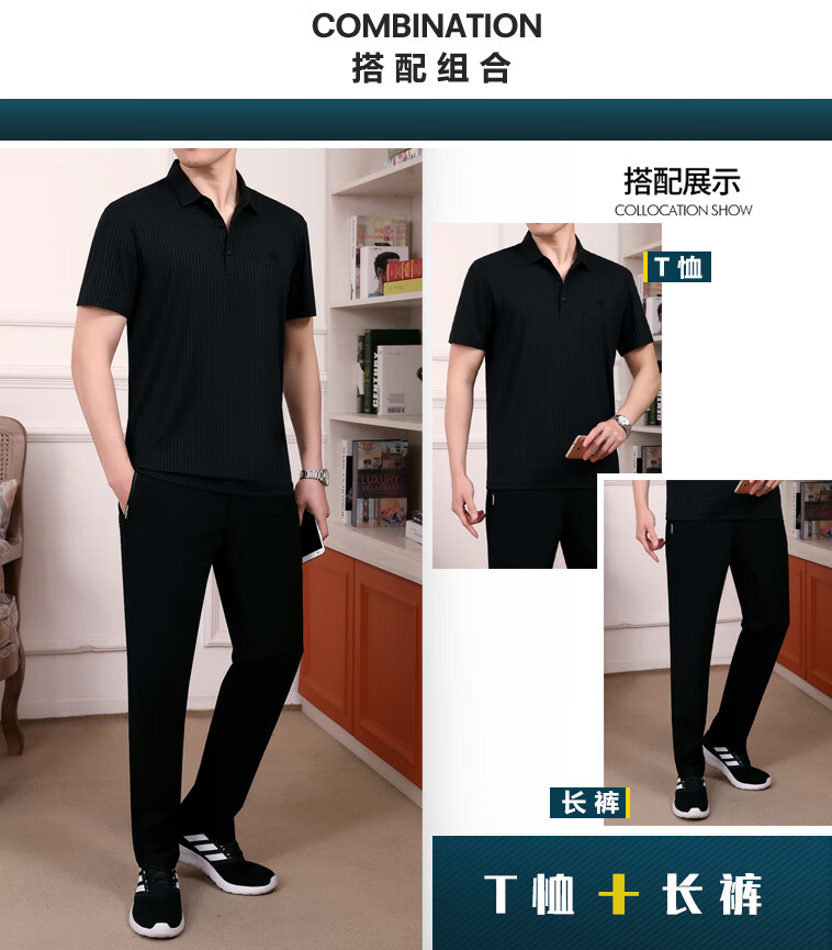 ROMON dad summer suit dad summer ice silk short-sleeved T-shirt middle-aged and elderly casual sportswear suit men's quick-drying 753 dark blue short-sleeved + trousers XL recommended 120Jin Jin equals 0.5kg -140Jin Jin equals 0.5kg